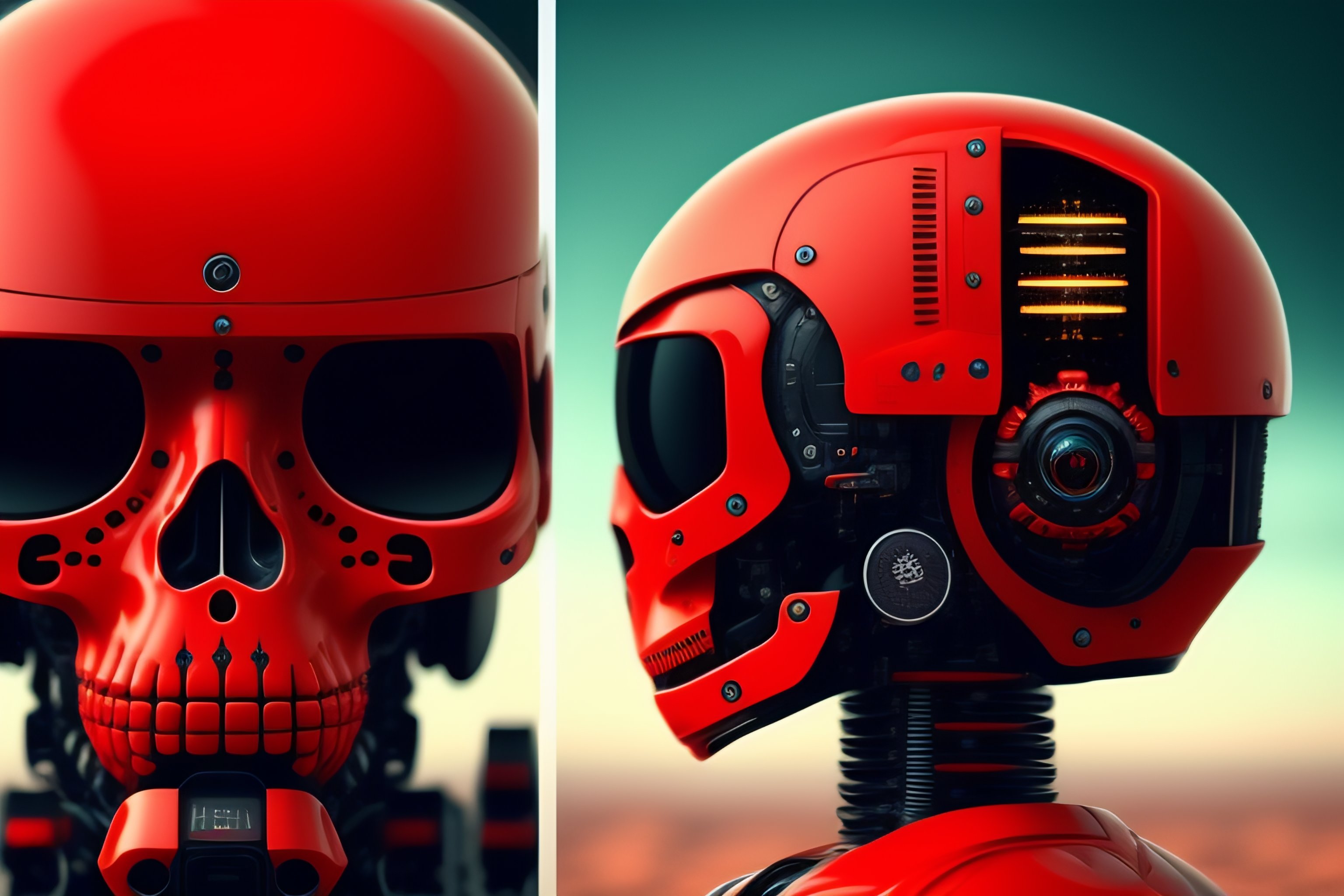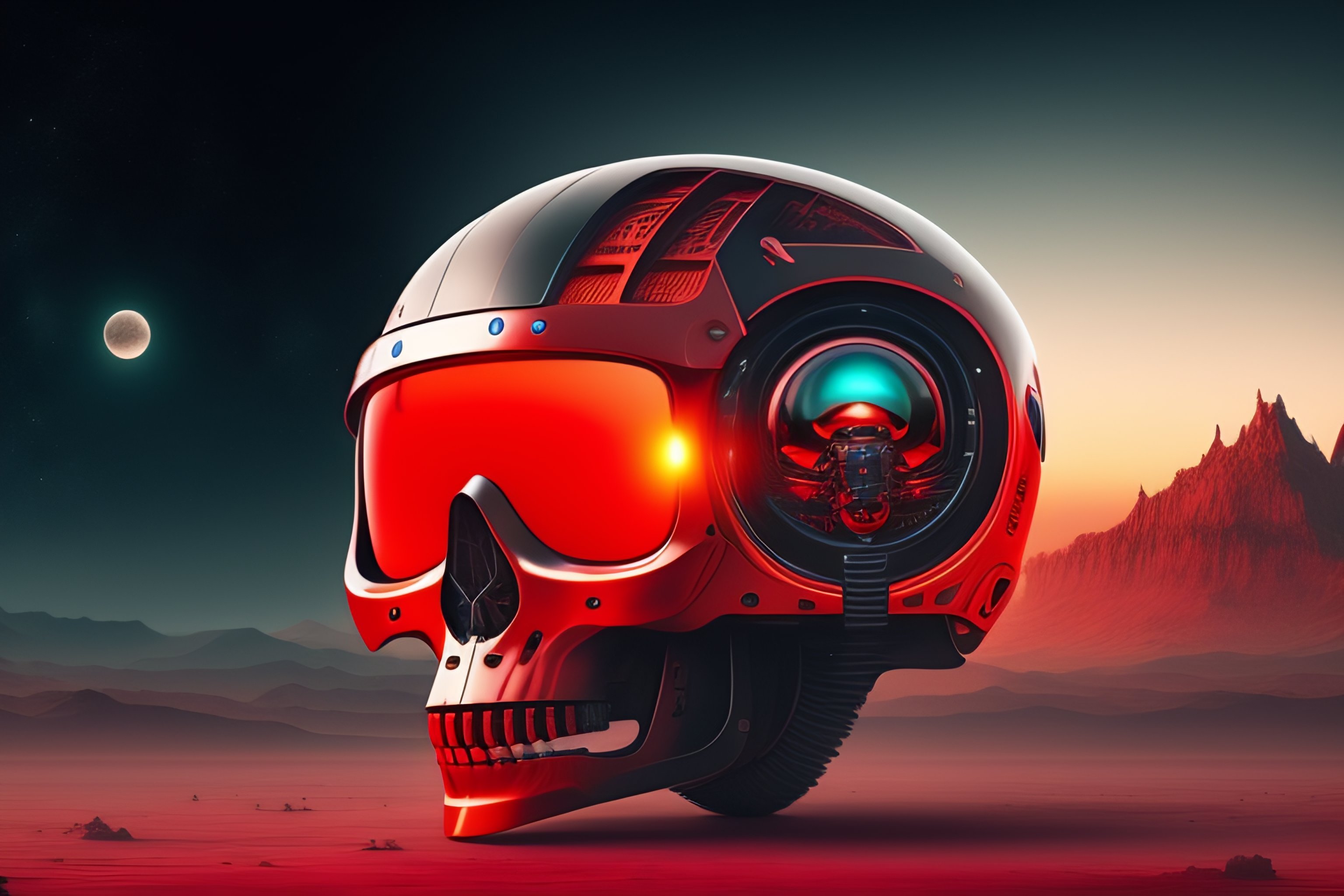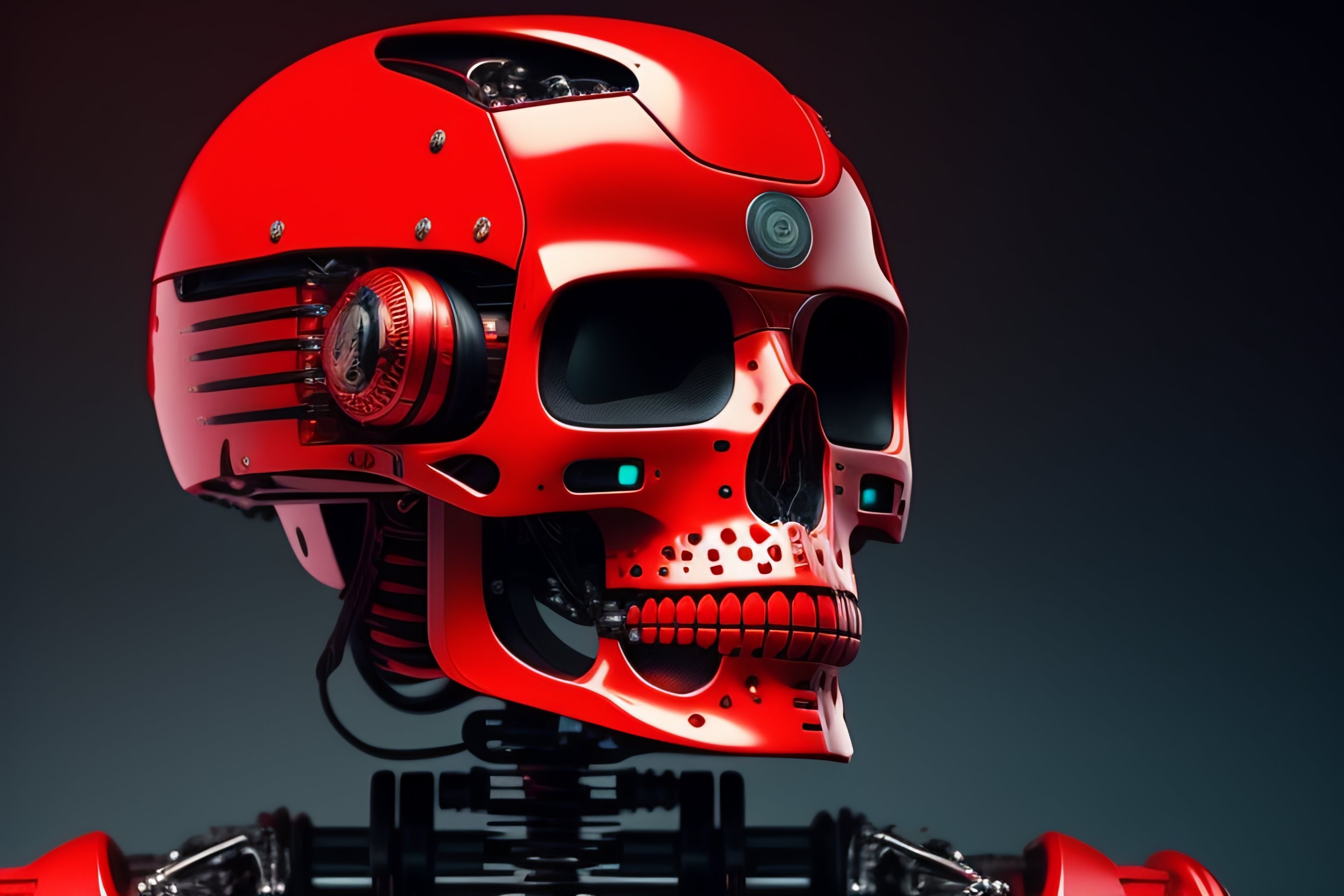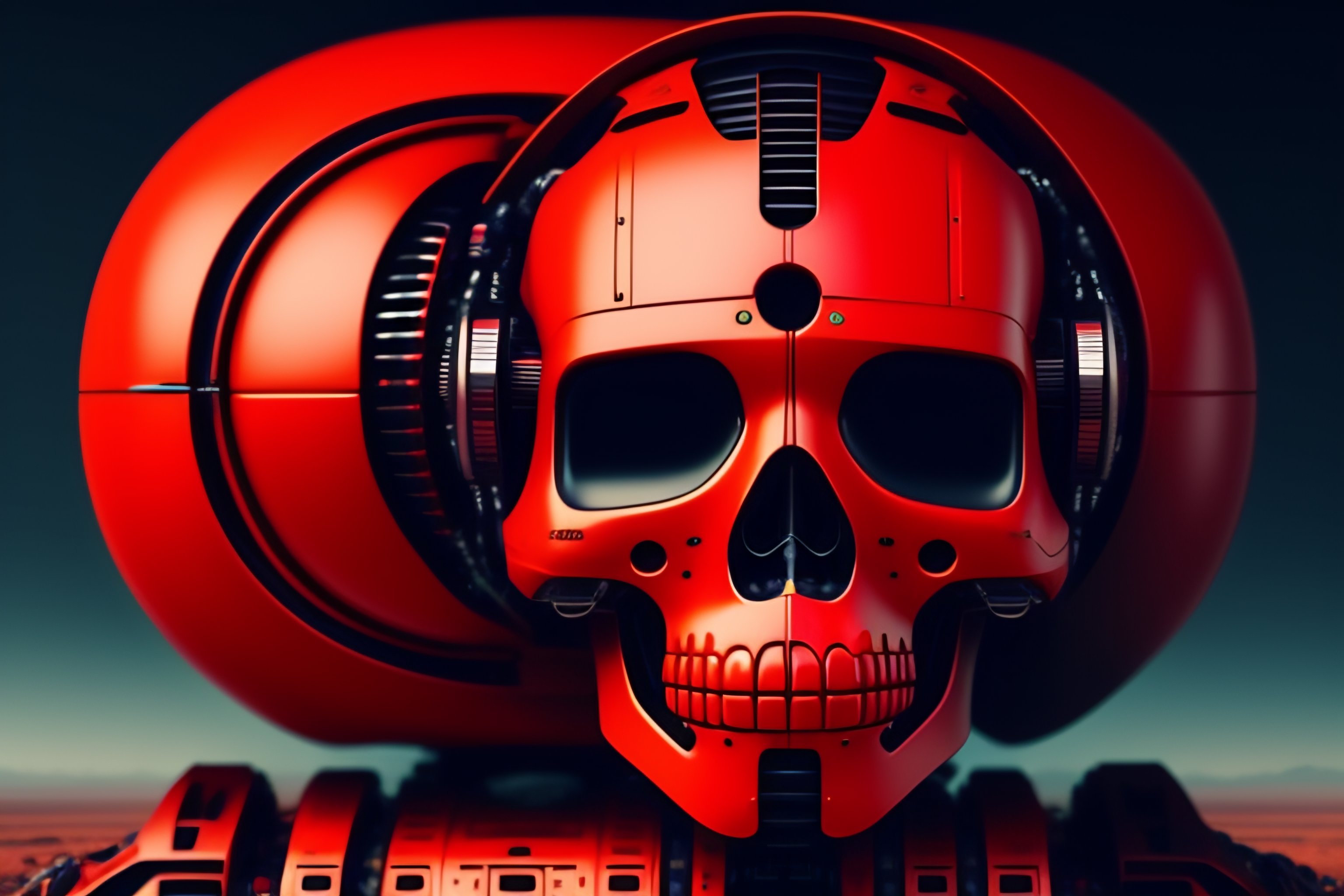 Cabeza calavera robotica terminator en el espacio con un ojo rojo