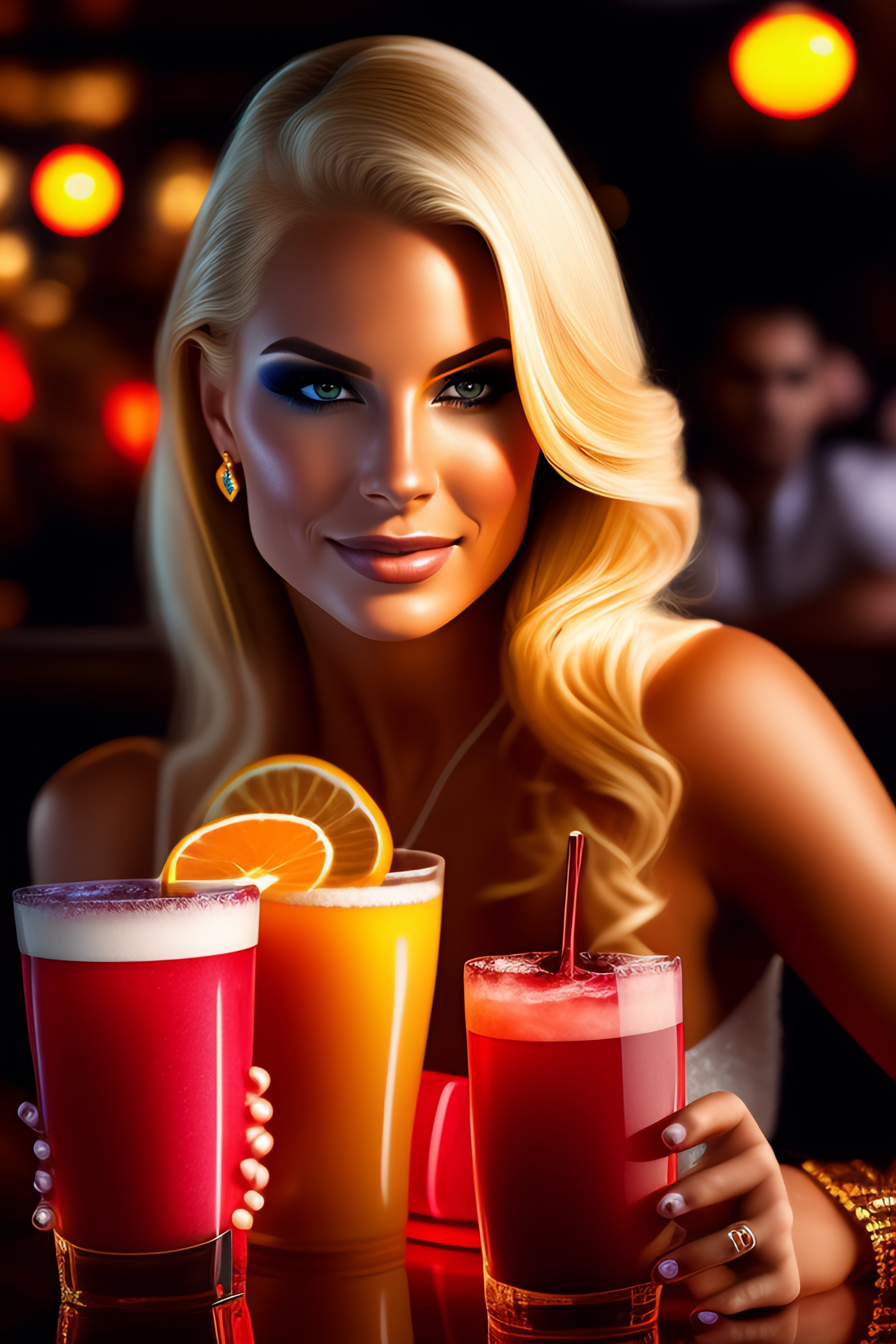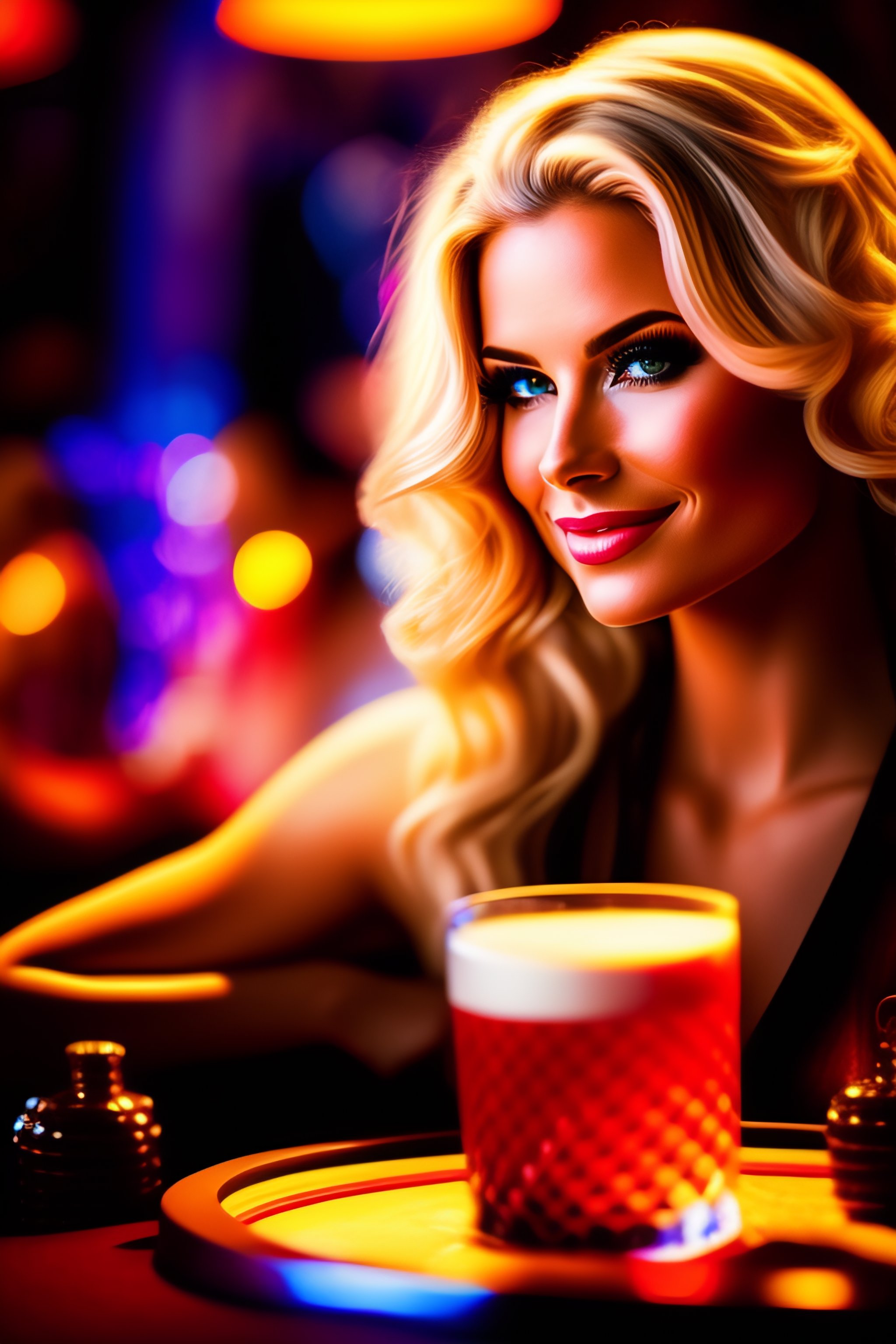 A las vegas casino, people gambling and drinking, a beautiful girl, blonde hair serving drinks, beautiful casino, fun lighting