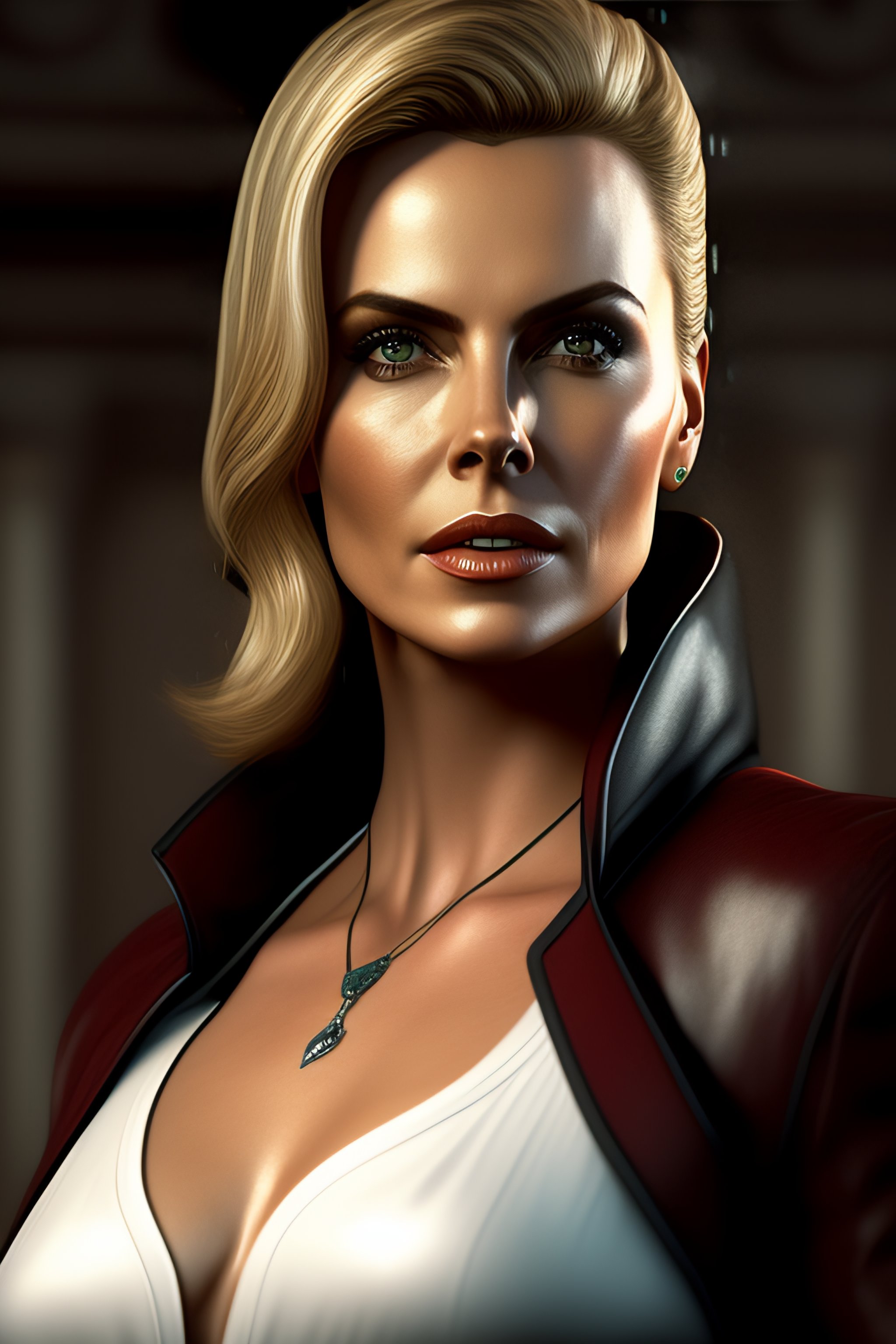 Charlize theron as alexia ashford, .resident evil, code veronica, 8k, octane render, photorealistic, concept art