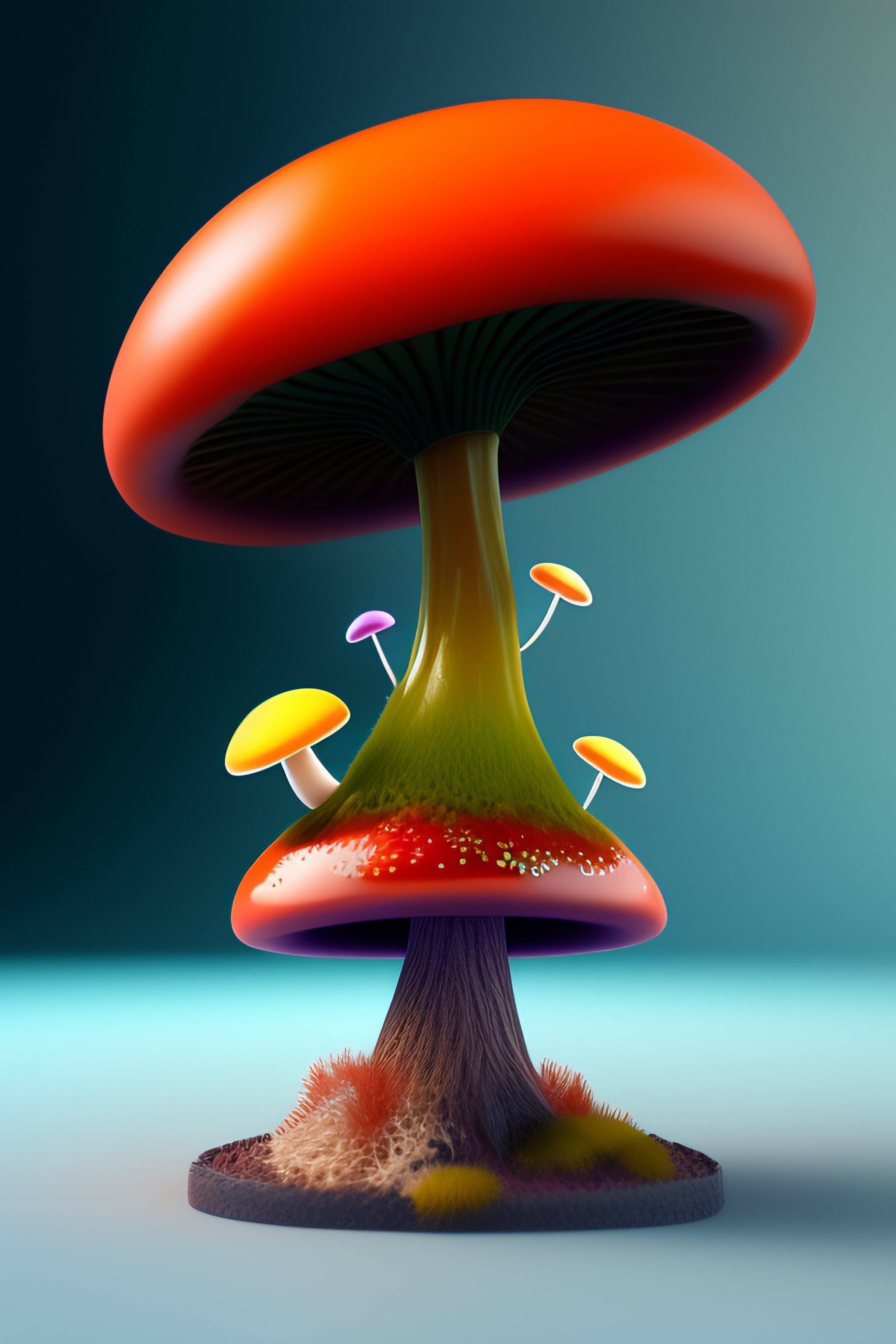 Enchanted mushroom, weird face, unreal engine, artstation trend, 3d render, 2 legs, 2 hands, by florianne becker