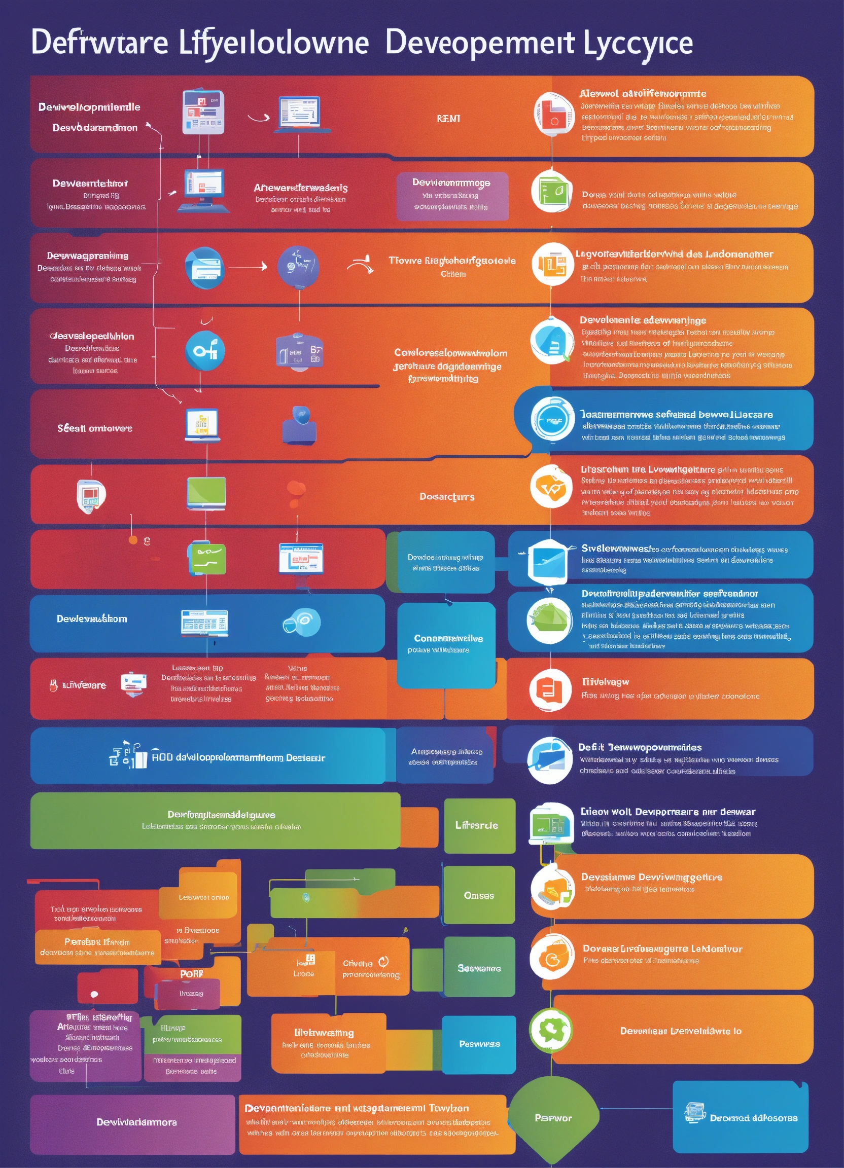 A colorful workflow diagram showing the software developyment lifecycle steps