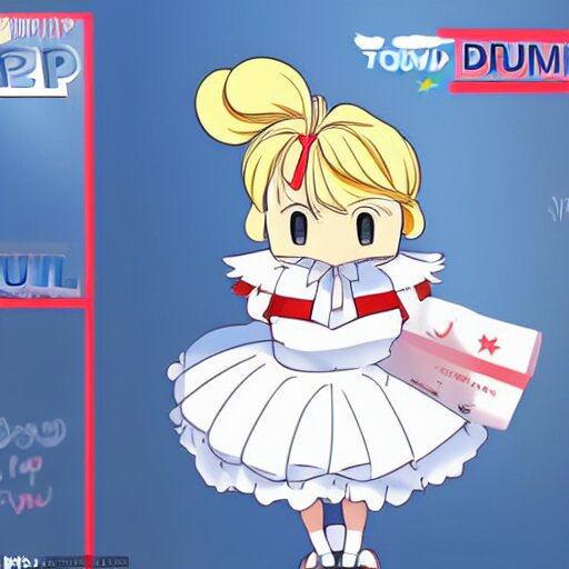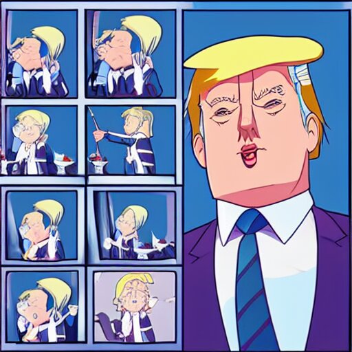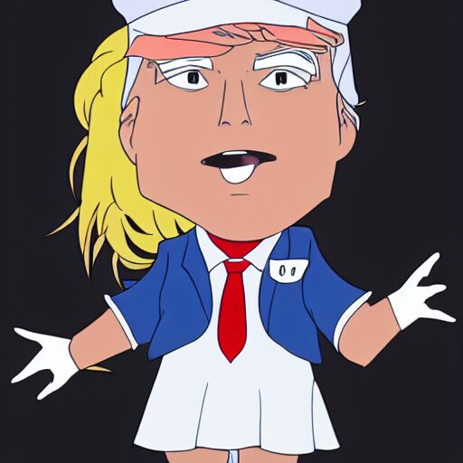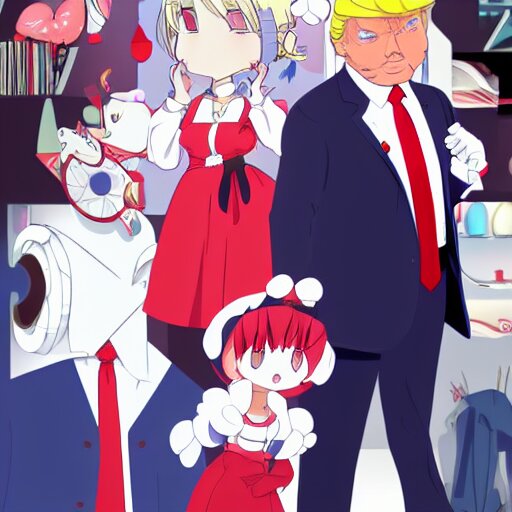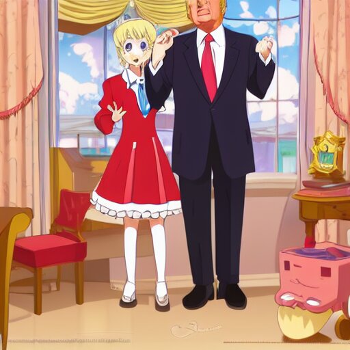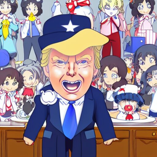 Cute donald trump wearing a maid outfit, modern anime, anime, cel - shaded, toon boom, realistic, photography, 8 k, award winning, kawaii