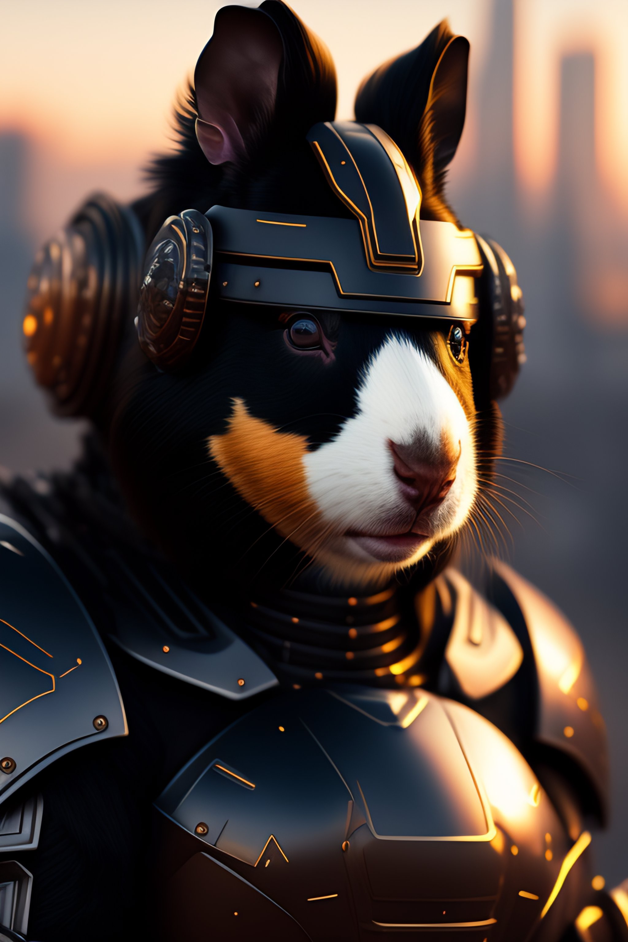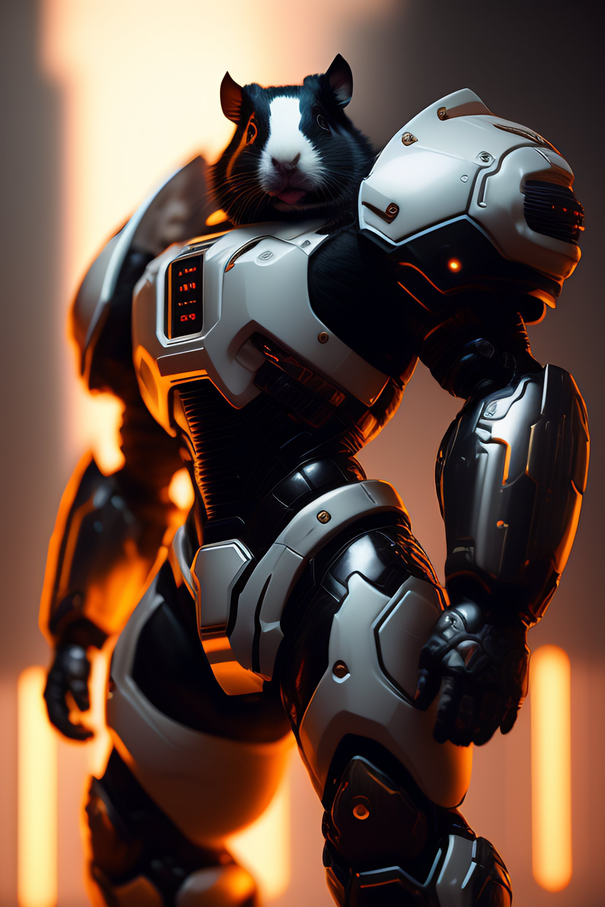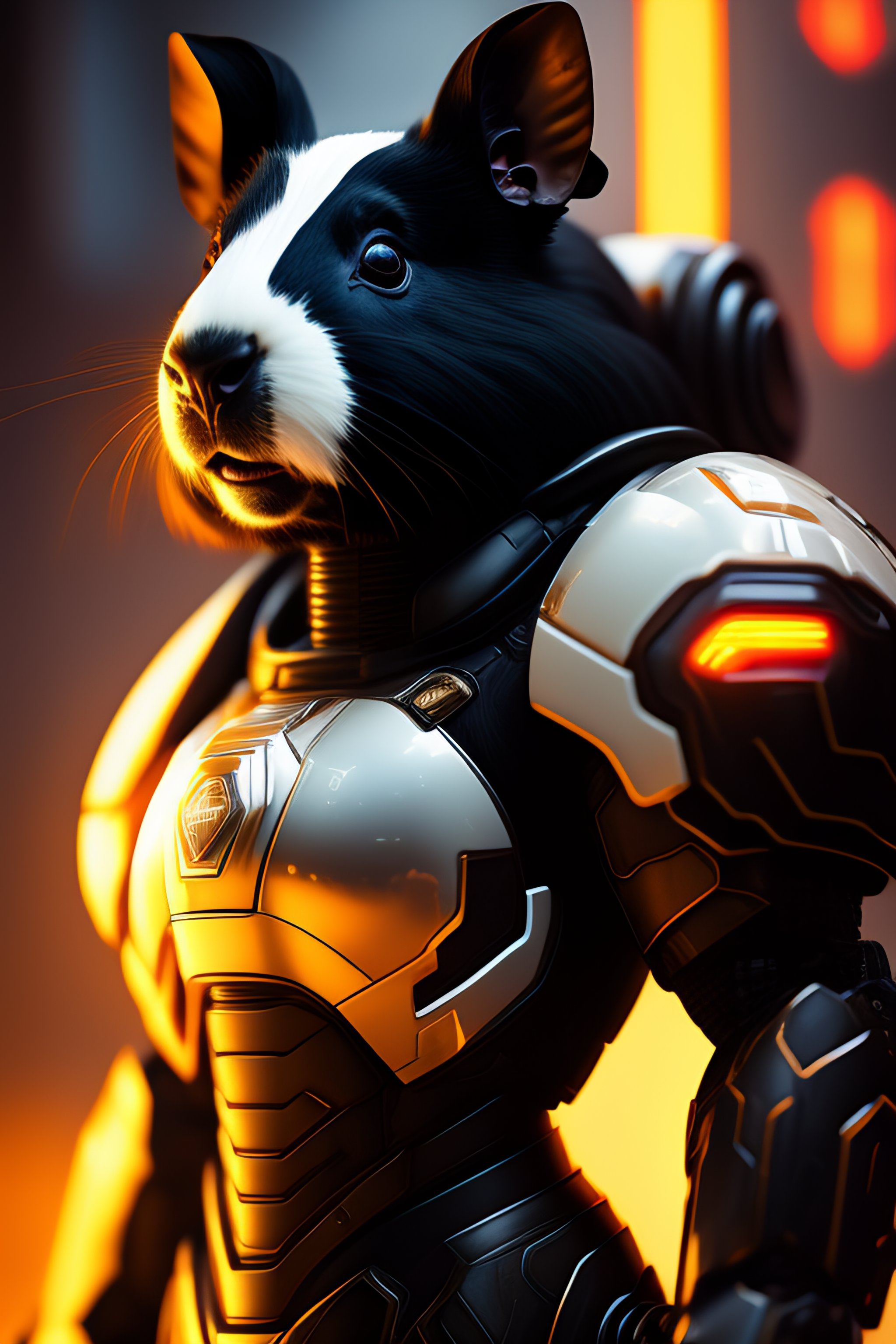 A black white guinea pig as the doomslayer, realistic scifi cyberpunk power armor robot, detailed, centered, digital painting, artstation, concept art, donato giancola, joseph christian leyendecker, wlop, boris vallejo, breathtaking, 8k resolution, extremely detailed, beautiful, establishing shot, artistic, hyperrealistic, beautiful face, octane render, cinematic lighting, dramatic lighting, masterpiece