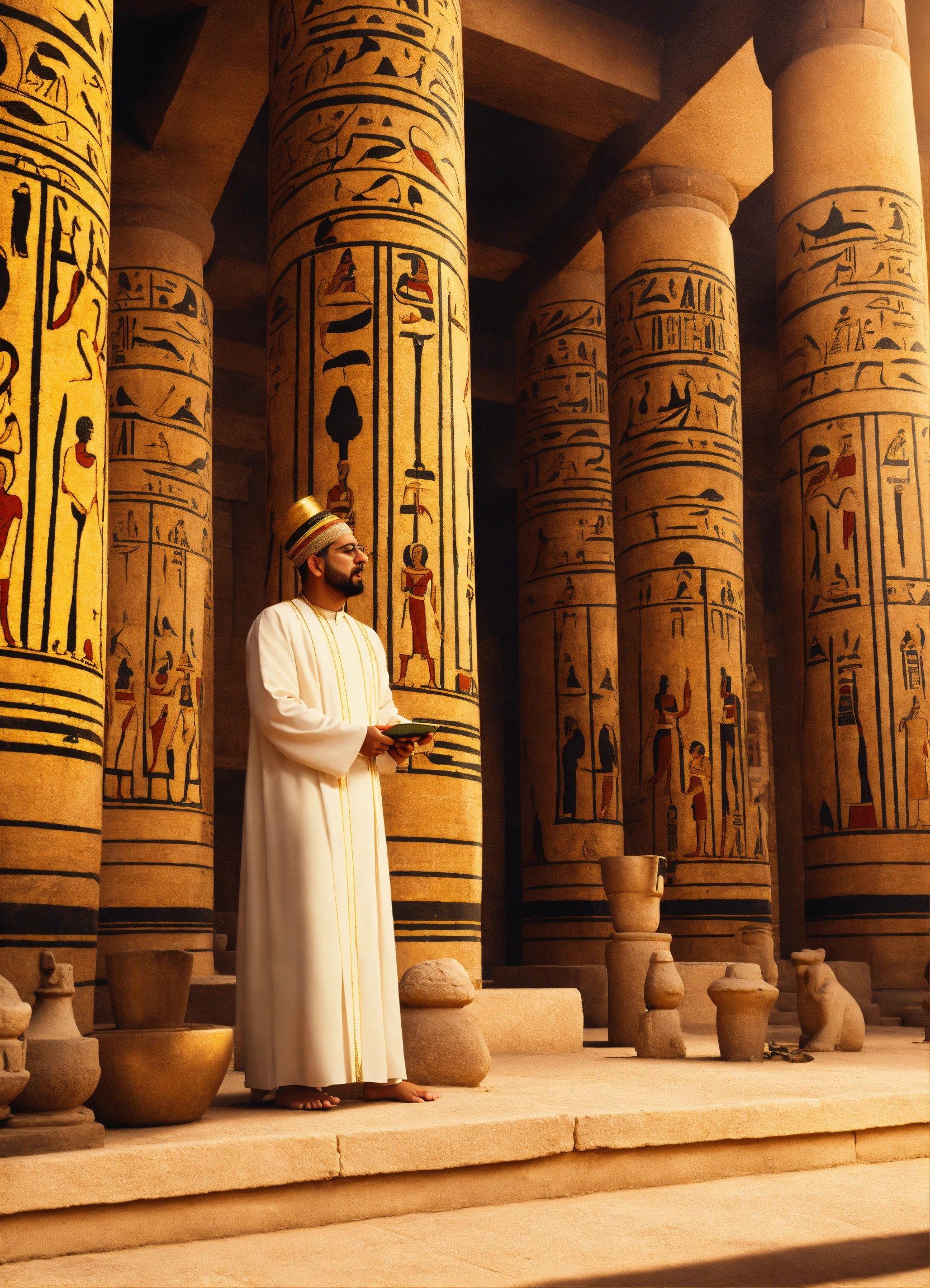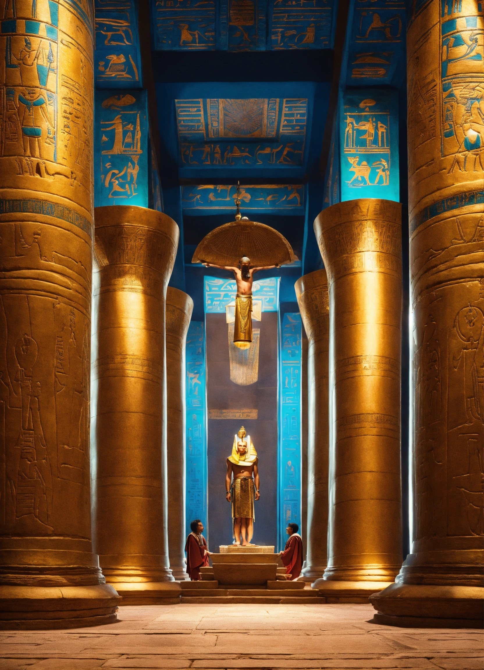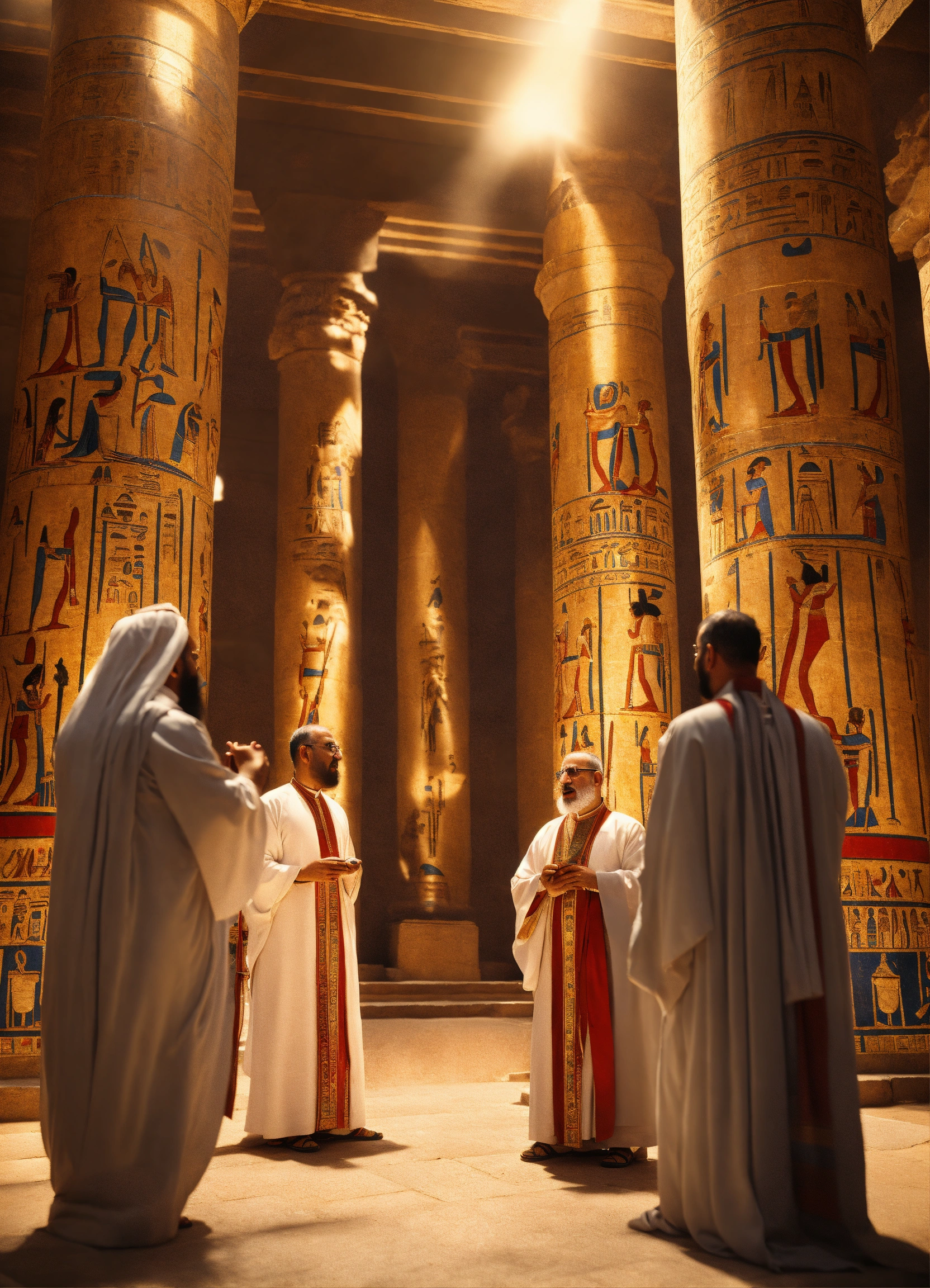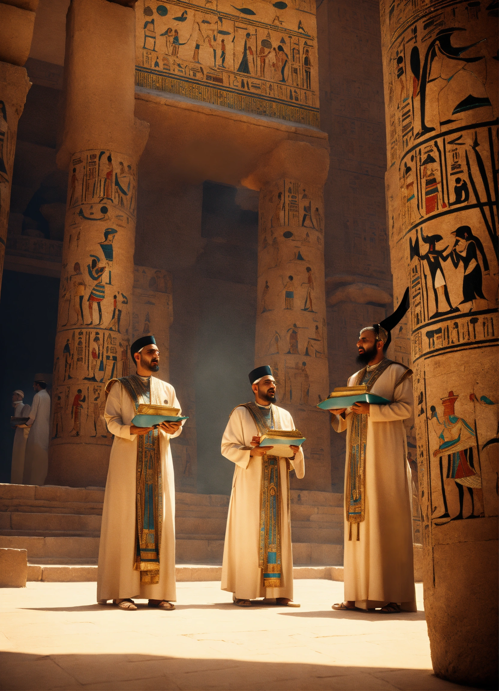 Egyptian aton priests chanting incantations in the temple