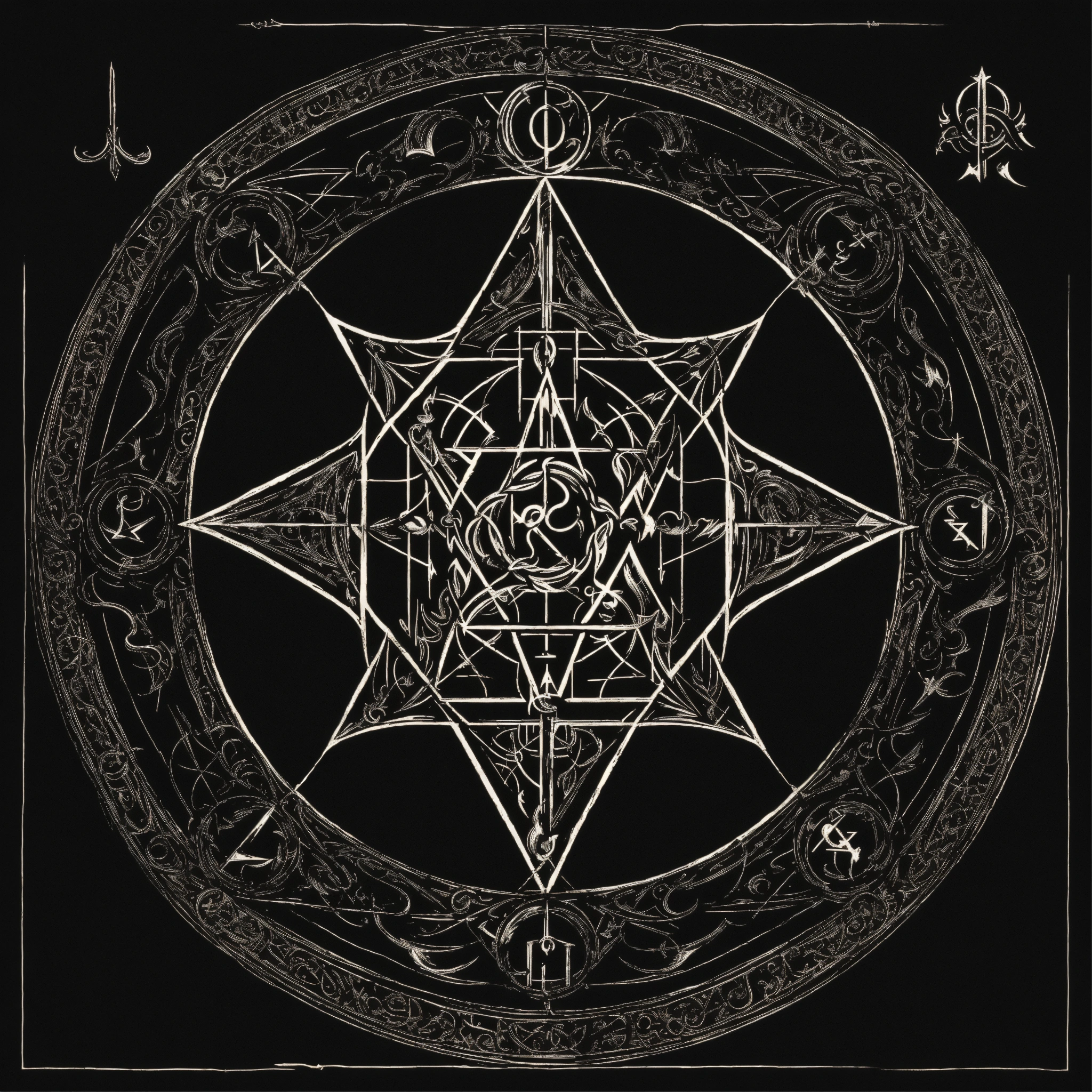 Evil demonic dark magick sigil for the son of perdition, extremely creative and prophetic, inspired by apollyon, highly detailed and futuristic, lucifer's power communication through symbolic cryptic symbol, occultic visual ritual emblem, clear concise design, powerful sigil, divinely chosen by god