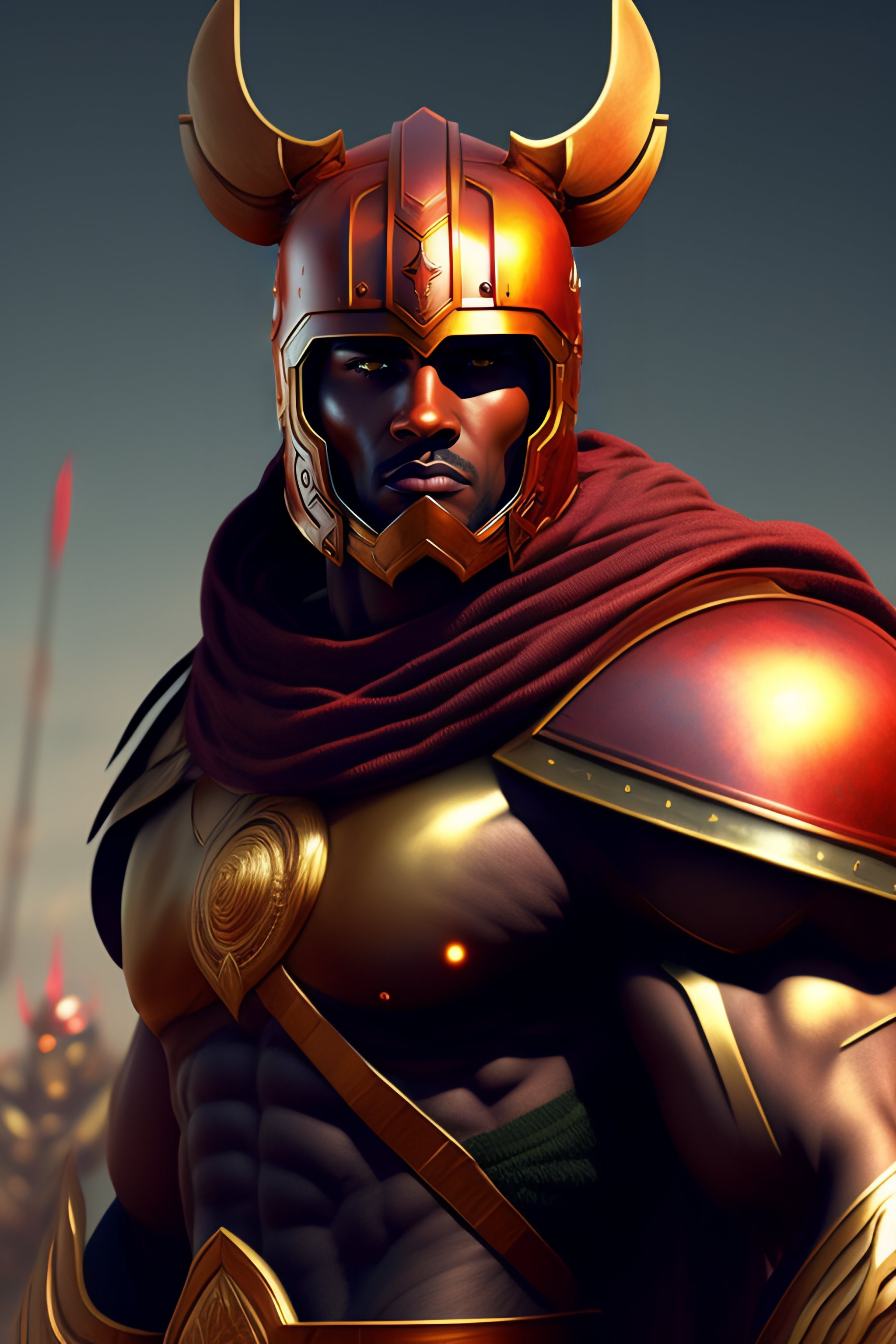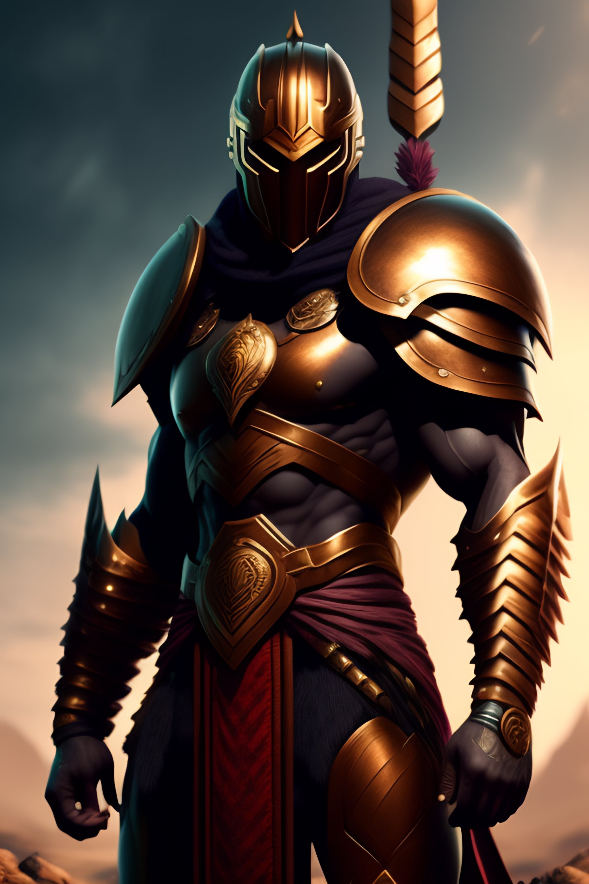 Spartan warrior with rusty helmet, read cloack, muscular, extreme vascularity, professional design, digital art, trending on artstation