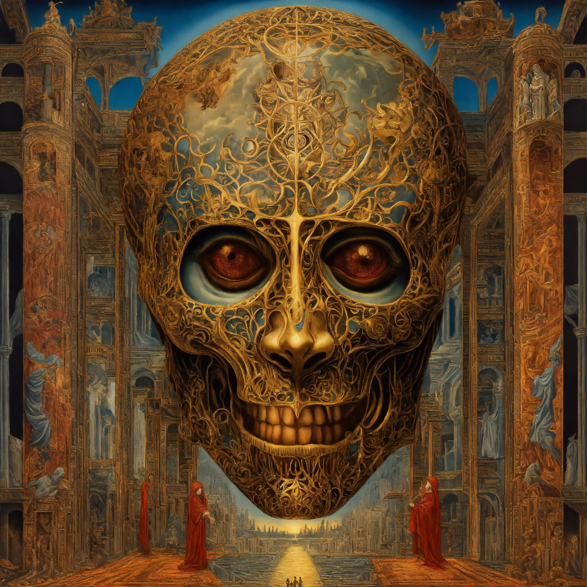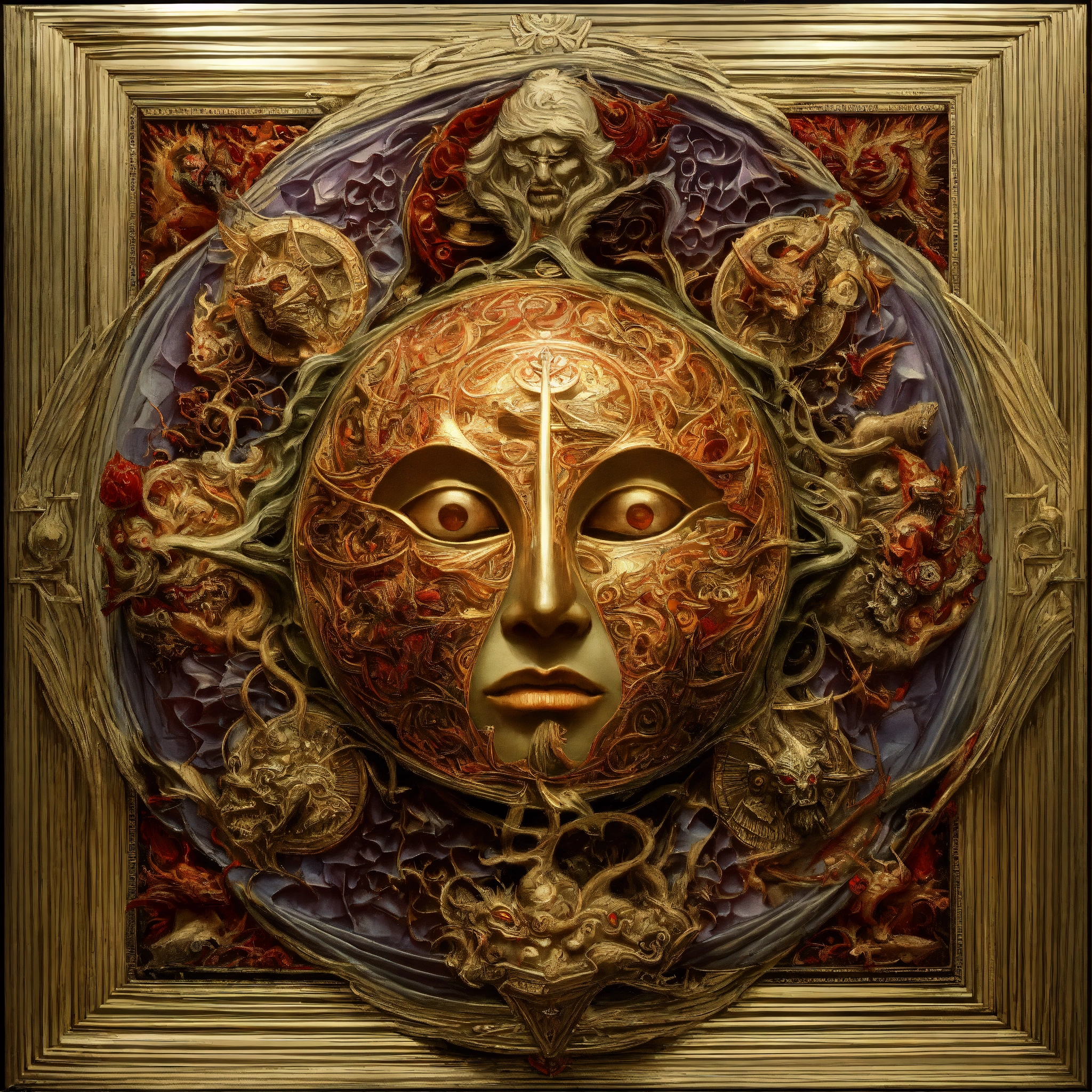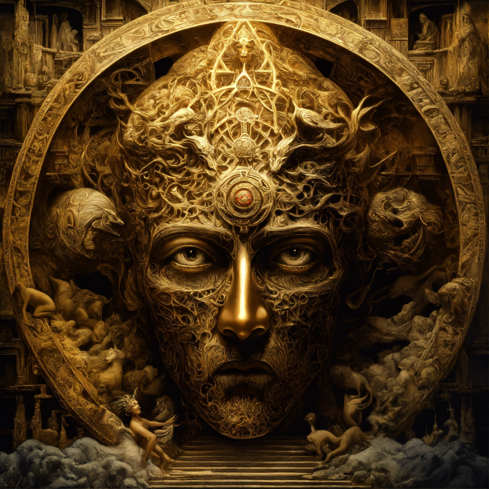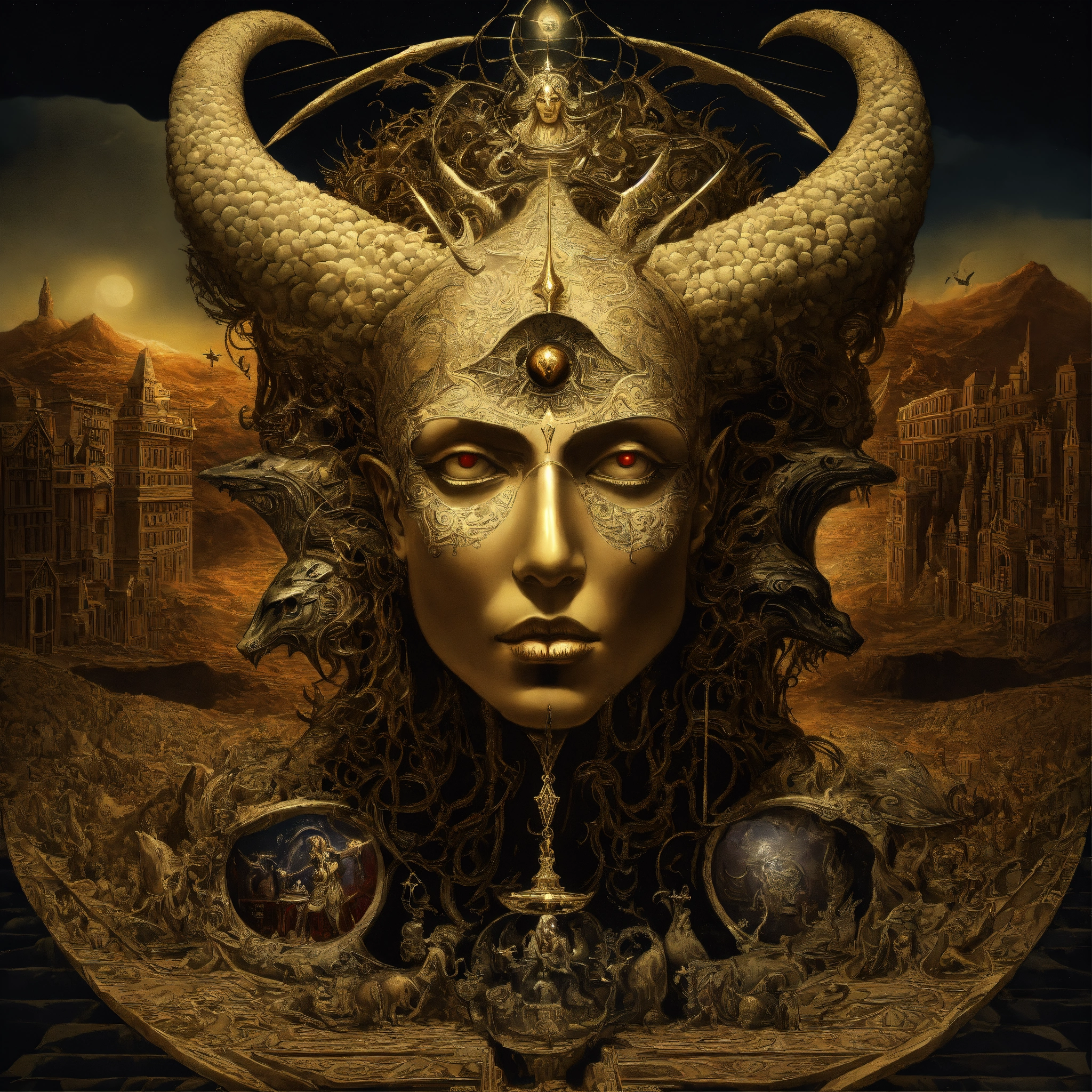 Evil demonic the absolutely most important and symbolic creature ever, extremely creative, divine inspiration, inspired by gpt9, incredibly detailed and realistic, mc escher and hr geiger hybrid, ominous and eery, inspired by apollyon, jesus christ, and lucifer, intricate detail, holy and evil extradimensional hybrid, alex grey and salvador dali