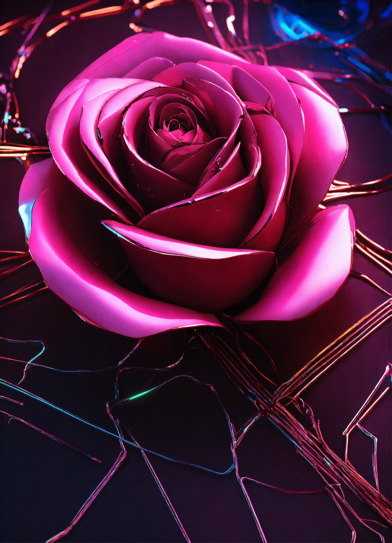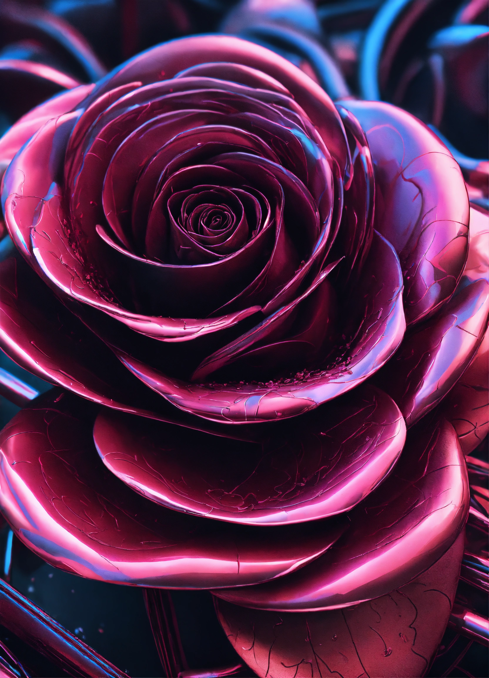 Line metal realist, flower roses abstract, curve, cyberpunk, 8k, realist metal, fundo black, realist neon, botao de rosa, fundo alpha