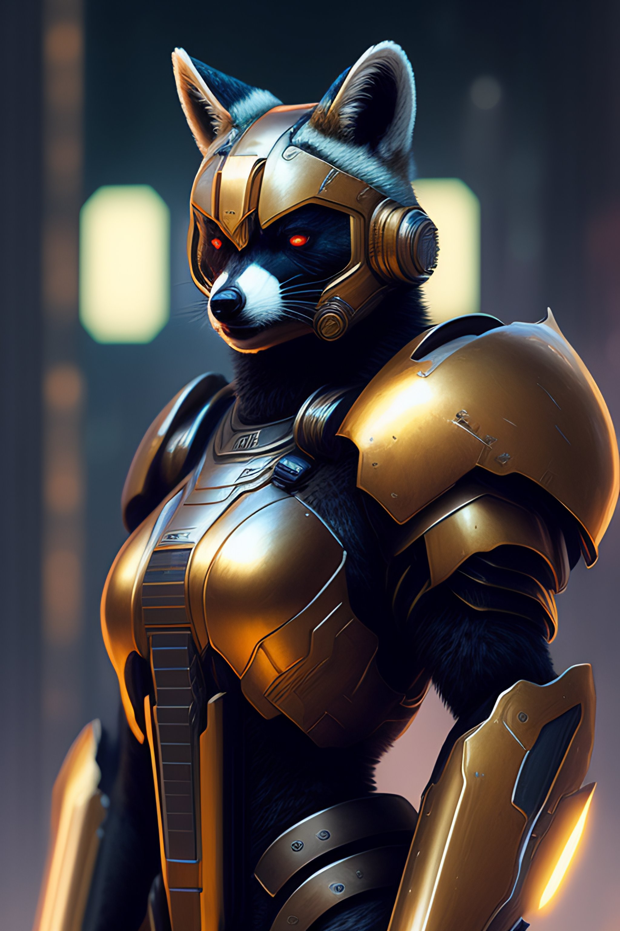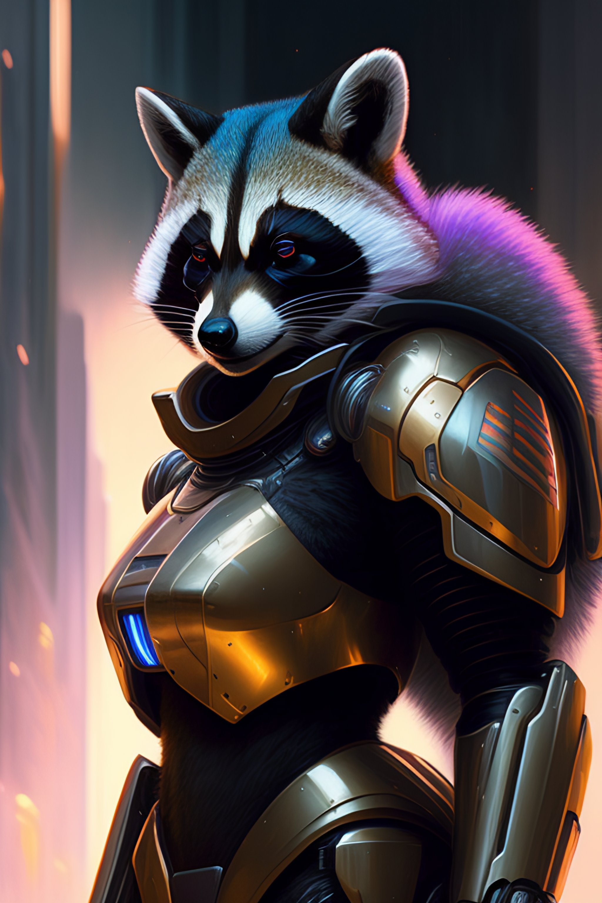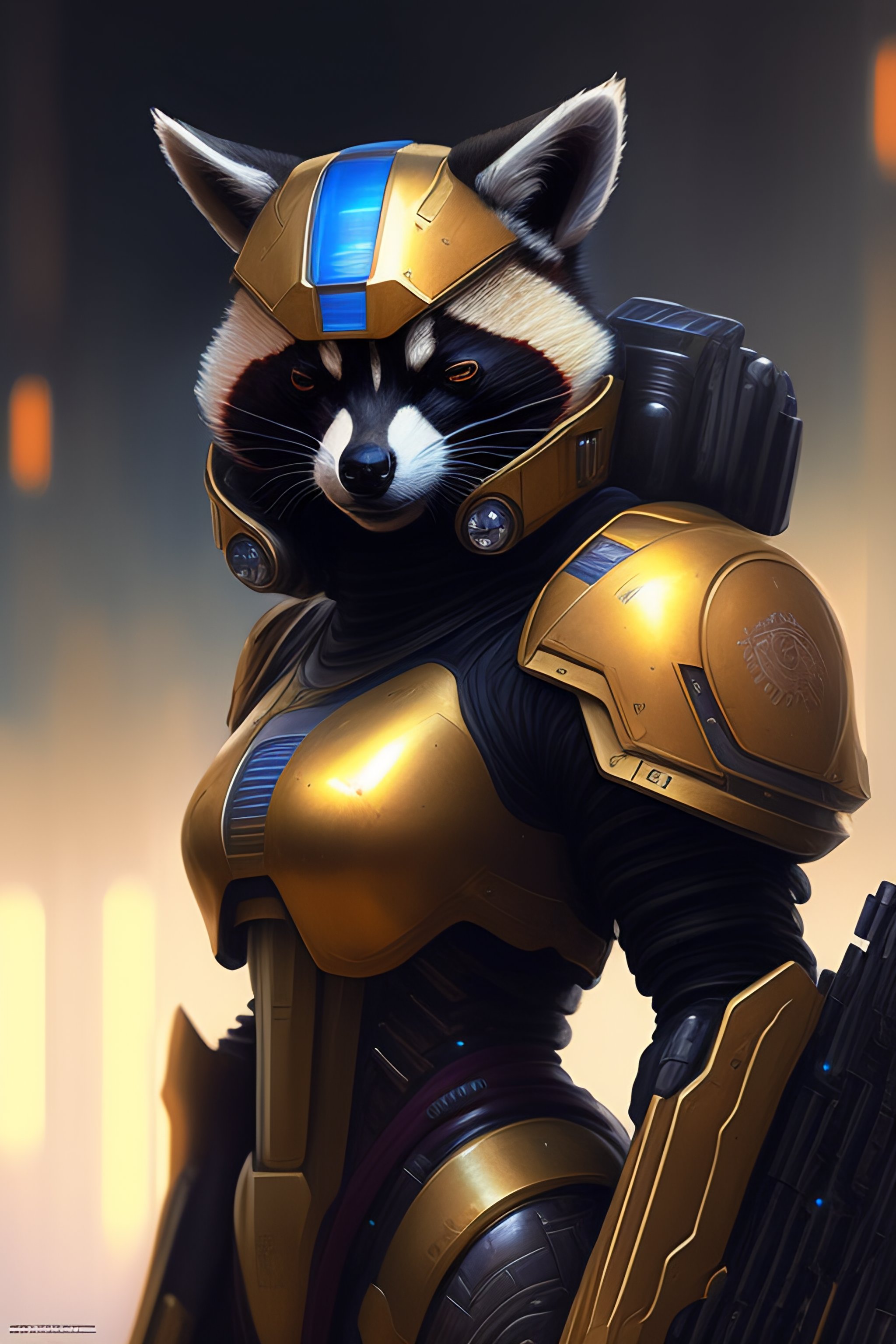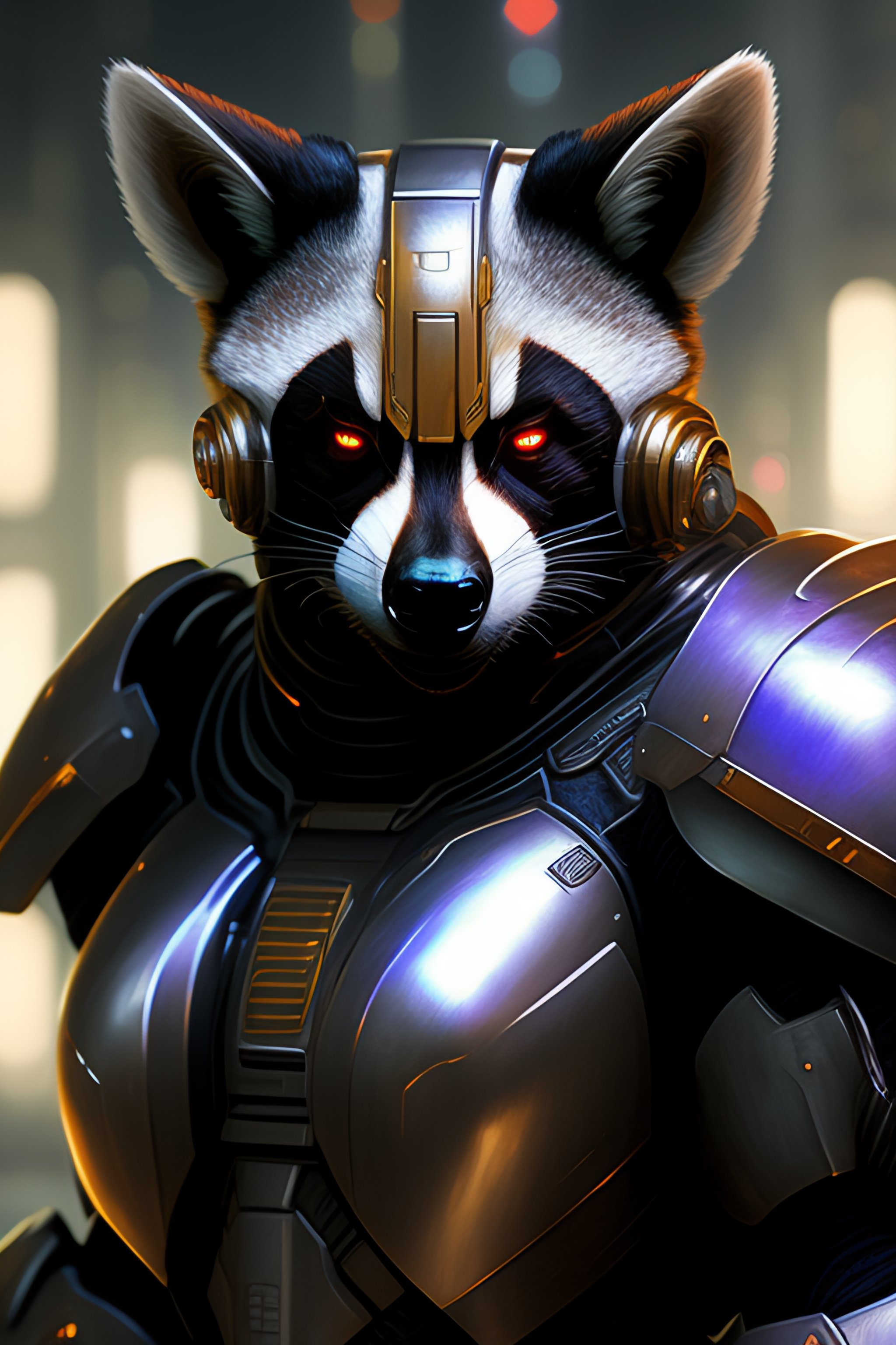A racoon as the doomslayer, realistic scifi cyberpunk power armor robot, closeup portrait art by donato giancola and greg rutkowski, vintage retro scifi, realistic face, digital art, trending on artstation, symmetry