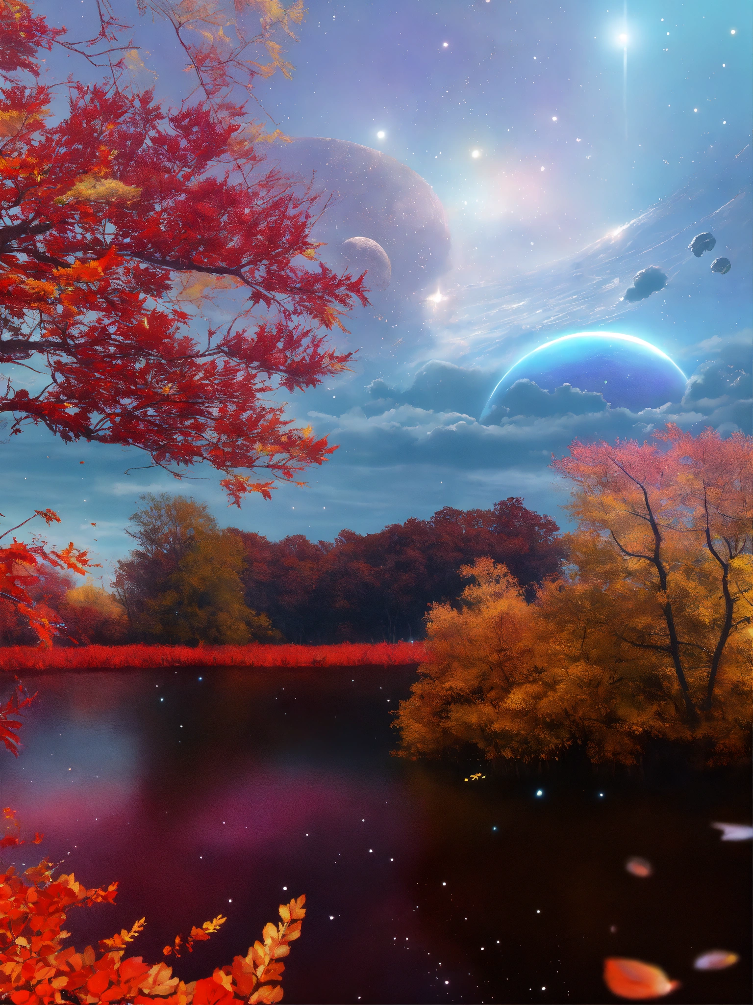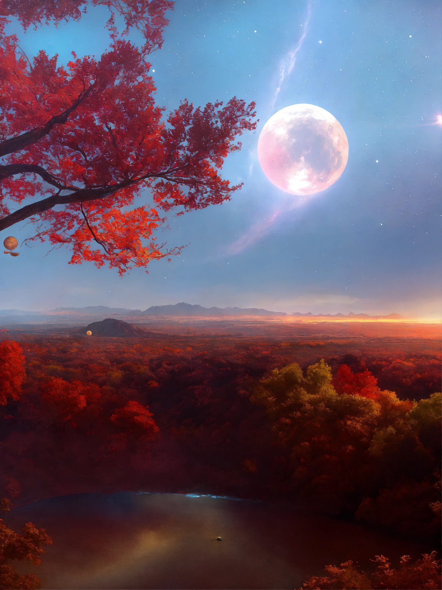 with red skies and views of outer-space
