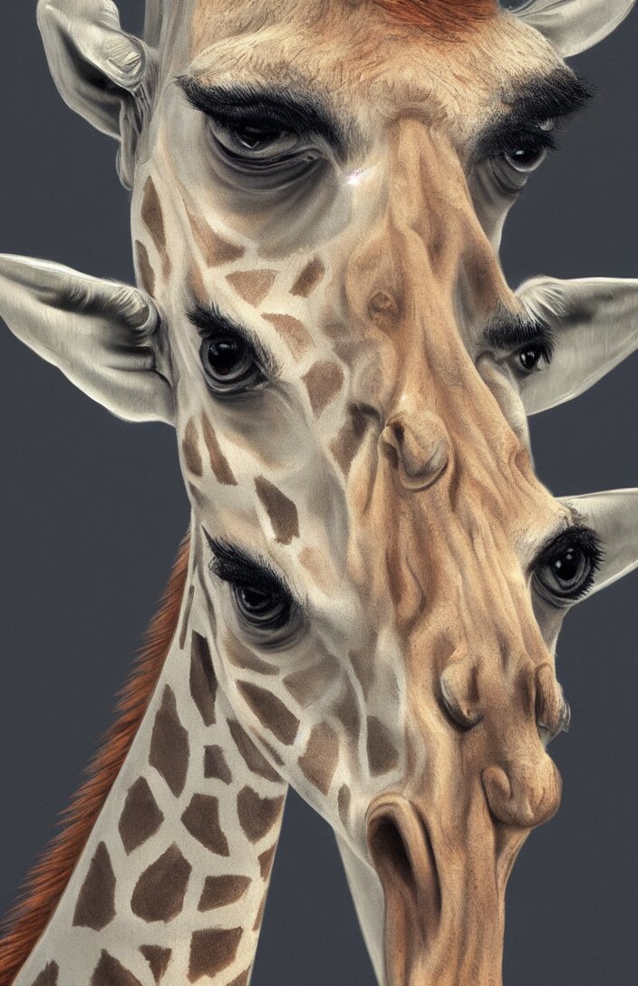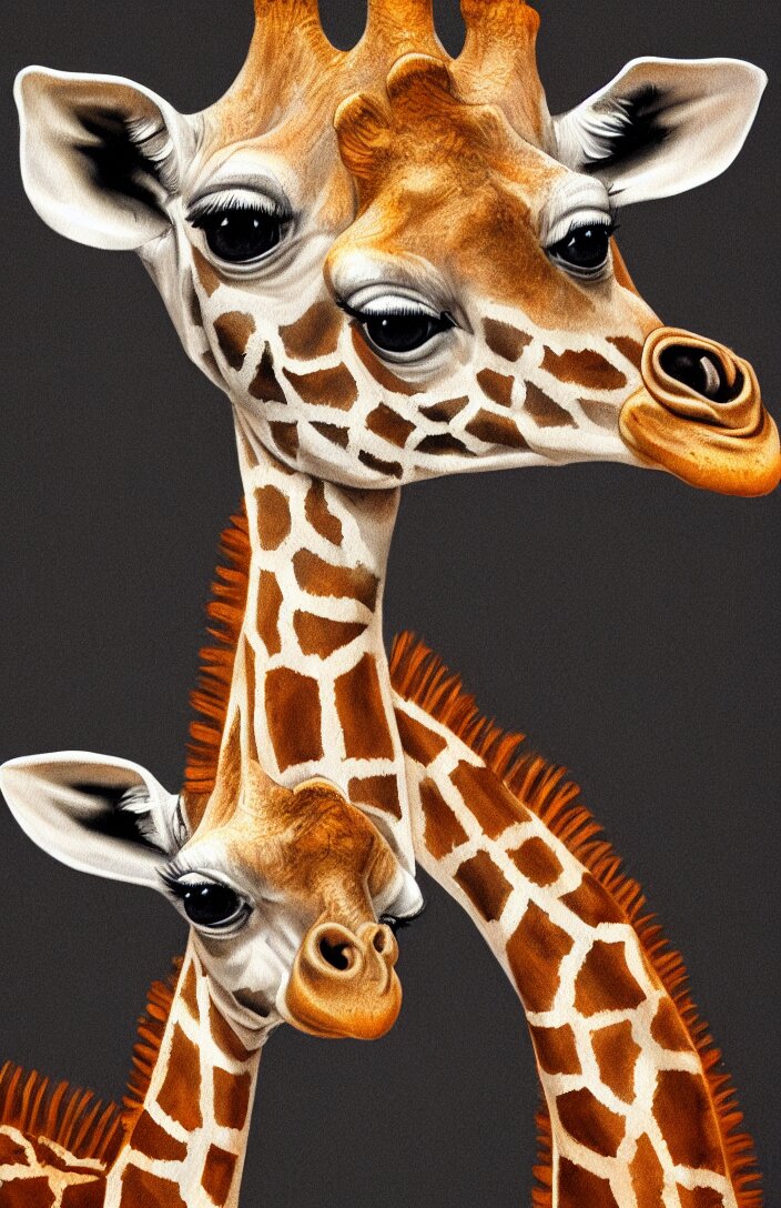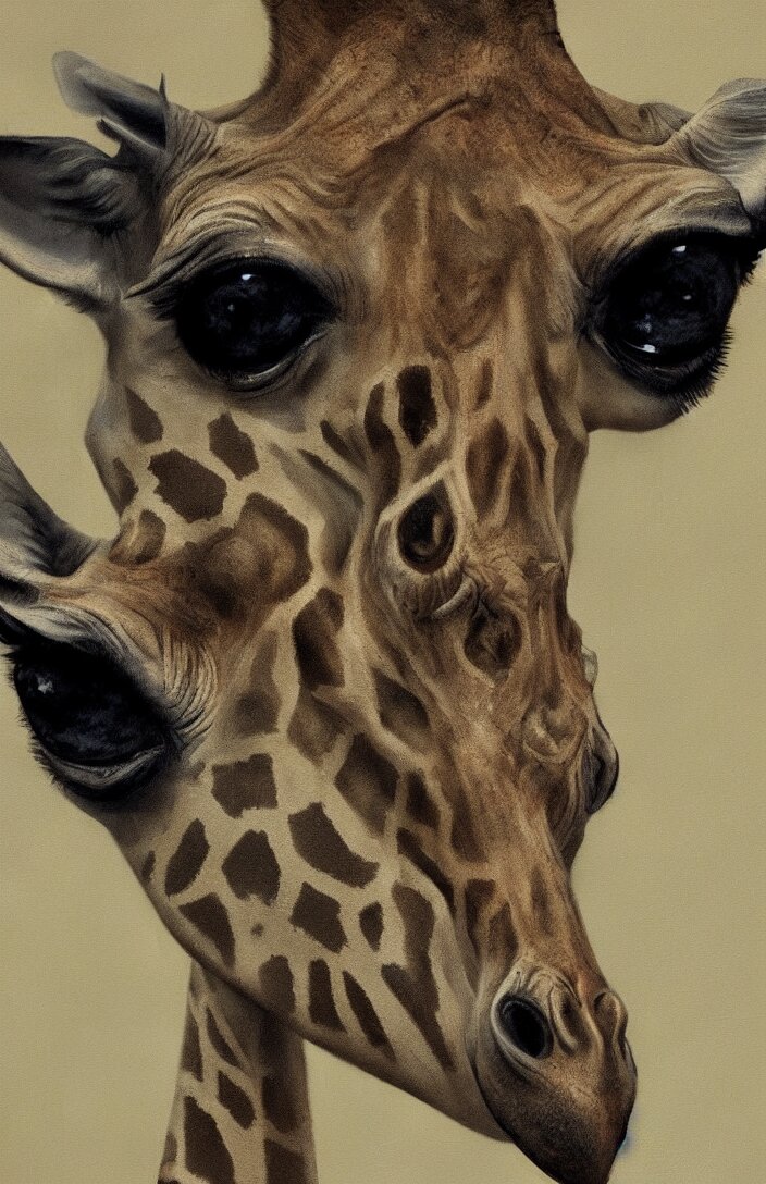 Expressive painting of a baby giraffe reptile, obfuscate light, intricate, captivating eyes, delicate, classicism style, intricate details, digital art, portrait, 8 k resolution