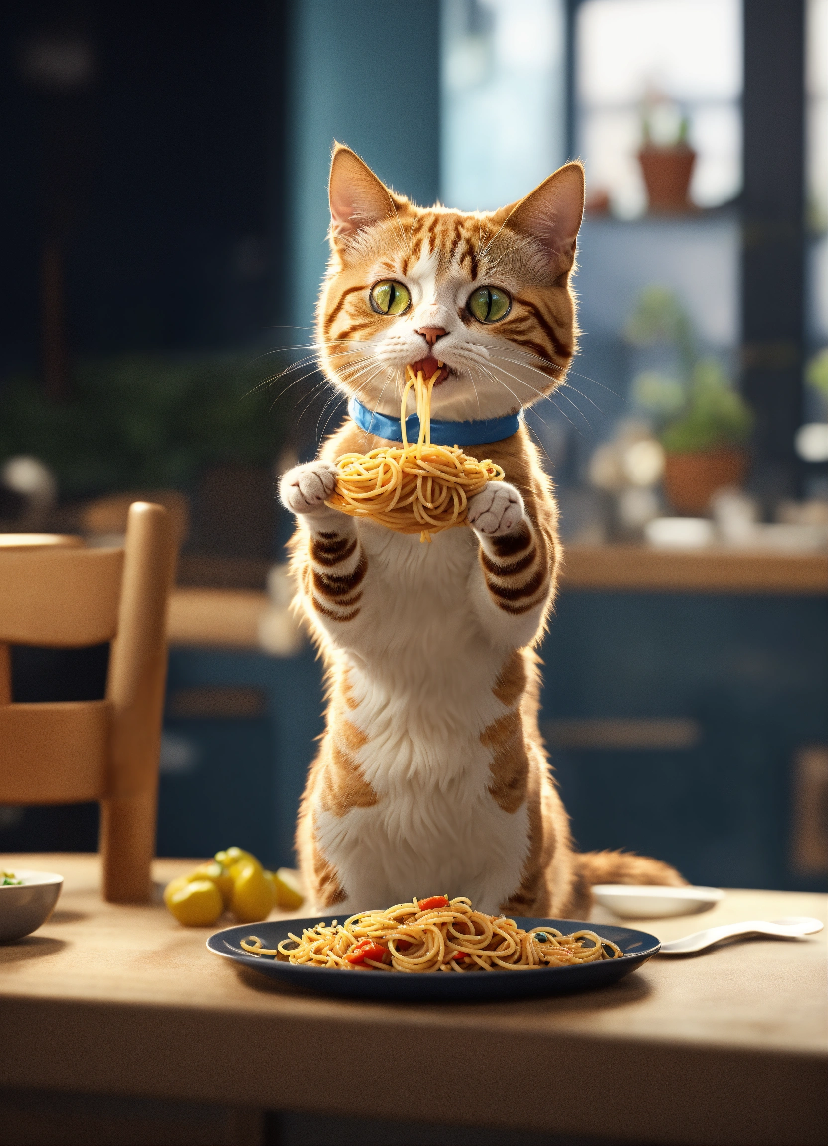 A cat standing on 2 legs