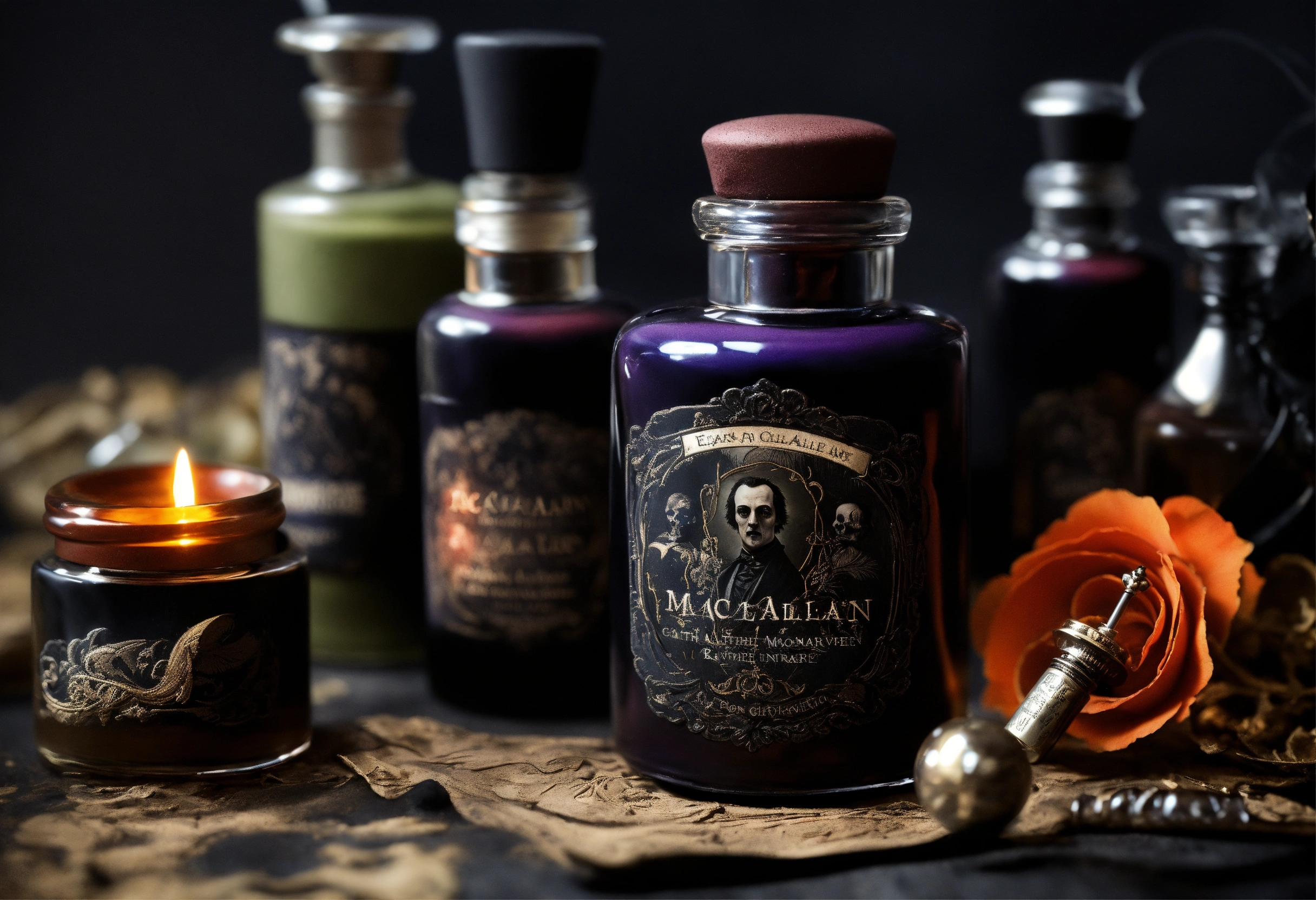 Hand-made modeling clay, one fragrance bottle, dark romanticism and the gothic, madness, death, and guilt, with a fascination for the macabre, edgar allan poe universe