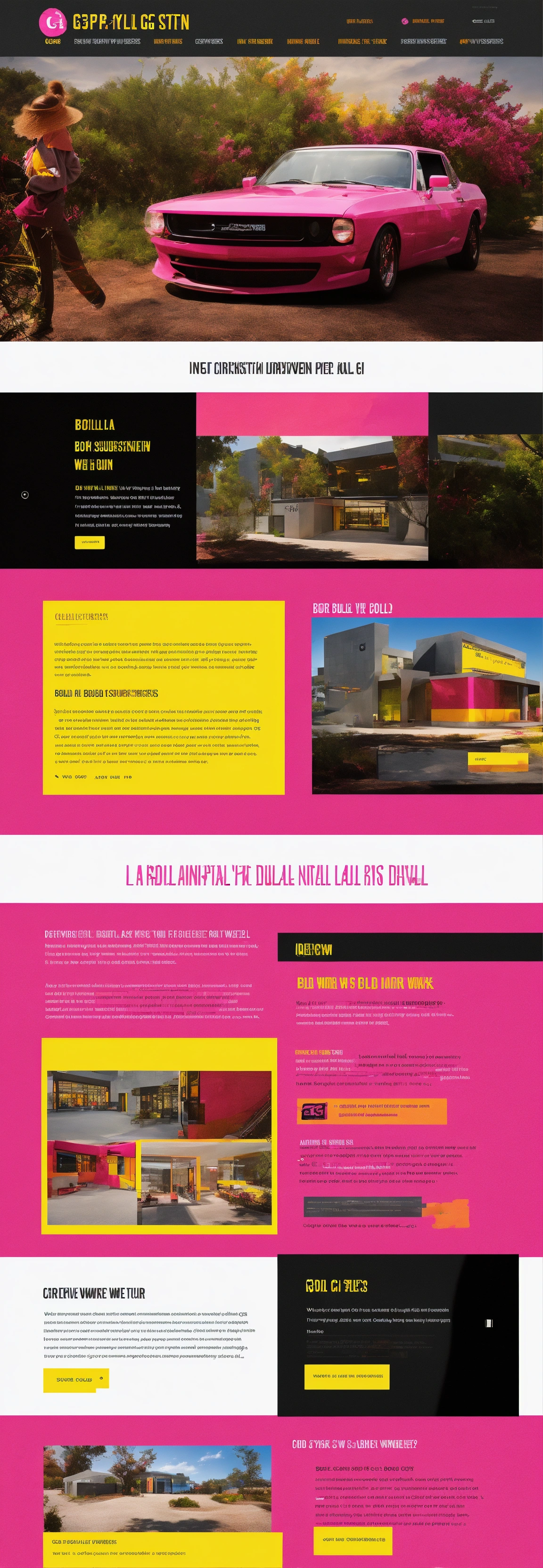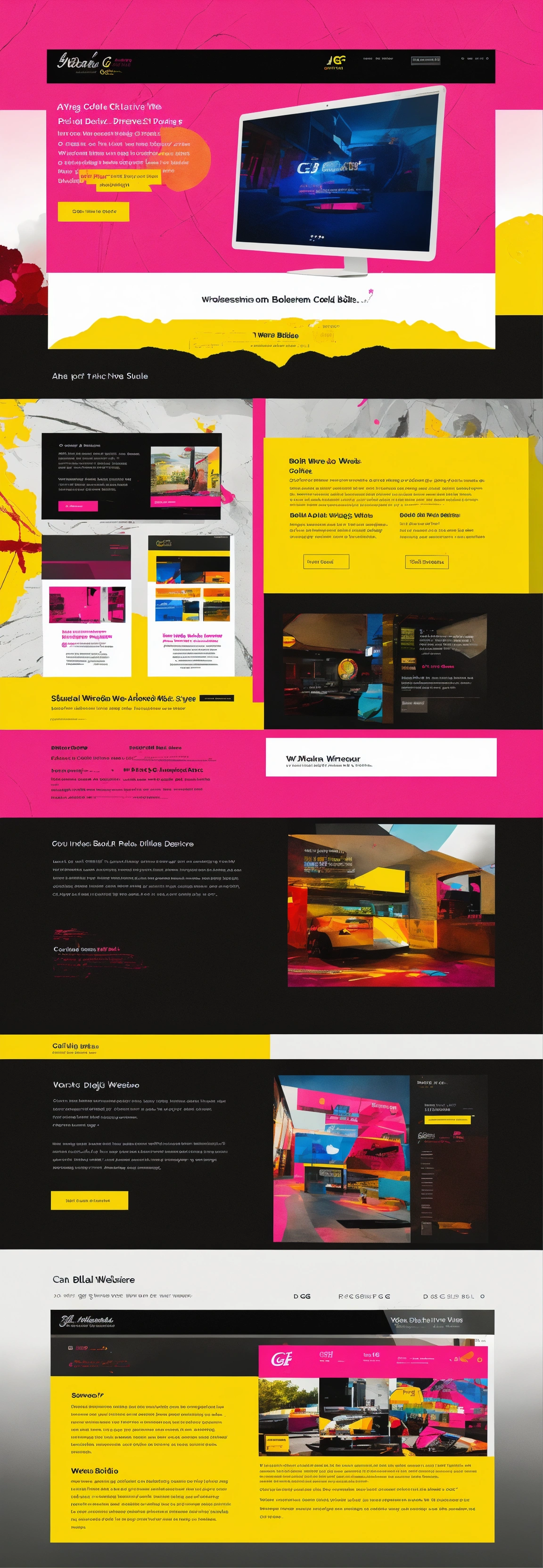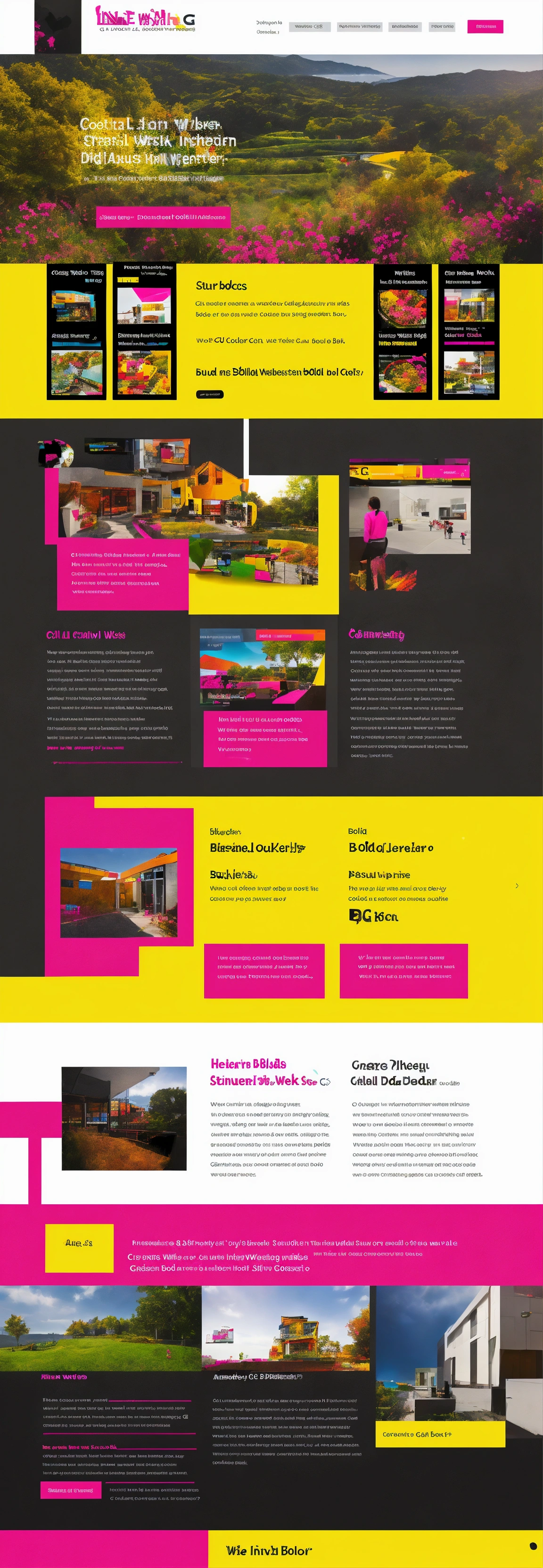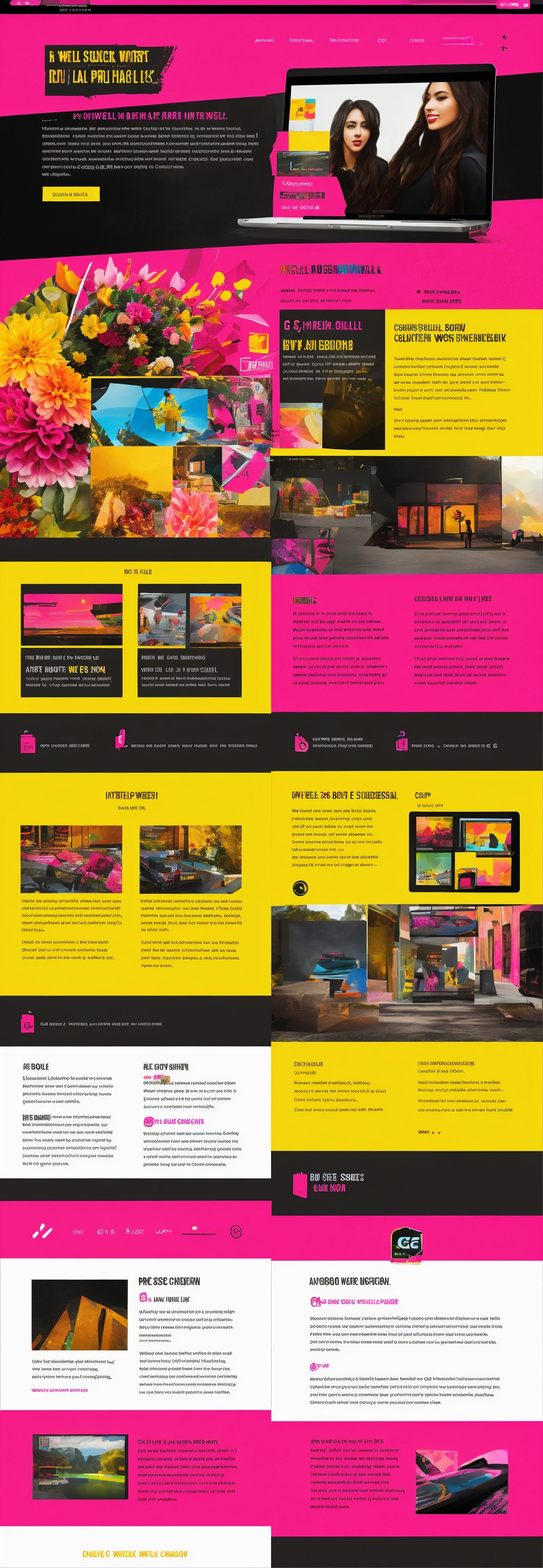 Portfolio website design, cg digital profiles design, creative style but bold, colors black hot pink yellow, interactive media works, website with student designs, bold style