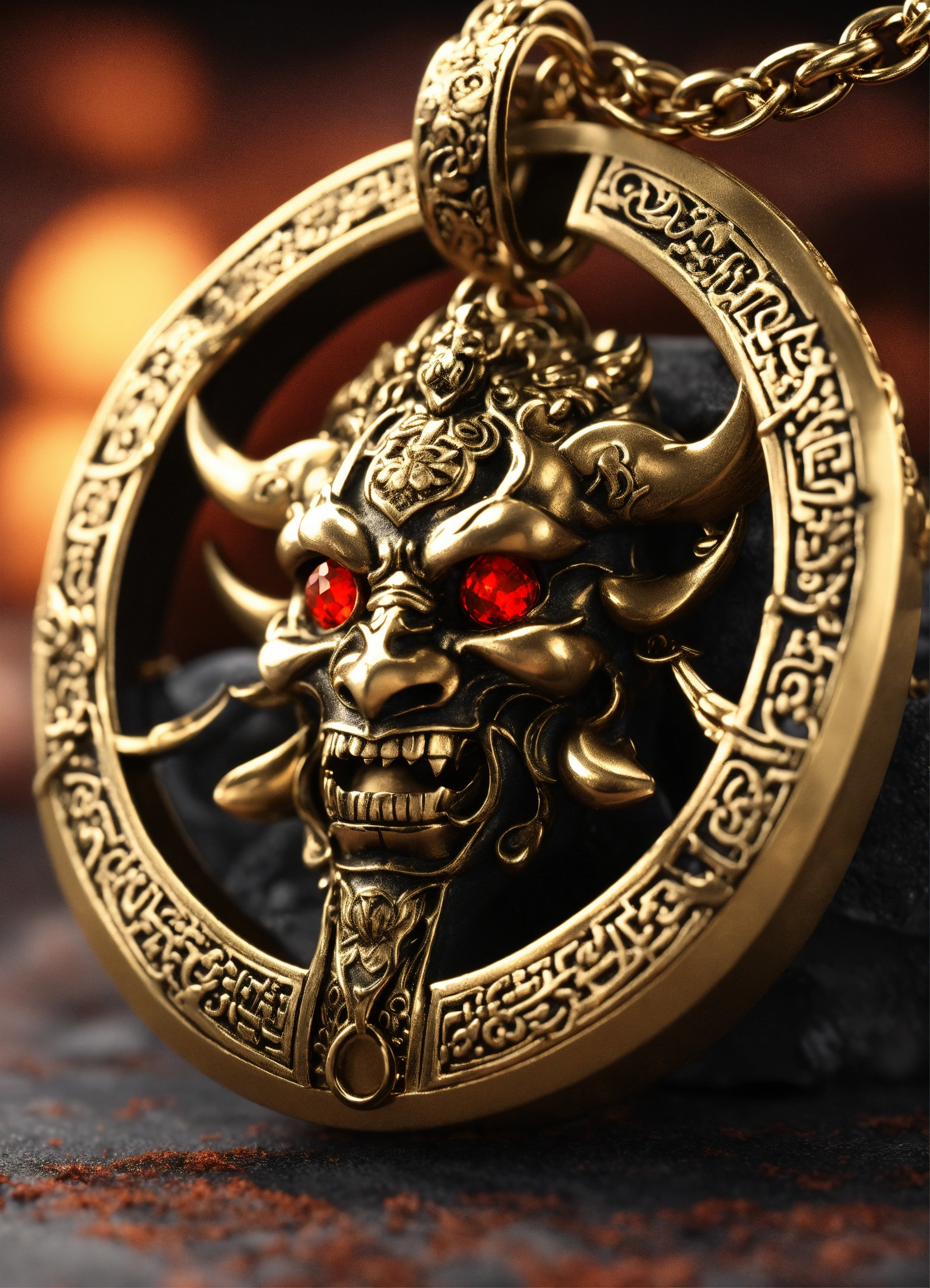 Complex 3d render ultra detailed of a demon necklace