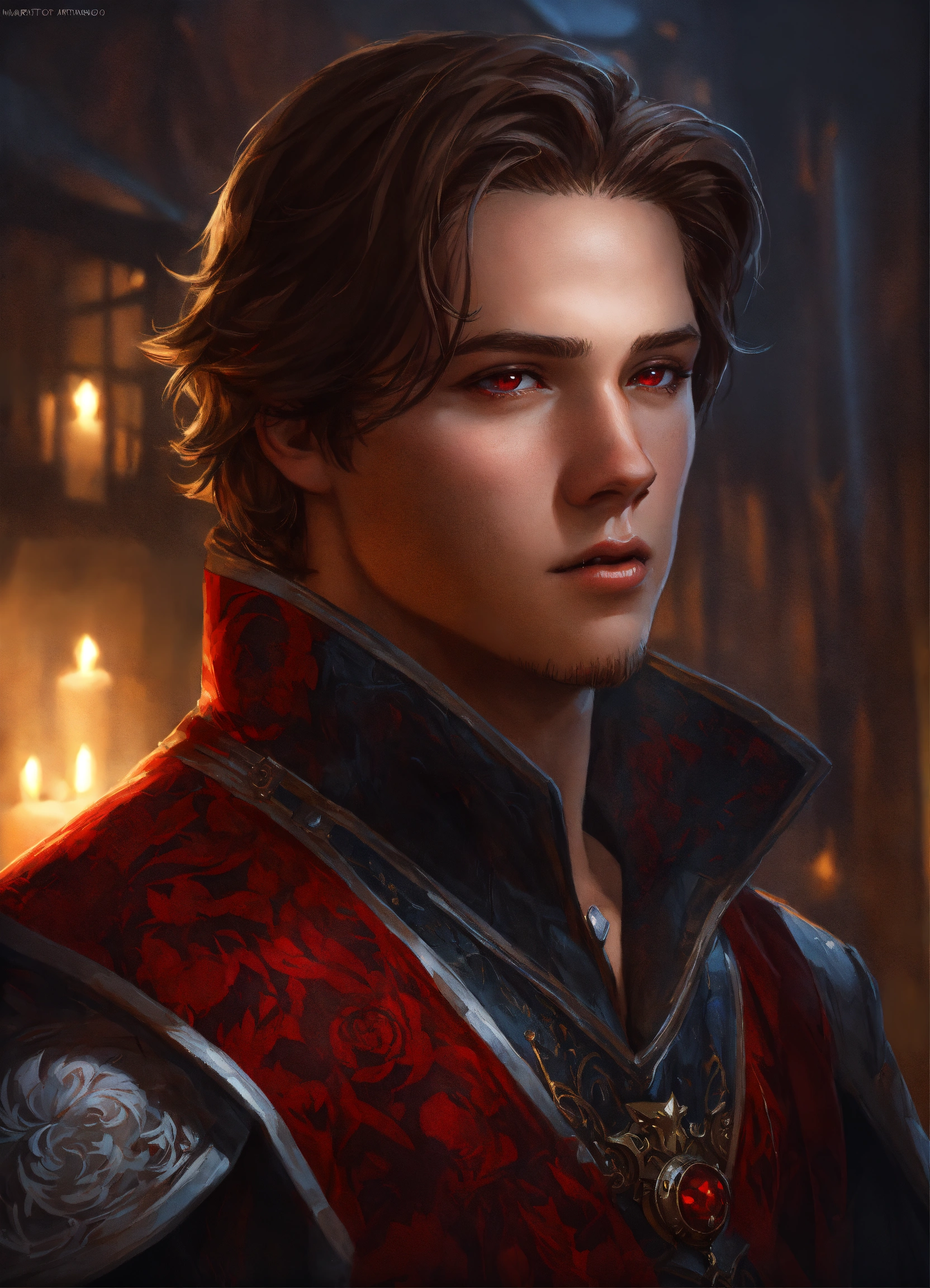 Highly detailed, digital painting, trending on artstation, concept art, sharp focus, illustration, art by artgerm and greg rutkowski and magali villeneuve. 27 years old. male. pale skin. fantasy. medieval. cole sprouse. black hair. red eyes. vampire.