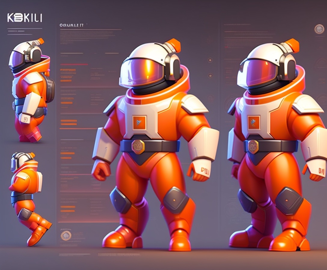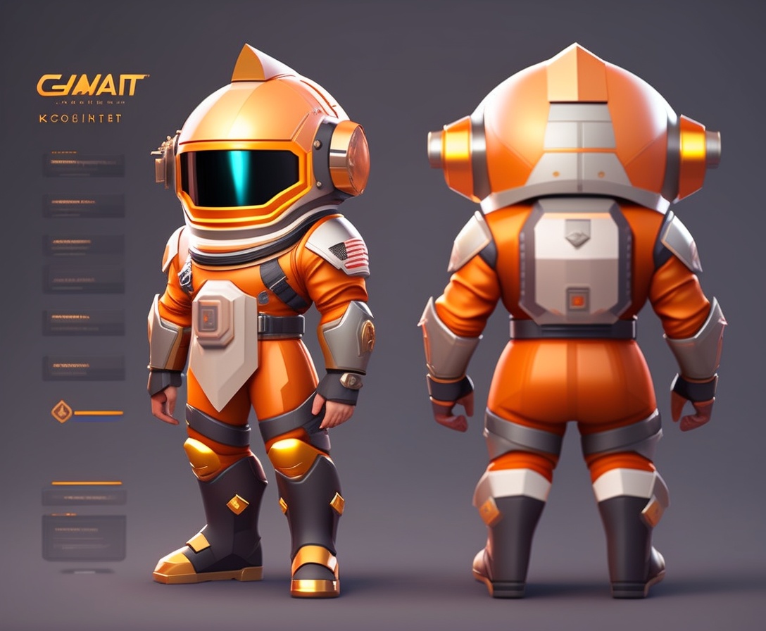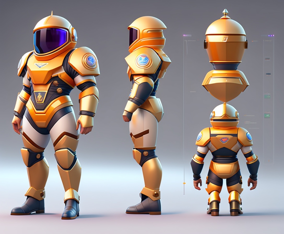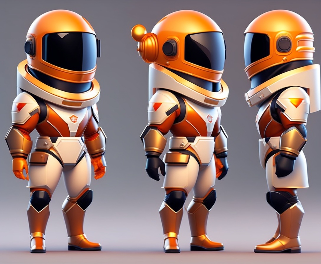 Cosmonaut knight, character sheet, character model sheet, character design, low poly style, model sheet, turnaround, character design, stylized caricature proportions.