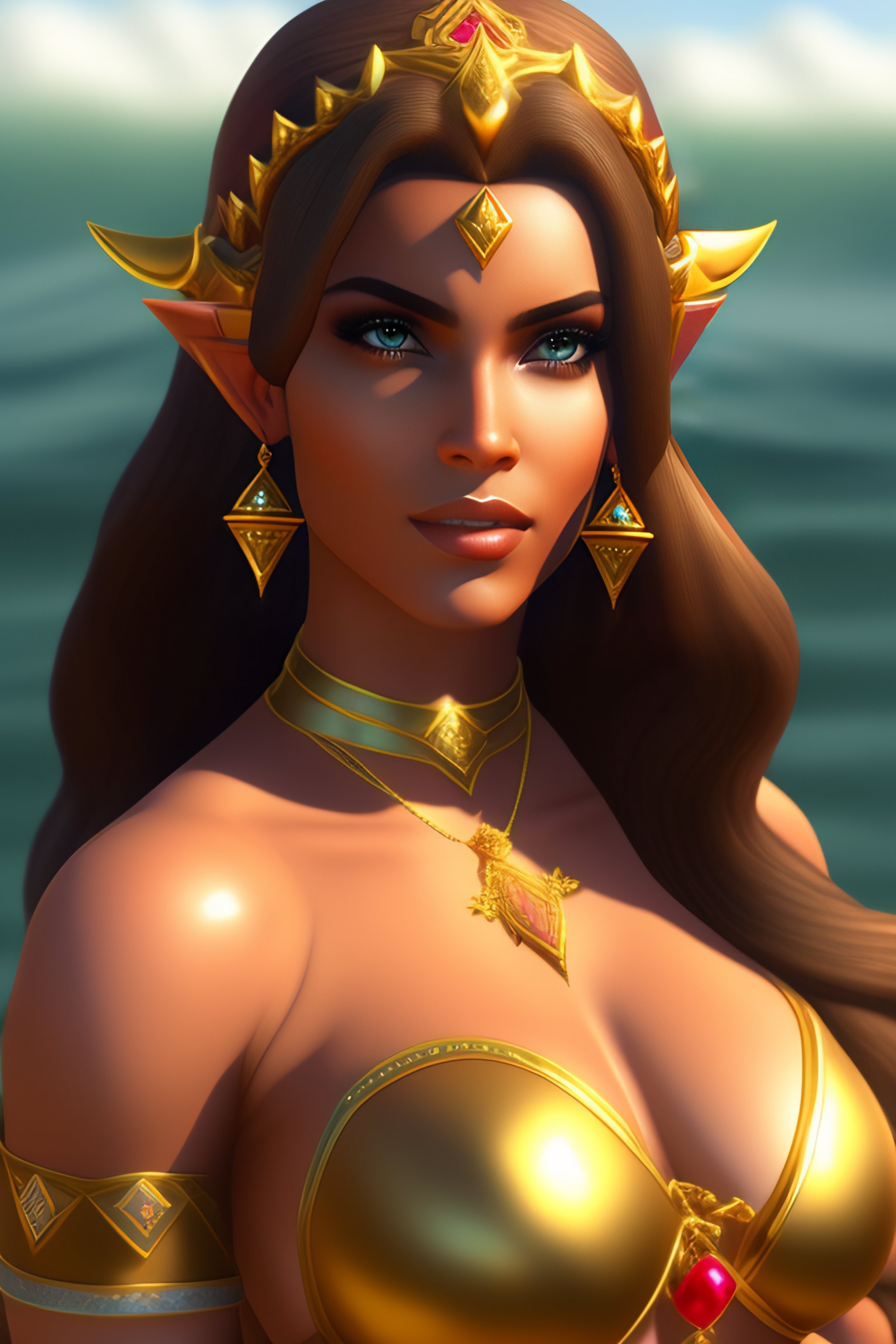 Mommy body, sexy princess zelda in bikini, mighty plump, gold jewelry, diamond ornament, 8k resolution, highly detailed, gorgeous woman, very beautiful lady!!