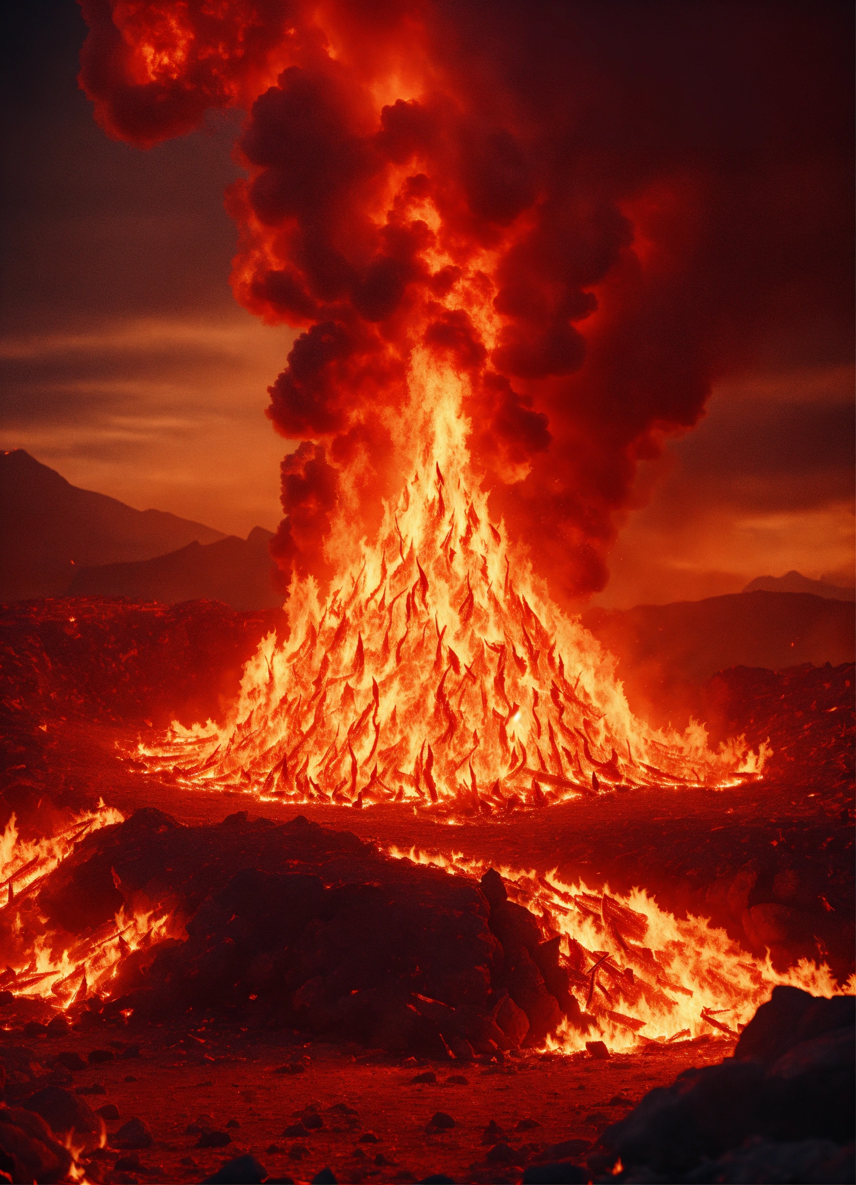 Fire in hell with many light red flames 8k
