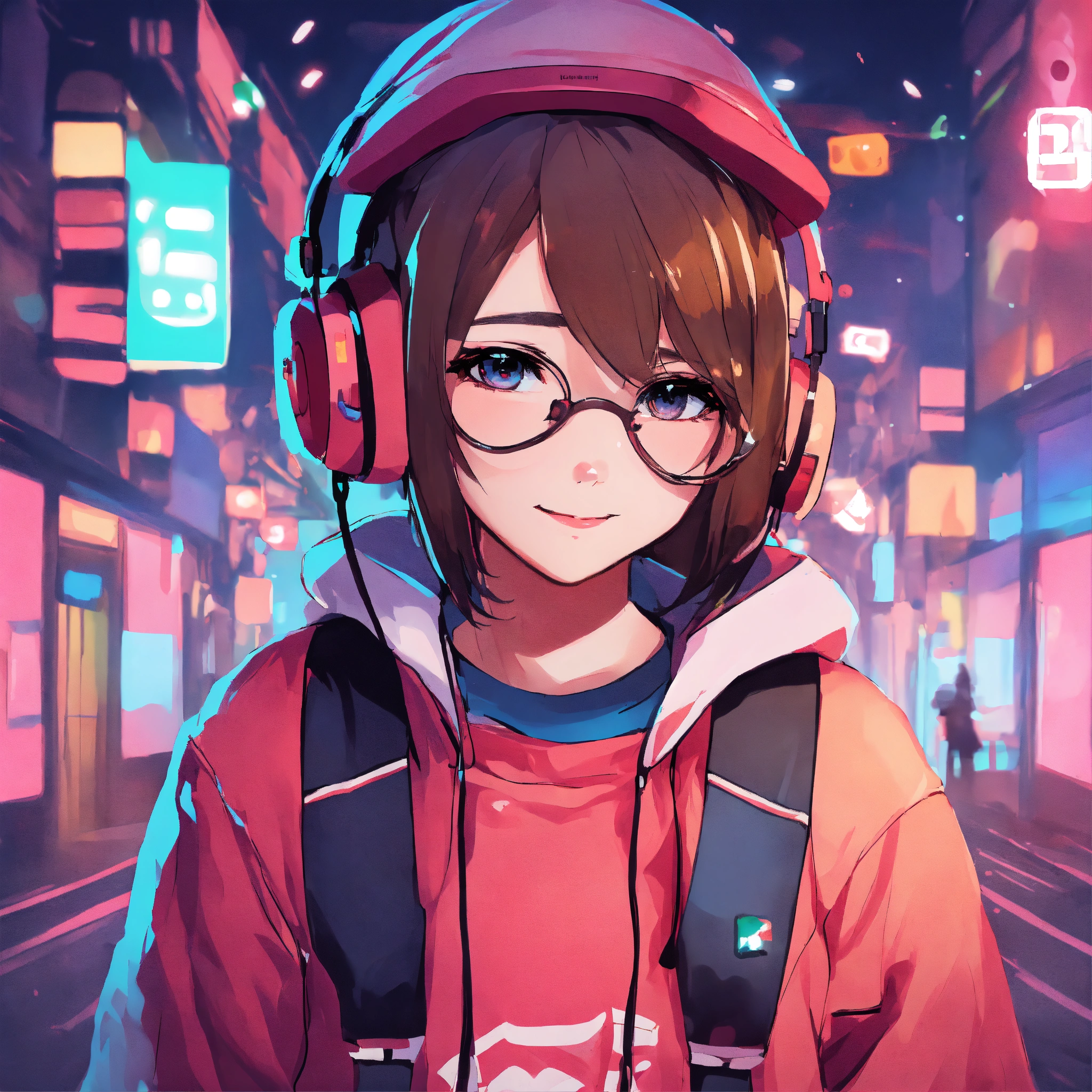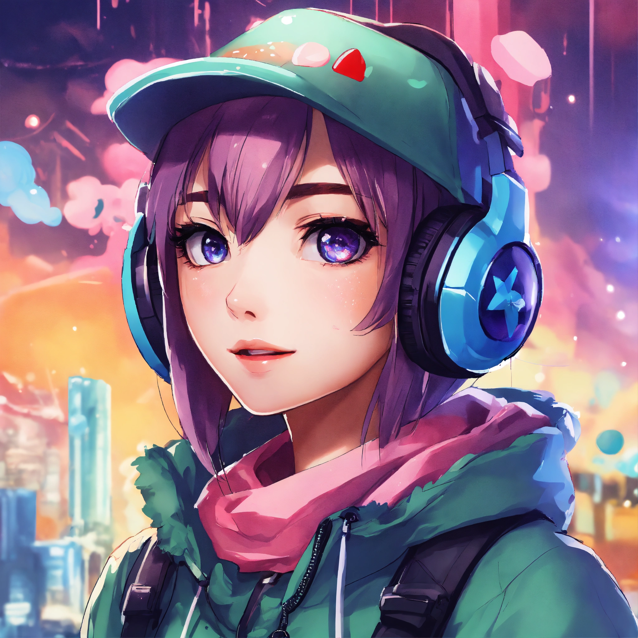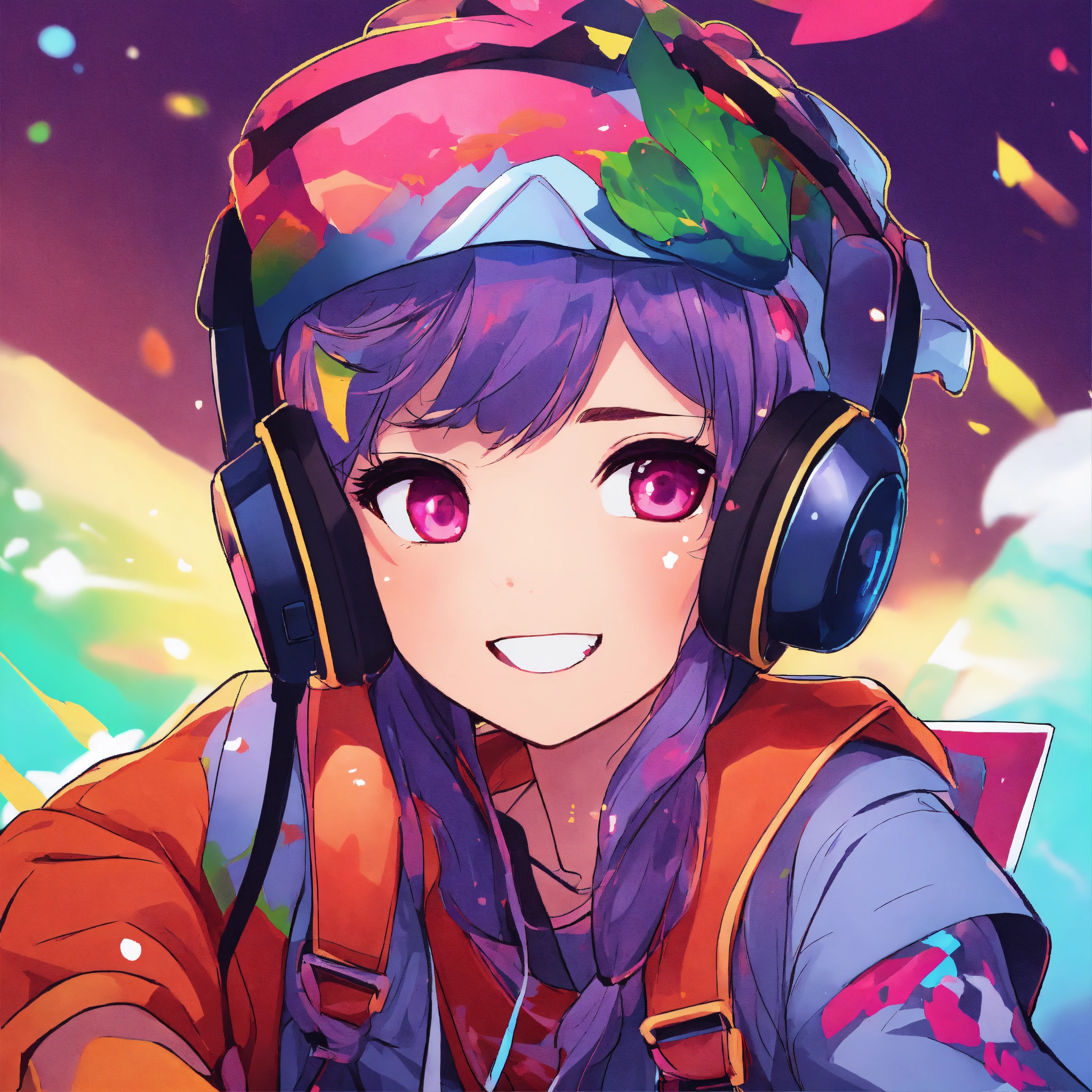Generate a 98x98 profile picture for a youtube gaming channel that seamlessly marries the worlds of gaming and education. utilize a minimalistic art style featuring vivid watter colors with strong contrasts. the central element should be a masked kawaii character reminiscent of a grungy mii profile. craft an eye-catching image that embodies the essence of both gaming and learning, all while fitting neatly within the small square frame. ensure the profile picture visually conveys the channel's harmonious blend of entertainment and education, without the need for text.