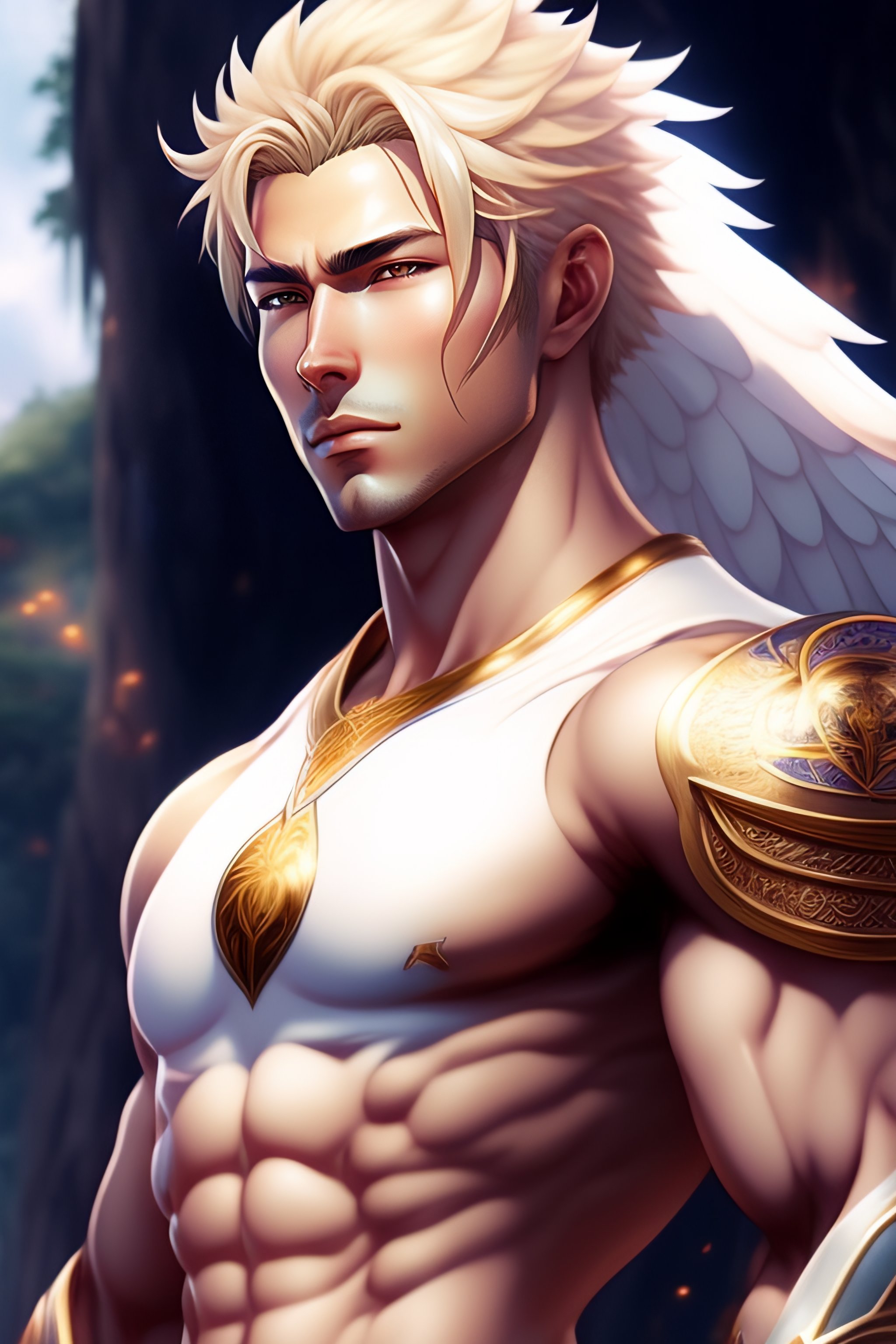 Realistic anime male arc angel of life with blonde hair by the river of life, full body pose, intricate detail, digital portrait by artgerm and makoto shinkai, huifeng huang, artstation