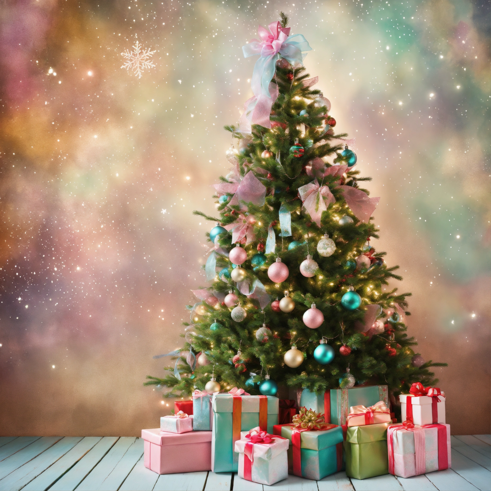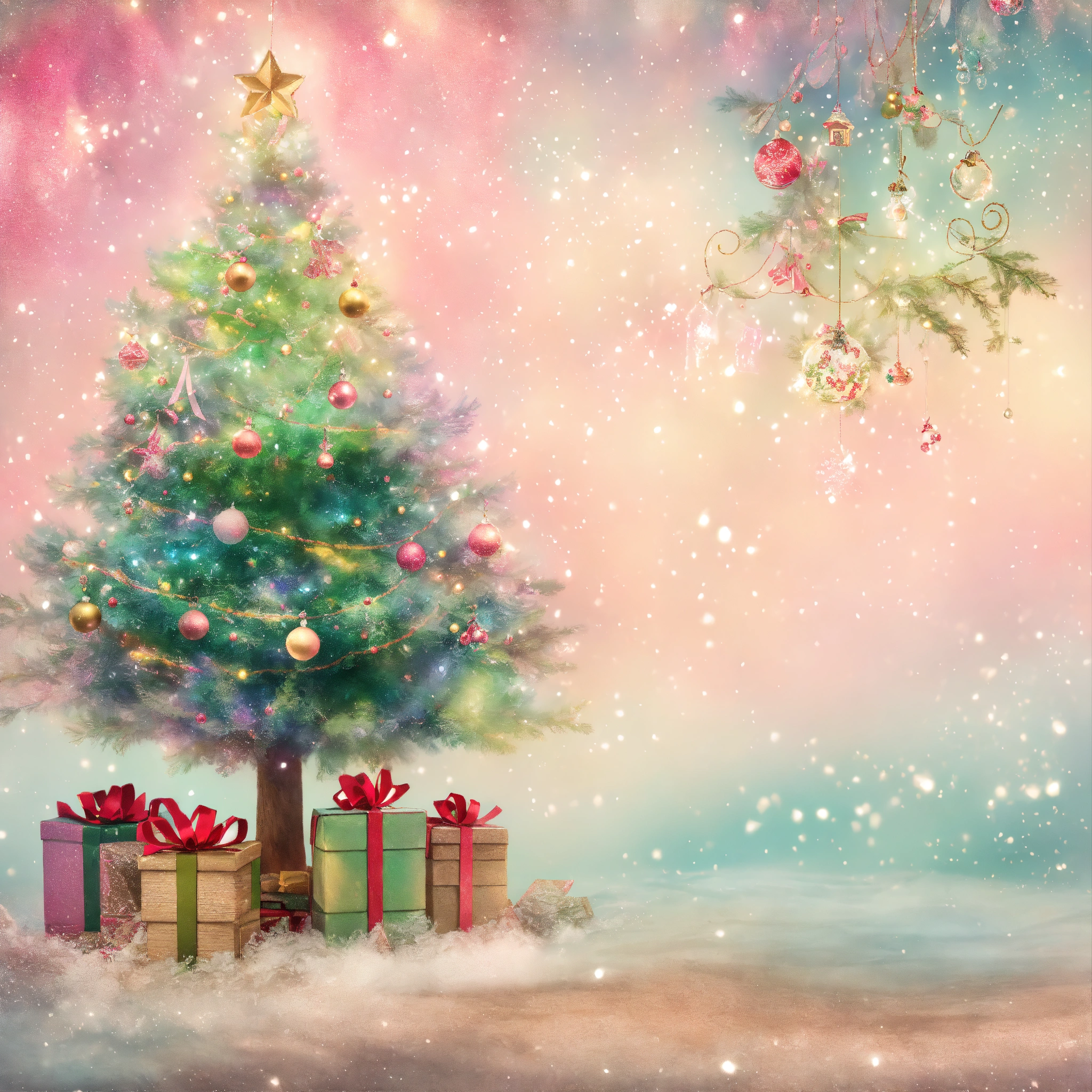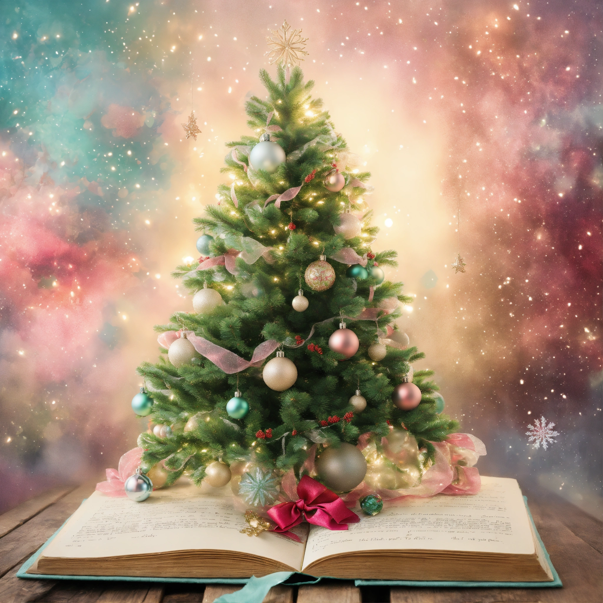 Shabby chic dreamy mist pastel junk journals decorated christmas tree swirling magical fairytale abstract art style