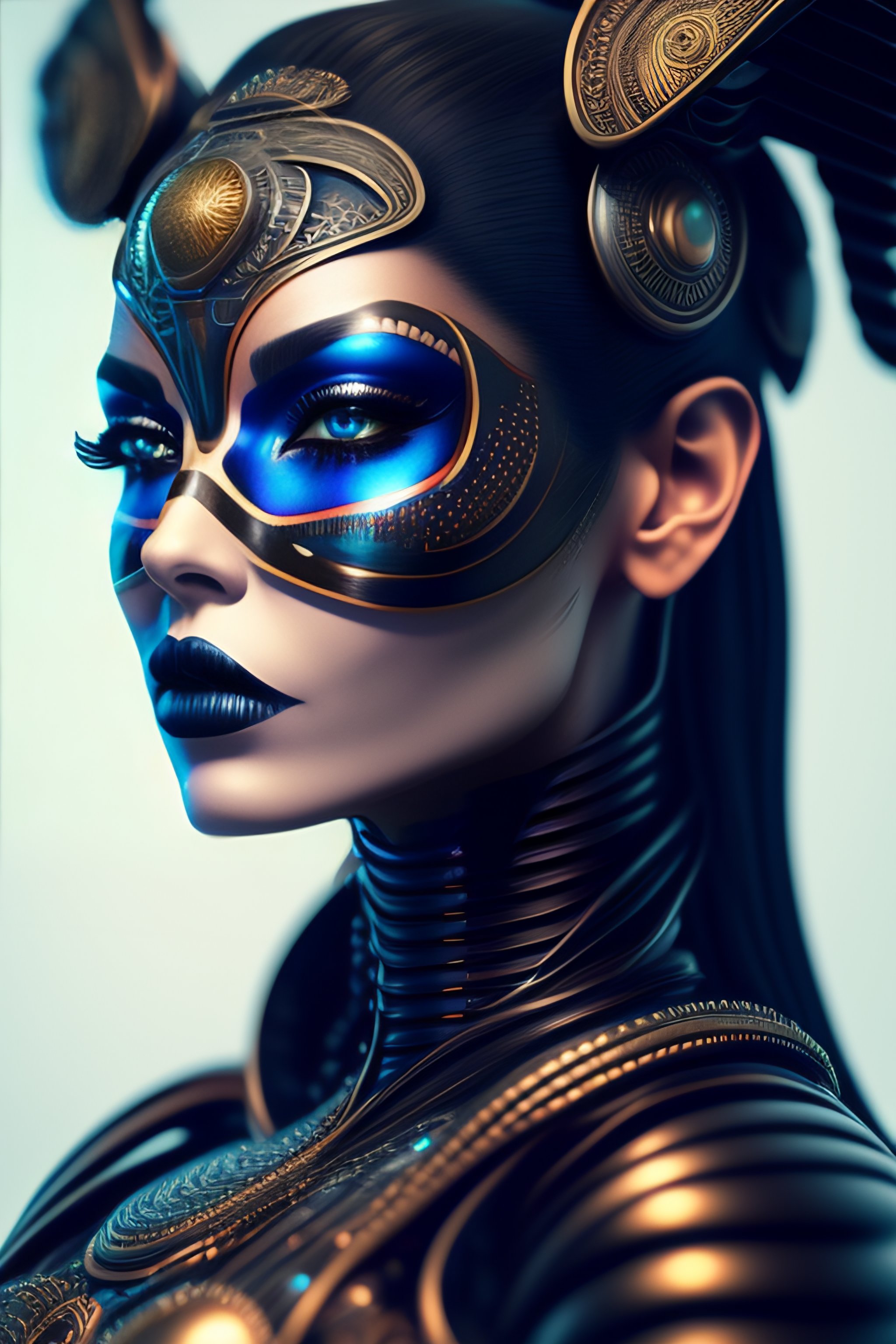 Ultra detailed side portrait of female android, beautiful attractive latina woman with white skine, (dia de los muertos), face is decorated with intrincate catrina patterns, female cyberpunk android, very white skine, intrincate robot body, very intrincate skull decoration, catrina, sharp focus, sci - fi, fantasy . octane render, unreal engine, global illumination, intricate detailed. art by giger, 8 k