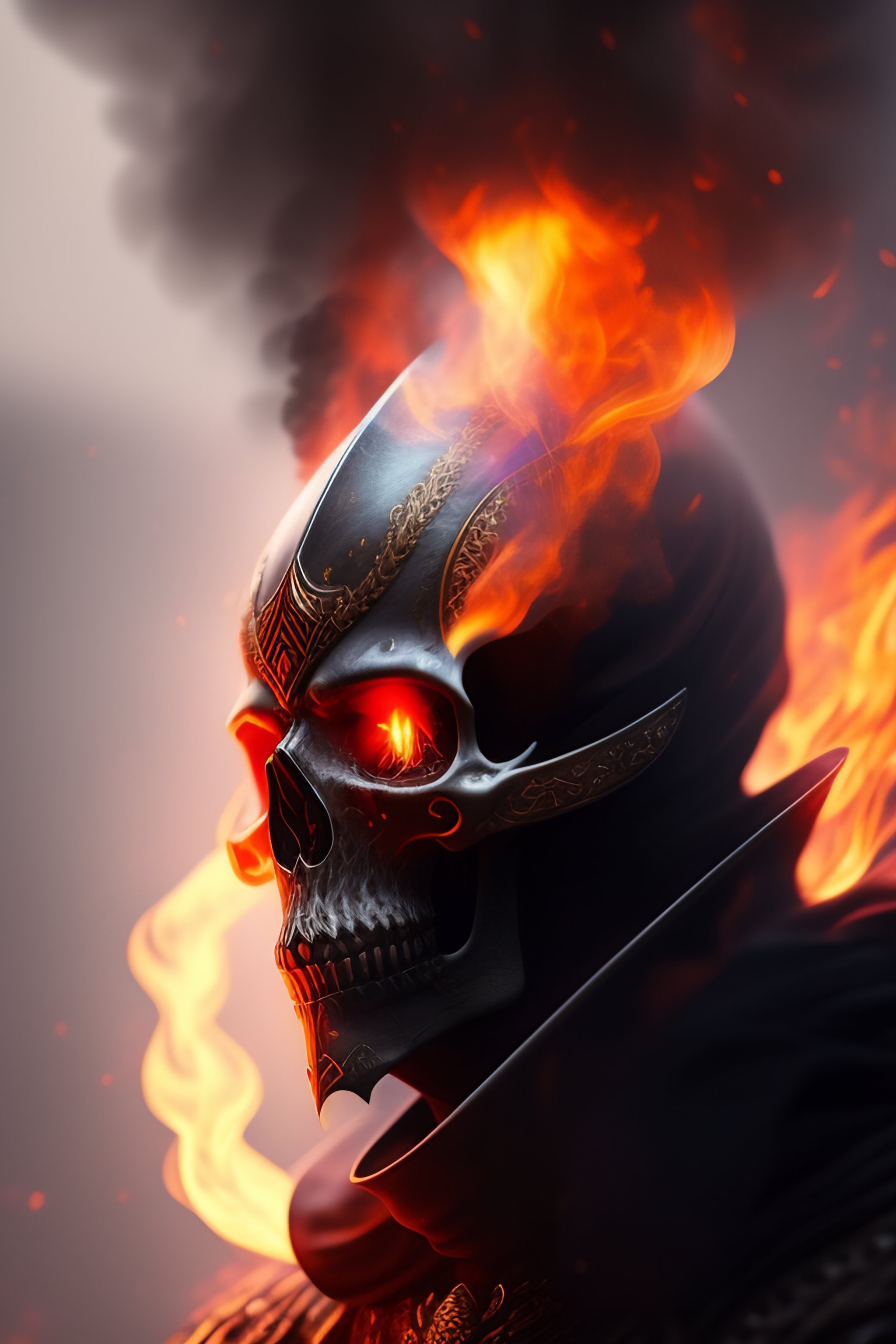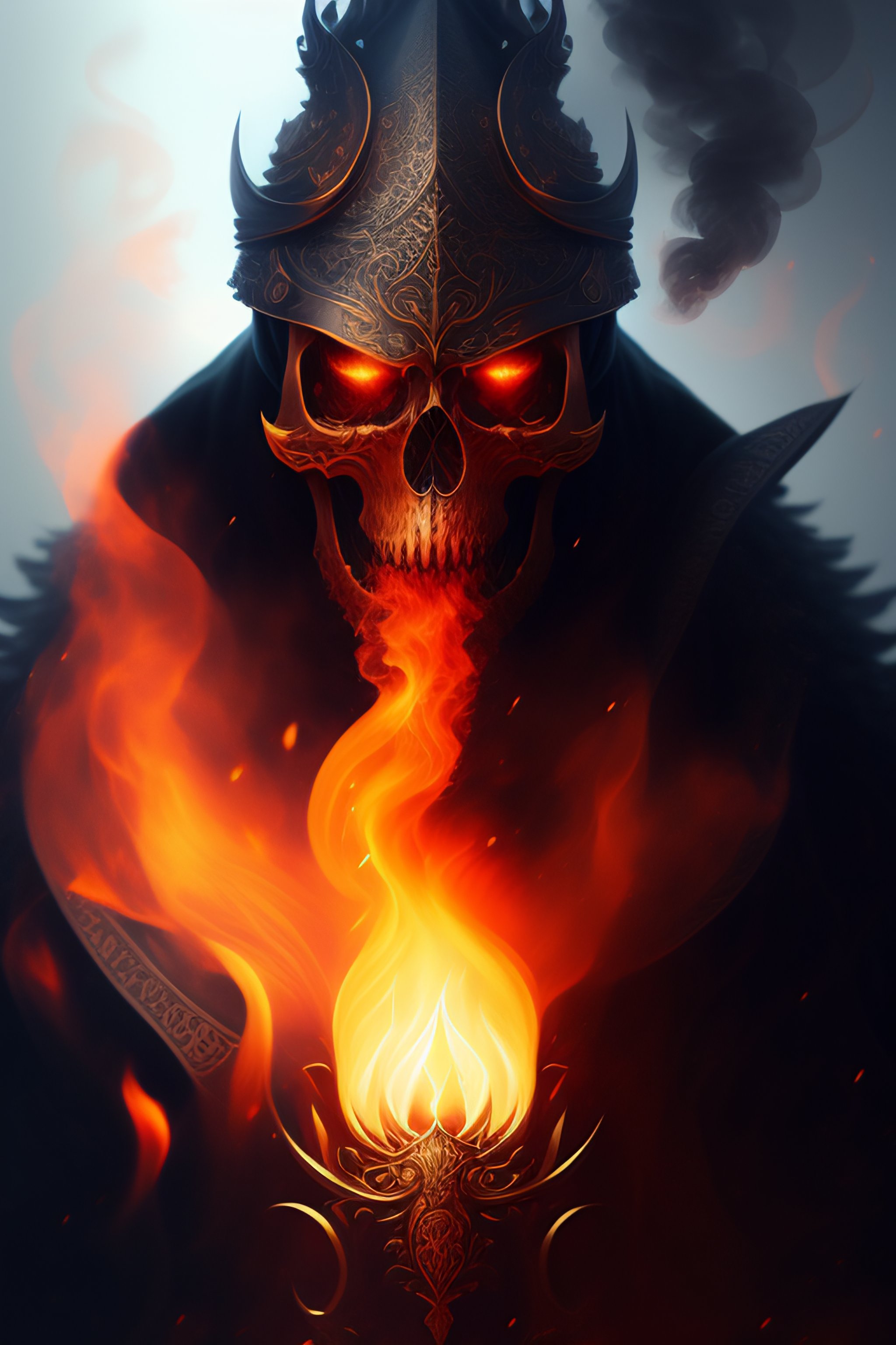 A skullwith his eyes on fire and smoke coming out of his mouth, fantasy, intricate, elegant, highly detailed, digital painting, artstation, concept art, smooth, sharp focus, illustration, art by ilja repin