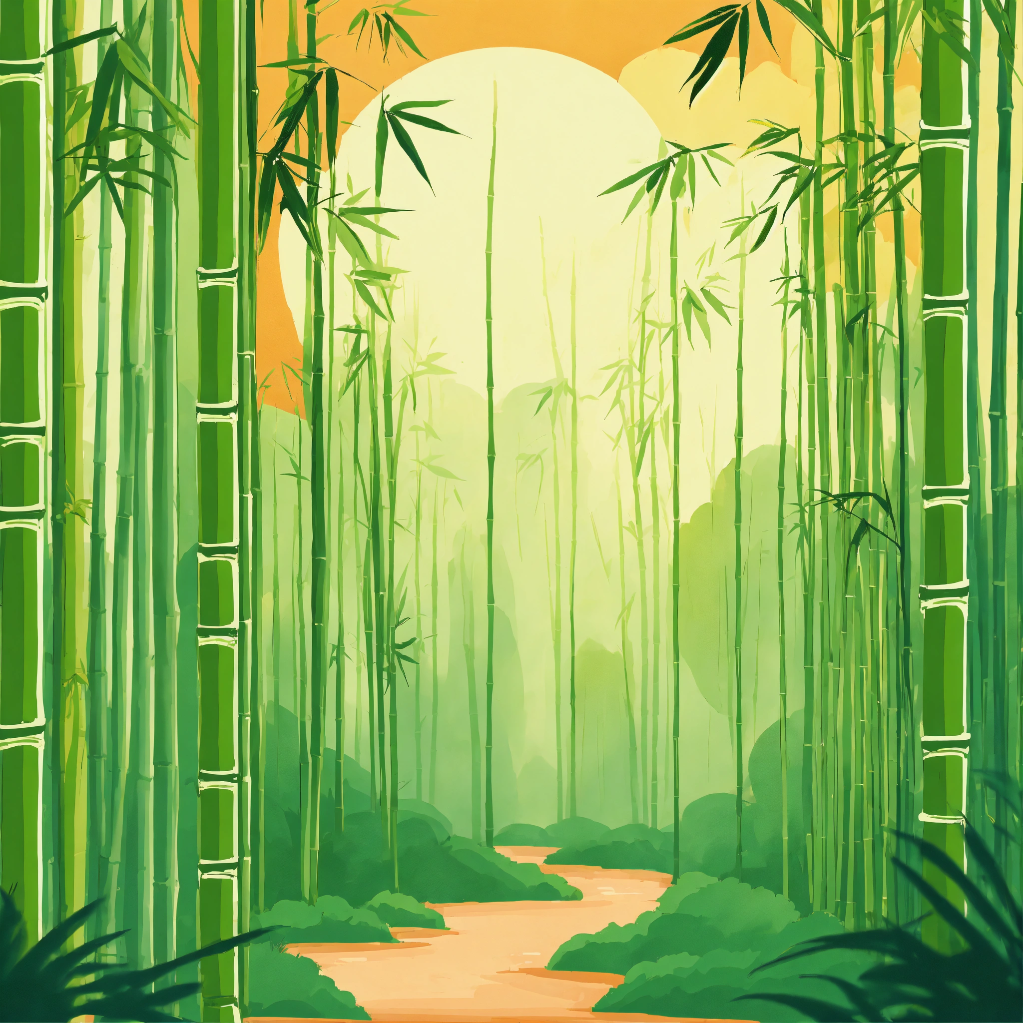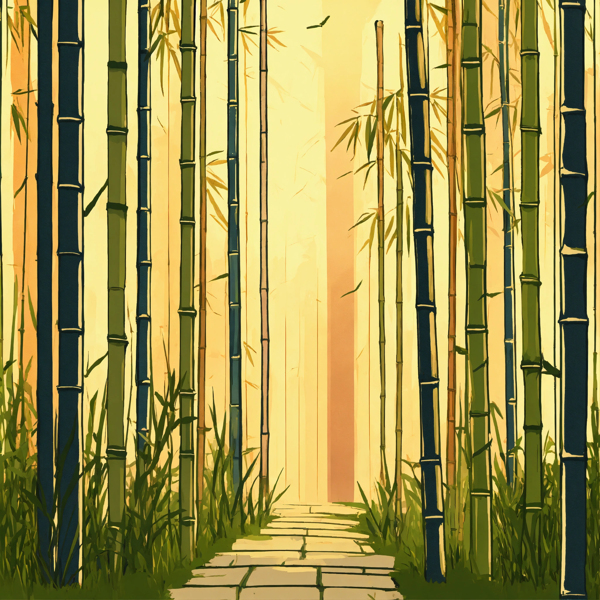 Bamboo forest, cozy webpage background hero image for adorable platform modern minimalist illustration
