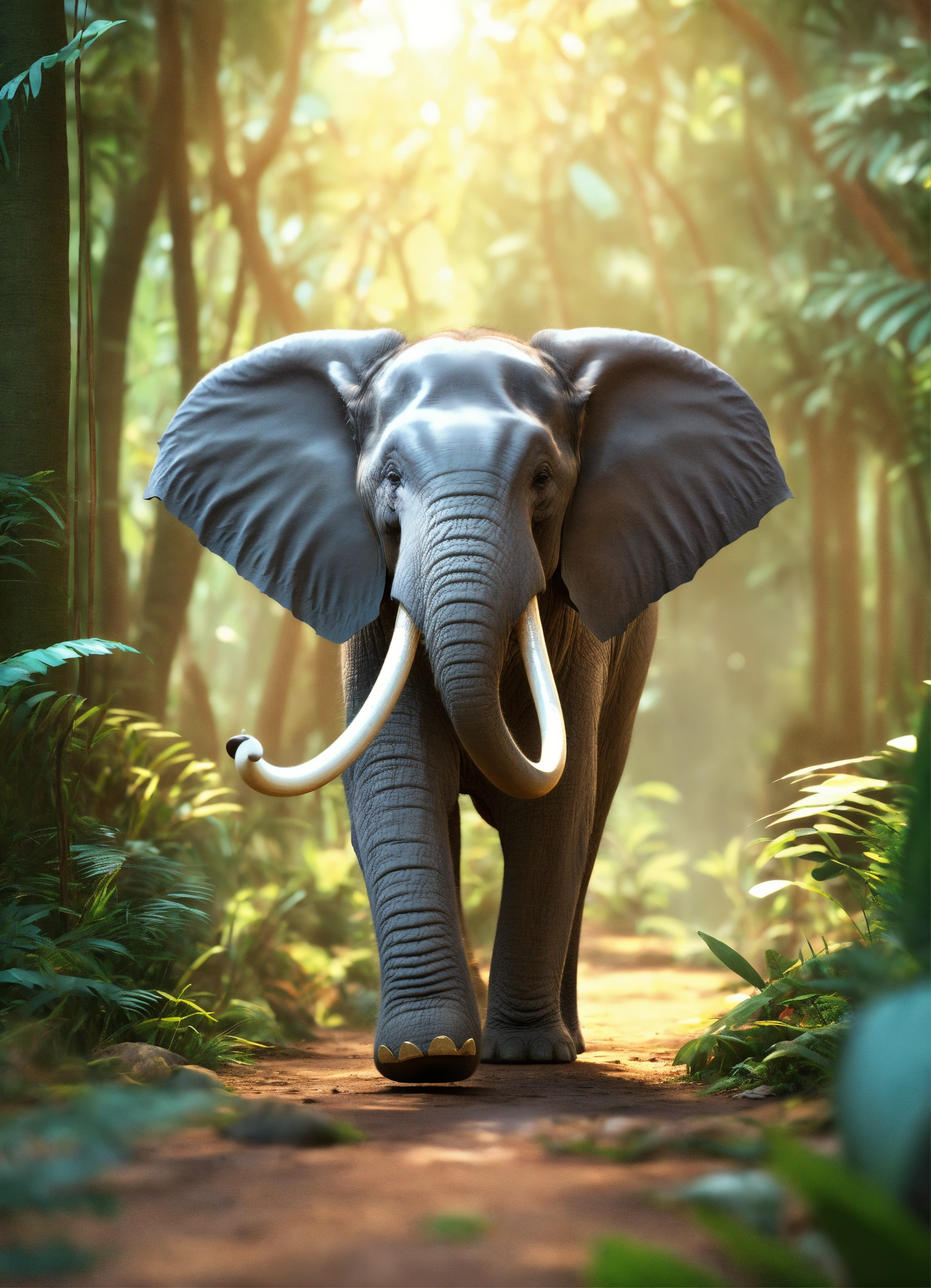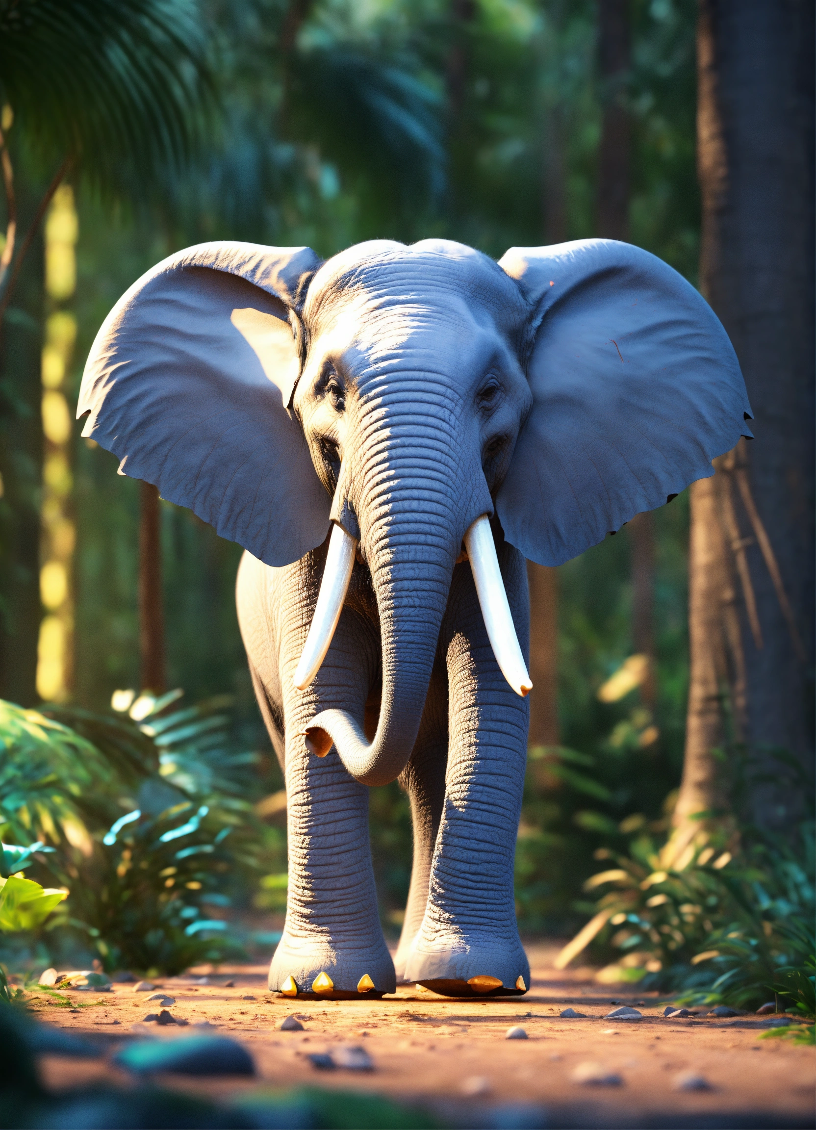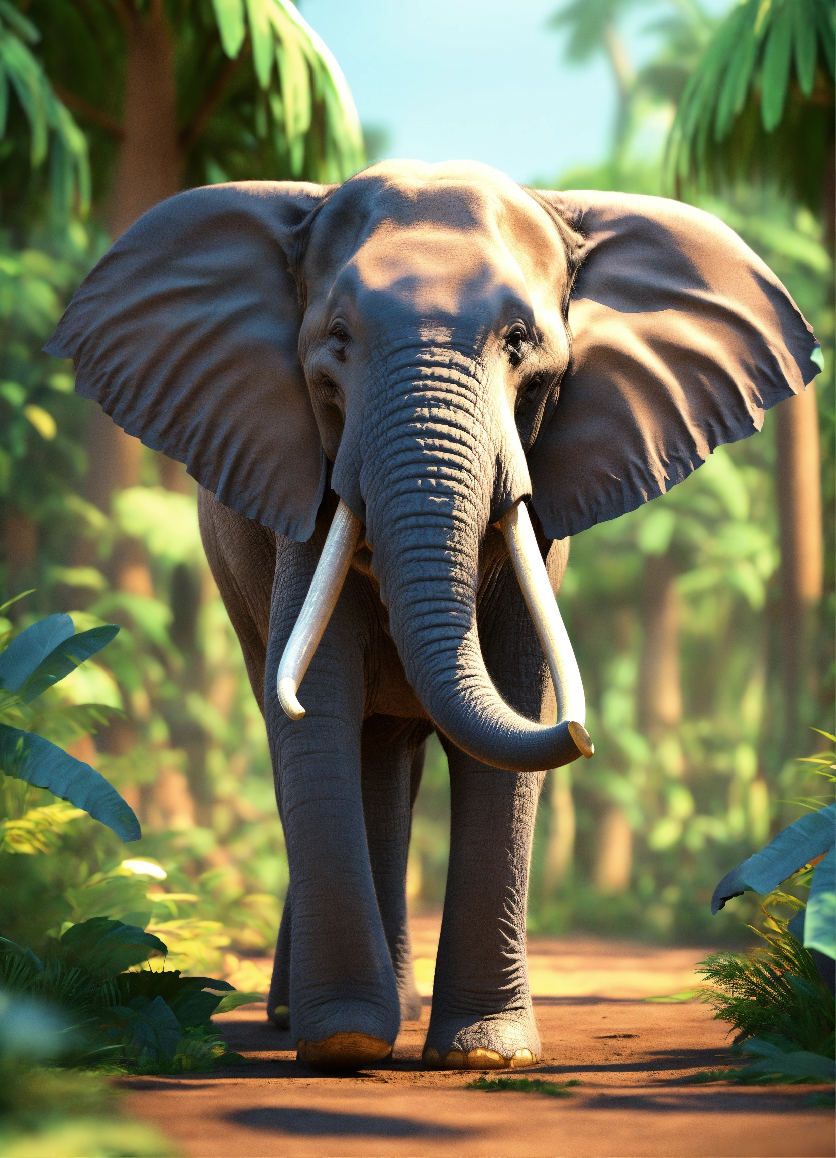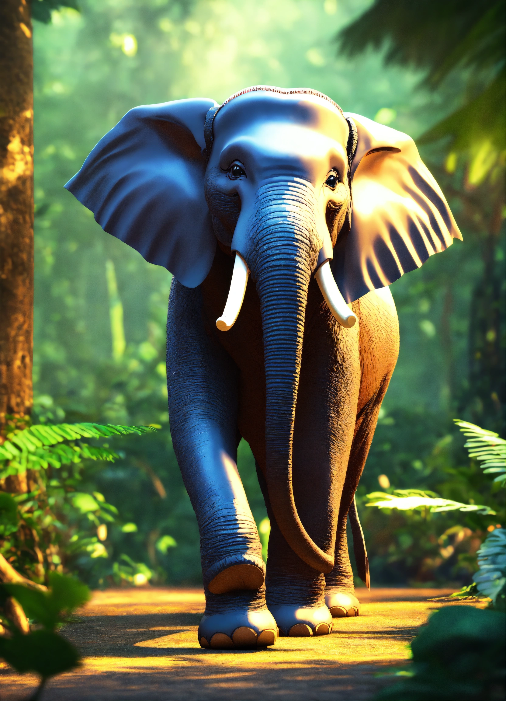 3d style animation cartoon elephant talking move its tusk in jungle