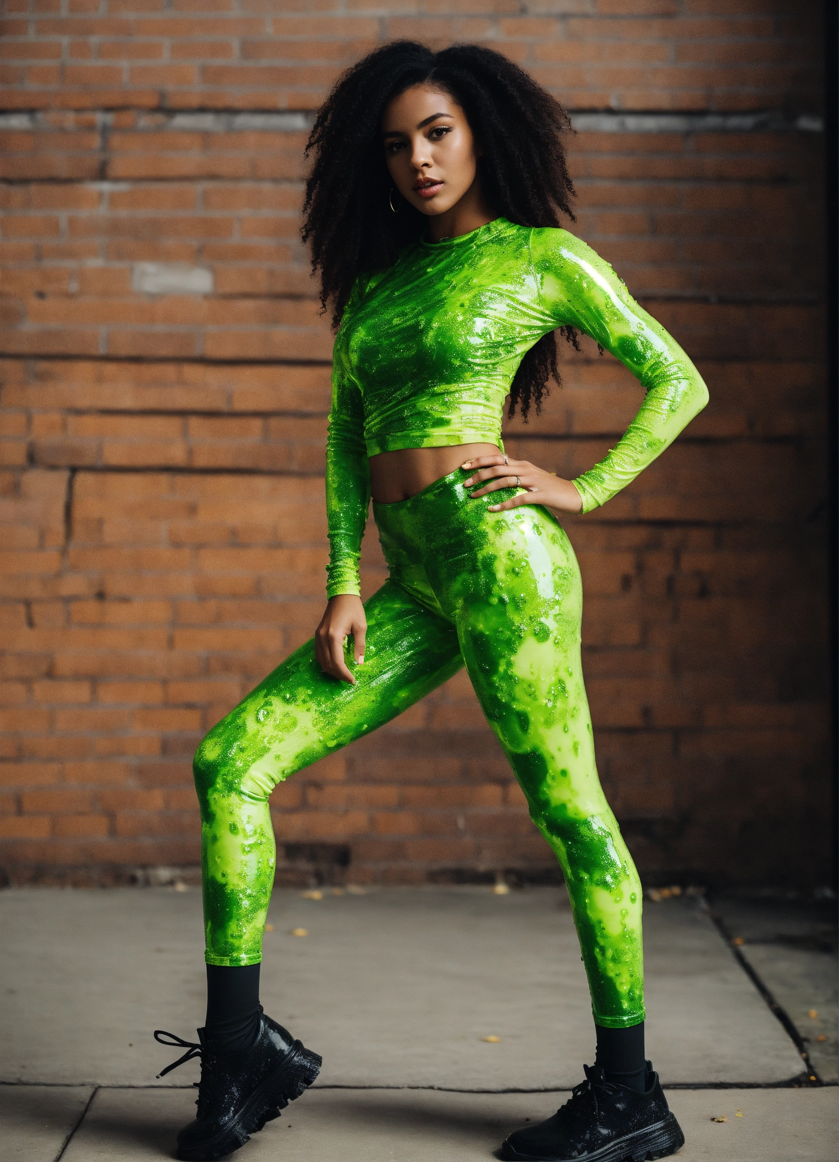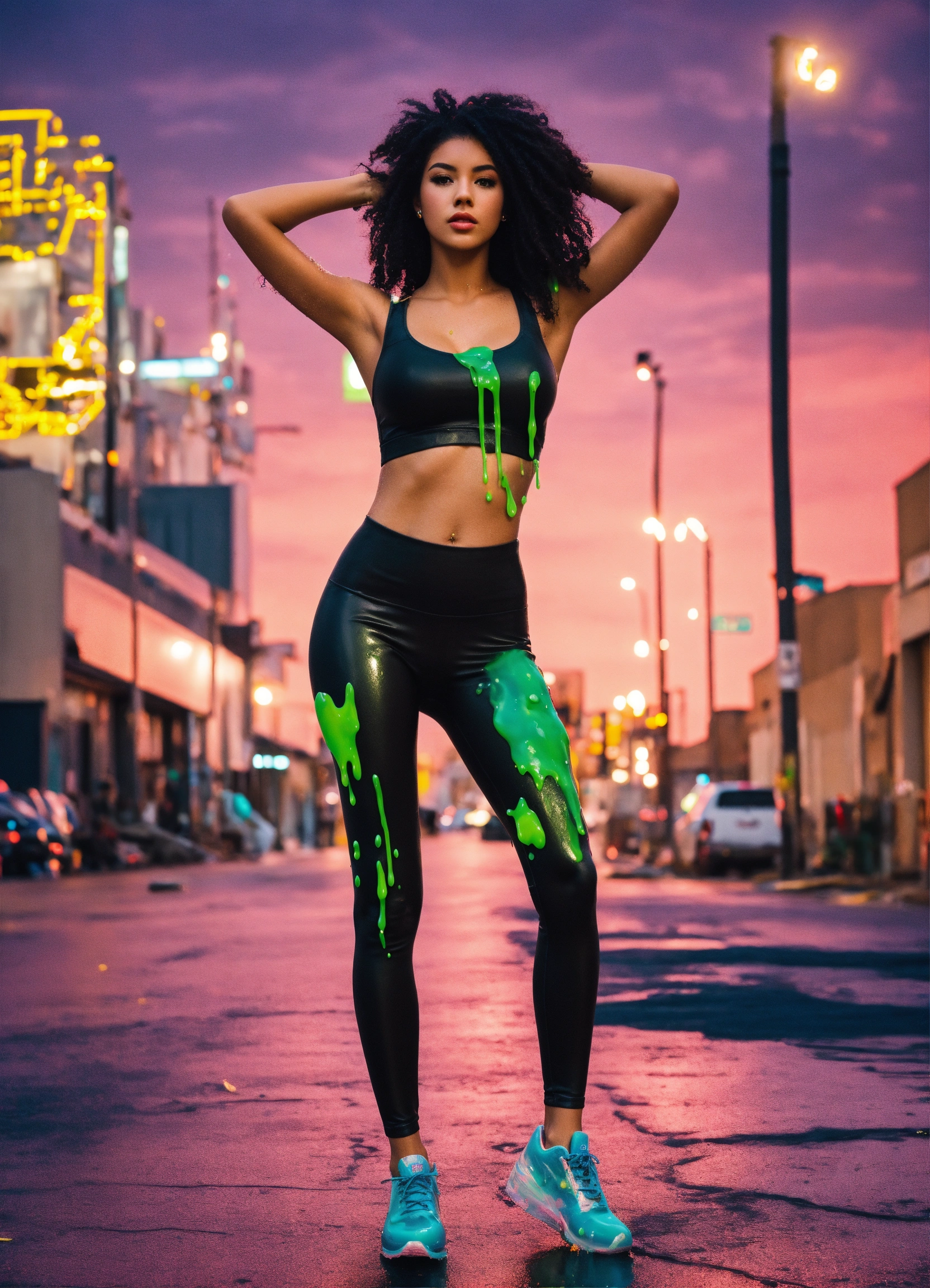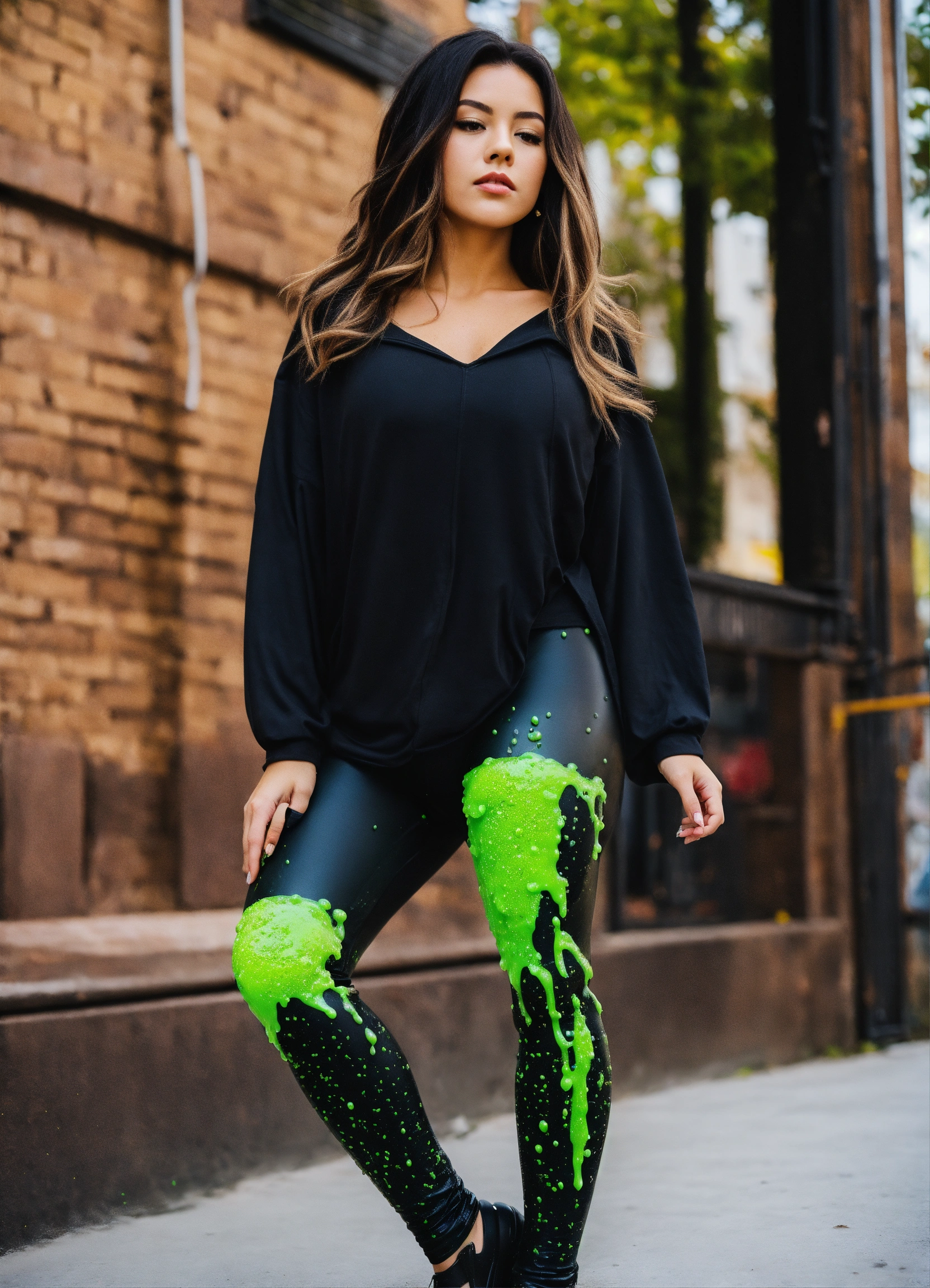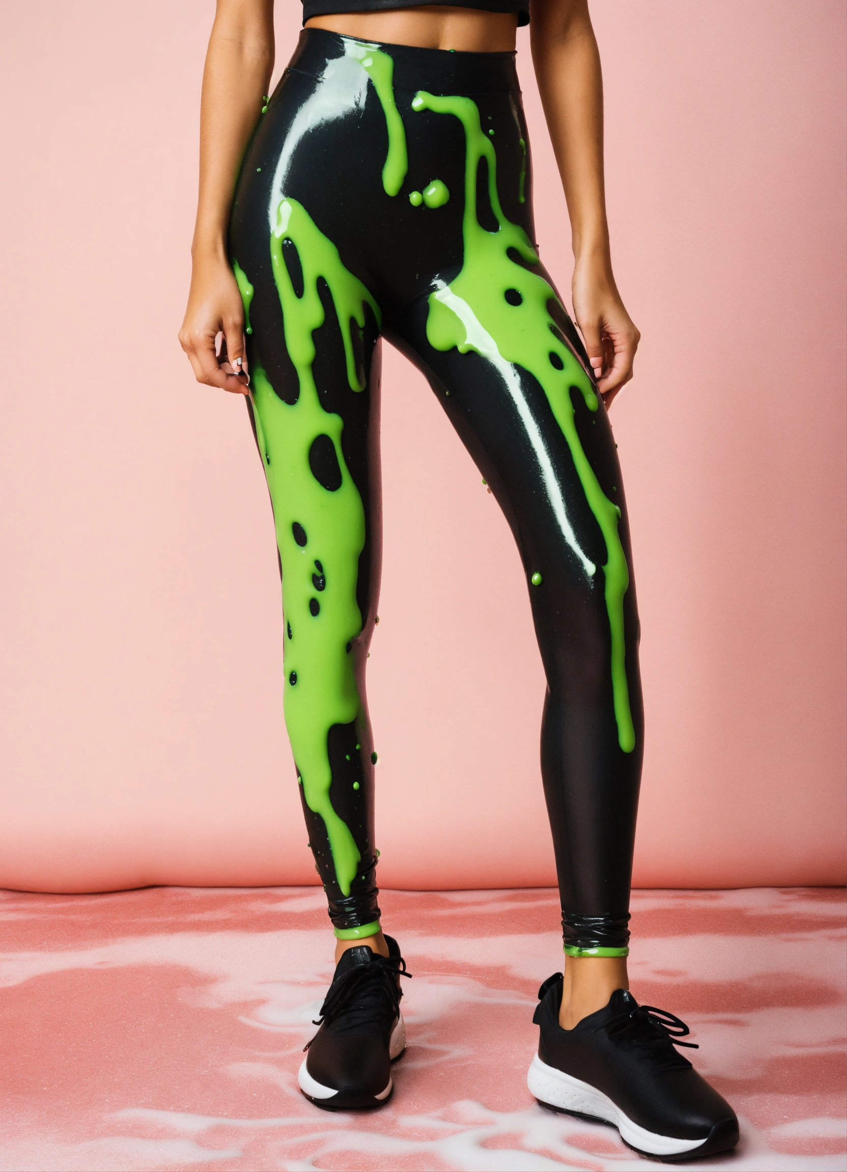 High waisted black leggings covered in slime