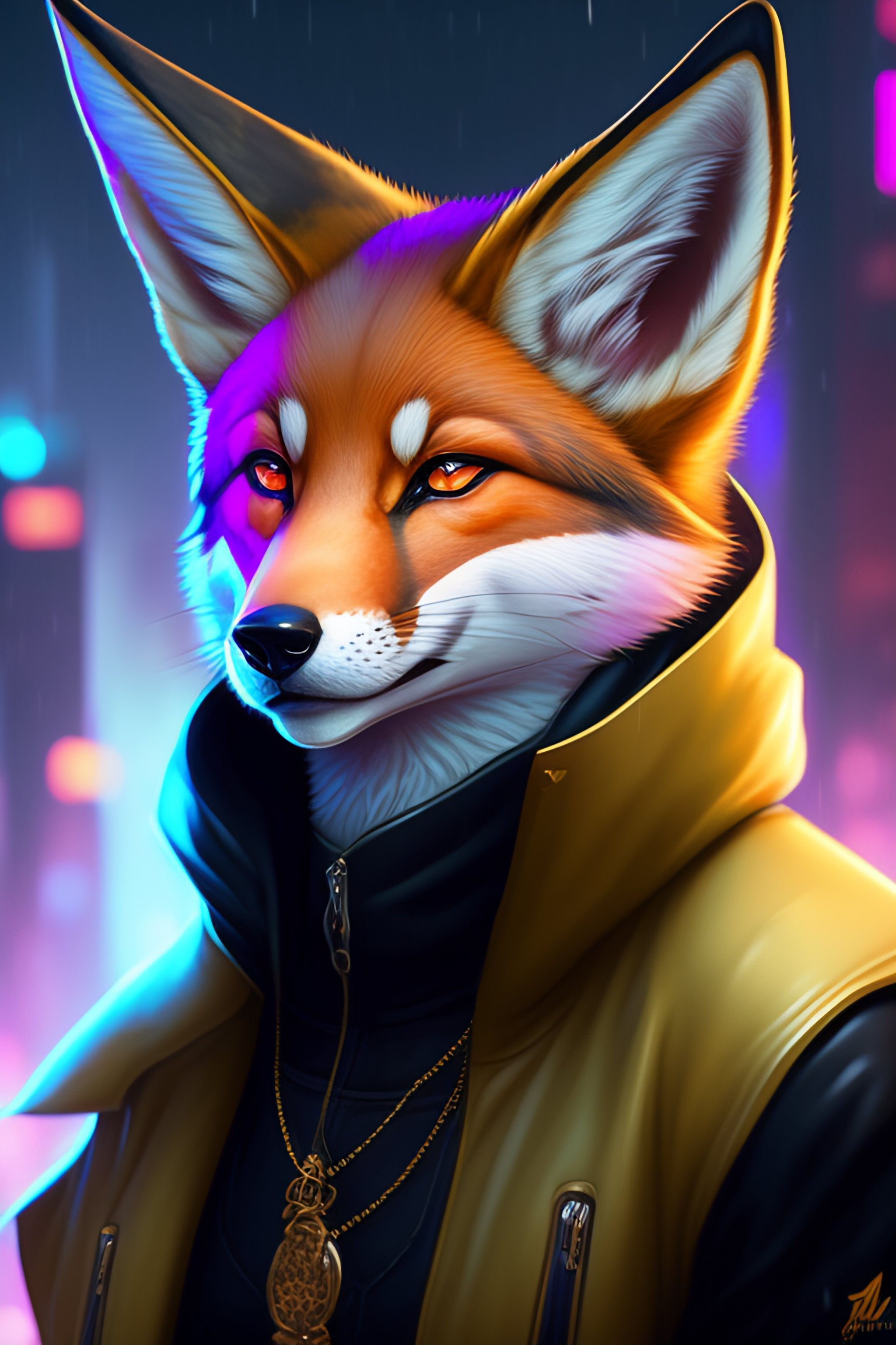 Award winning beautiful portrait commission of a male furry anthro melanated fox fursona with a tail and a cute beautiful attractive detailed furry face wearing stylish cyberpunk clothes in a cyberpunk city at night while it rains. character design by charlie bowater, ross tran, artgerm, and makoto shinkai, detailed, inked, western comic book art