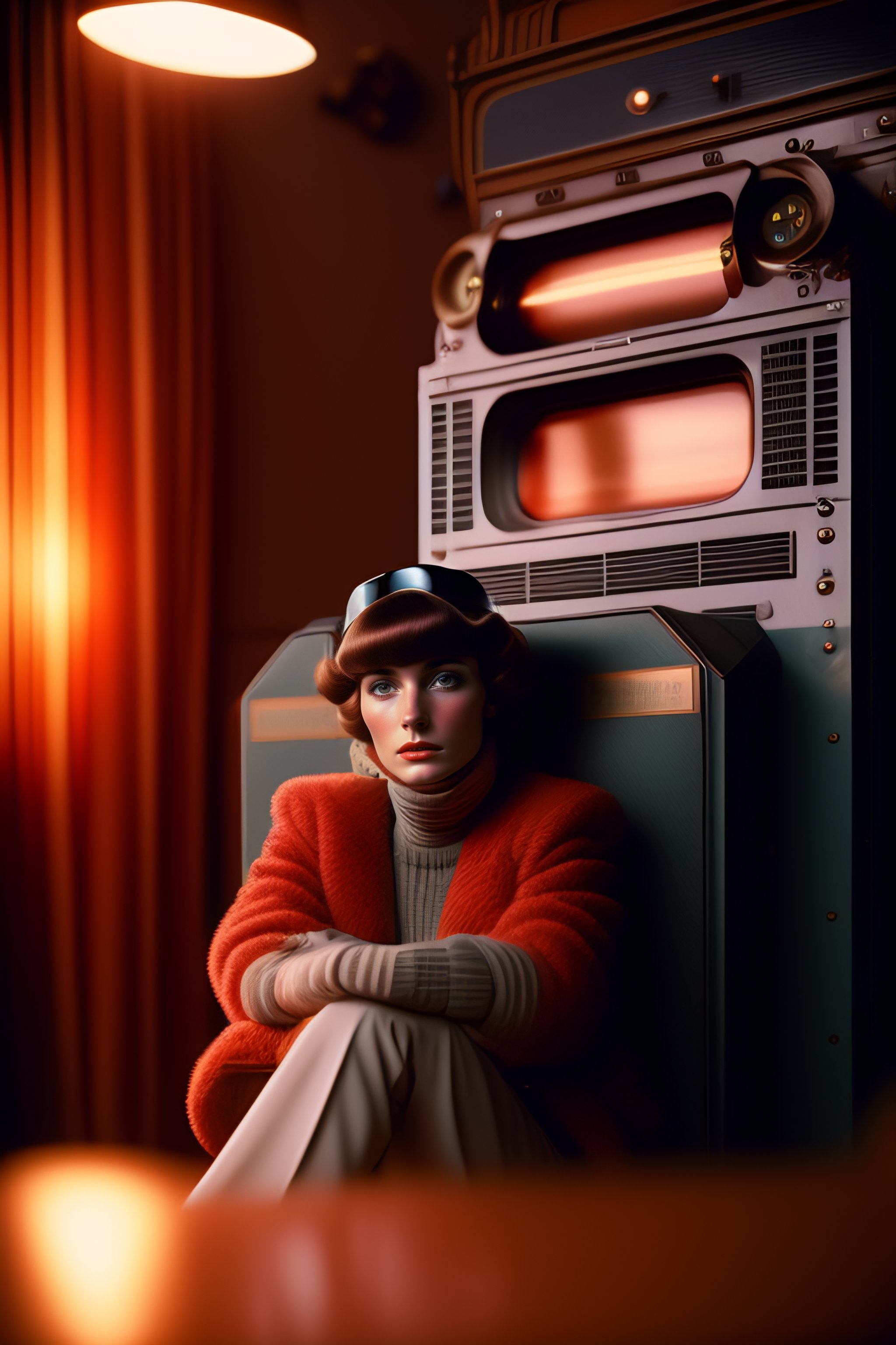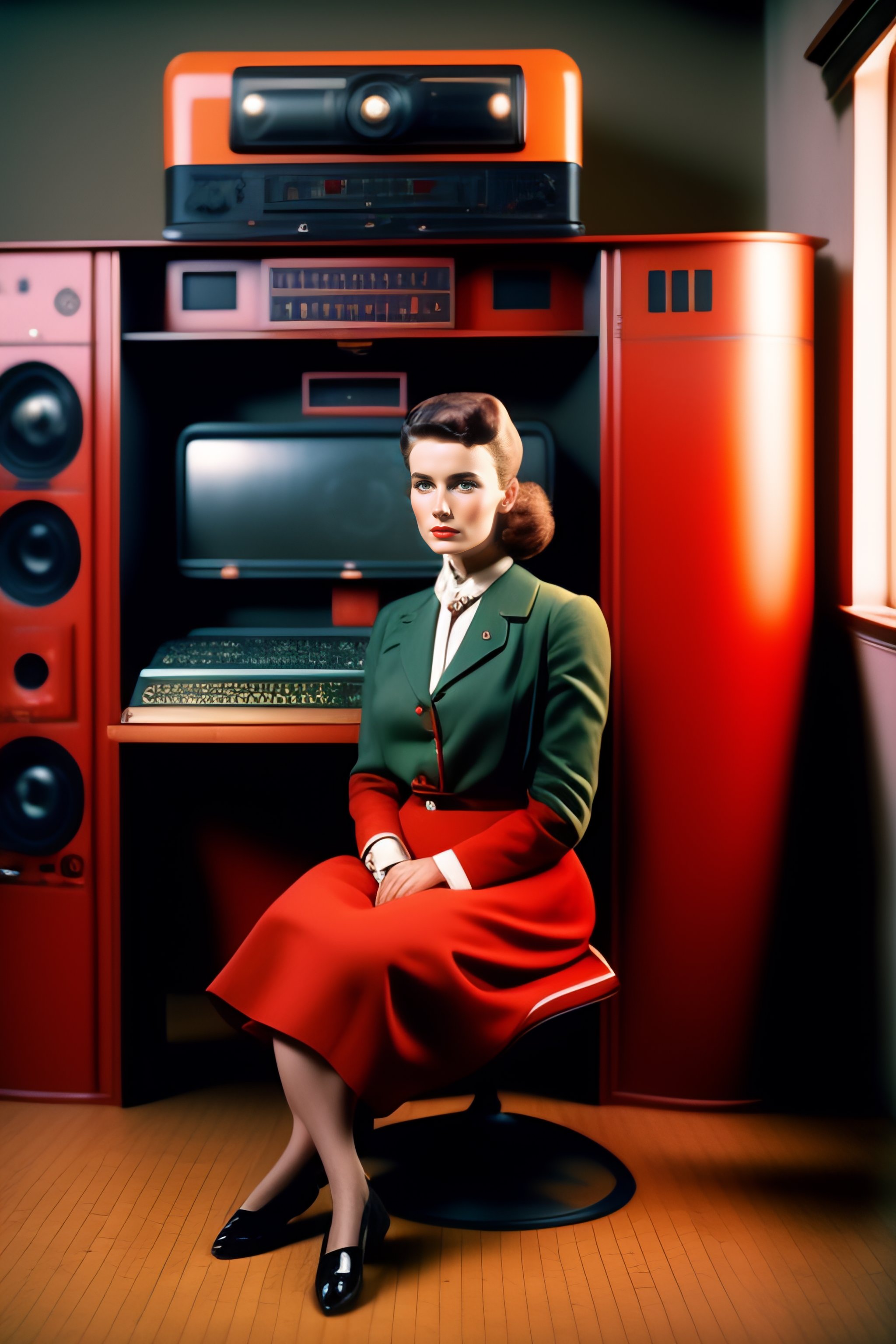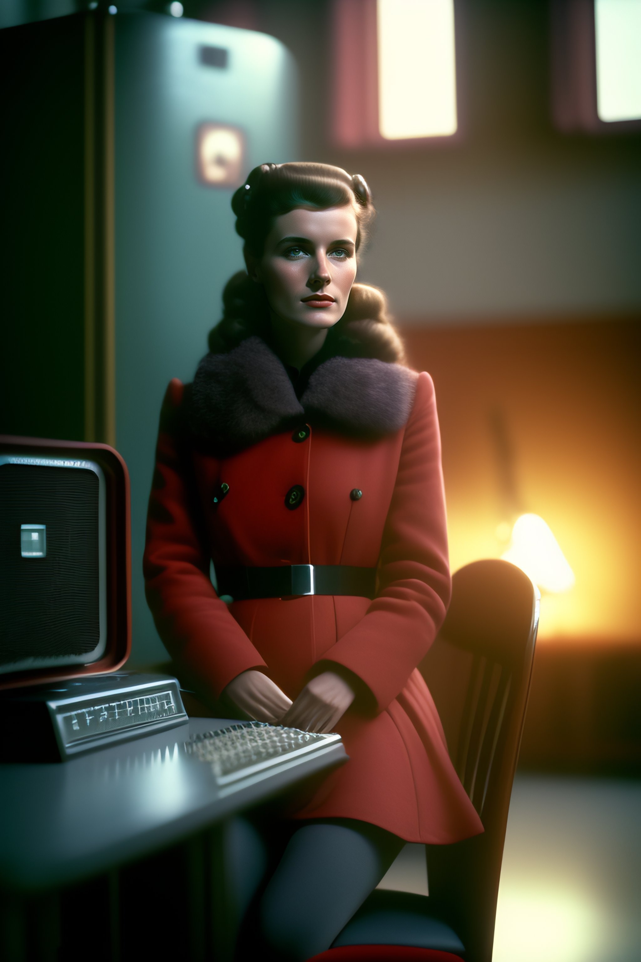 A soviet girl sitting in a chair in front of a soviet computer in the communal apartment, crying, 8k, ultra realistic, details anatomy, cinematic lighting, photographic, eastman kodak color negative film 5251 50t shot on panavision super ps . no arms