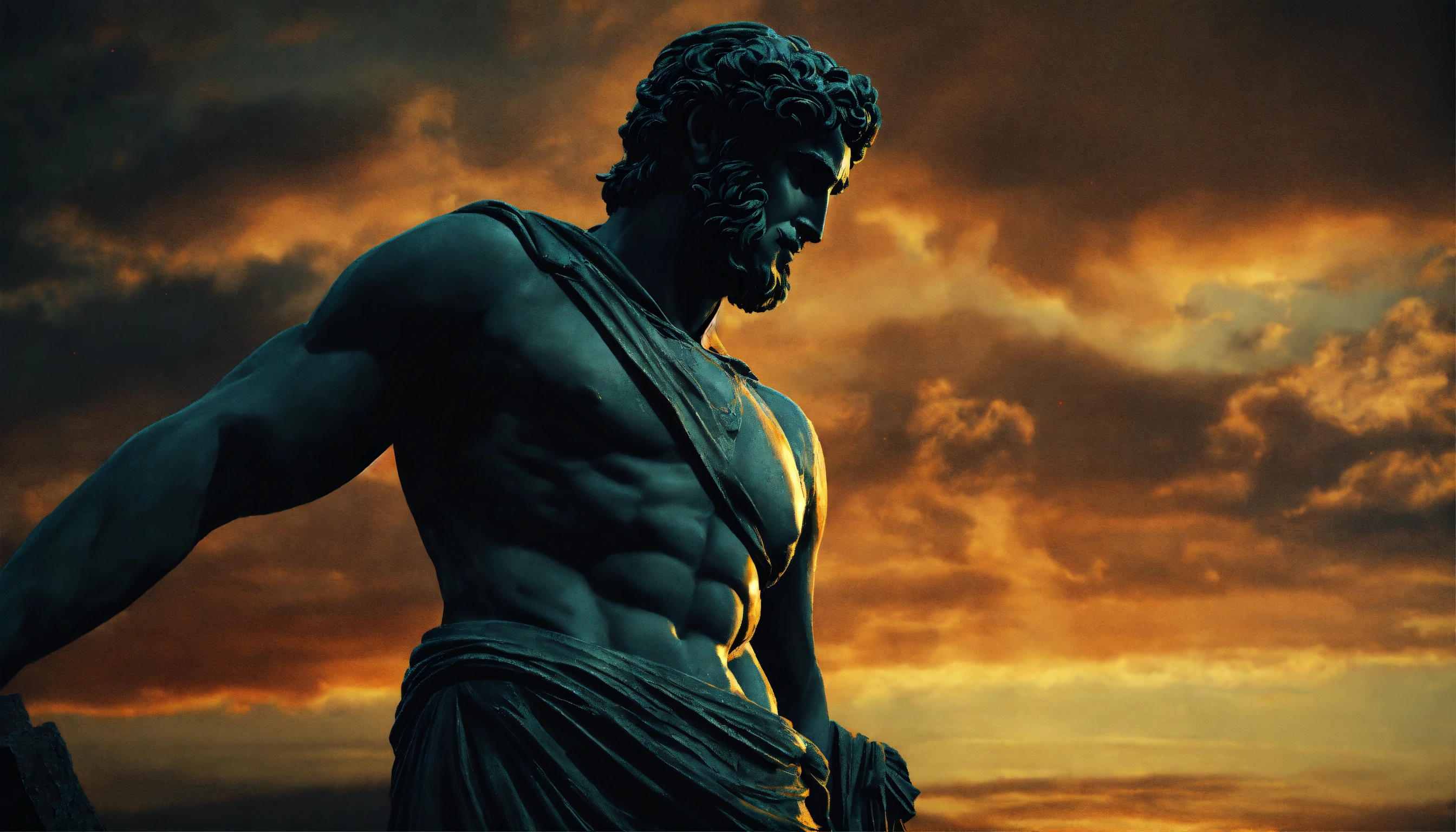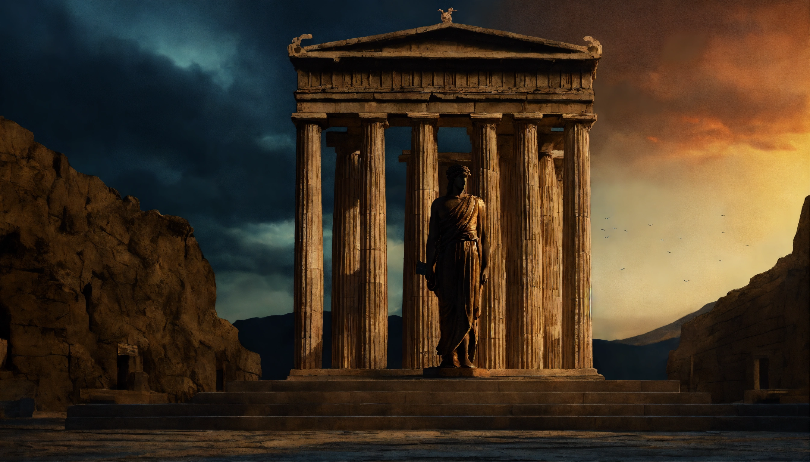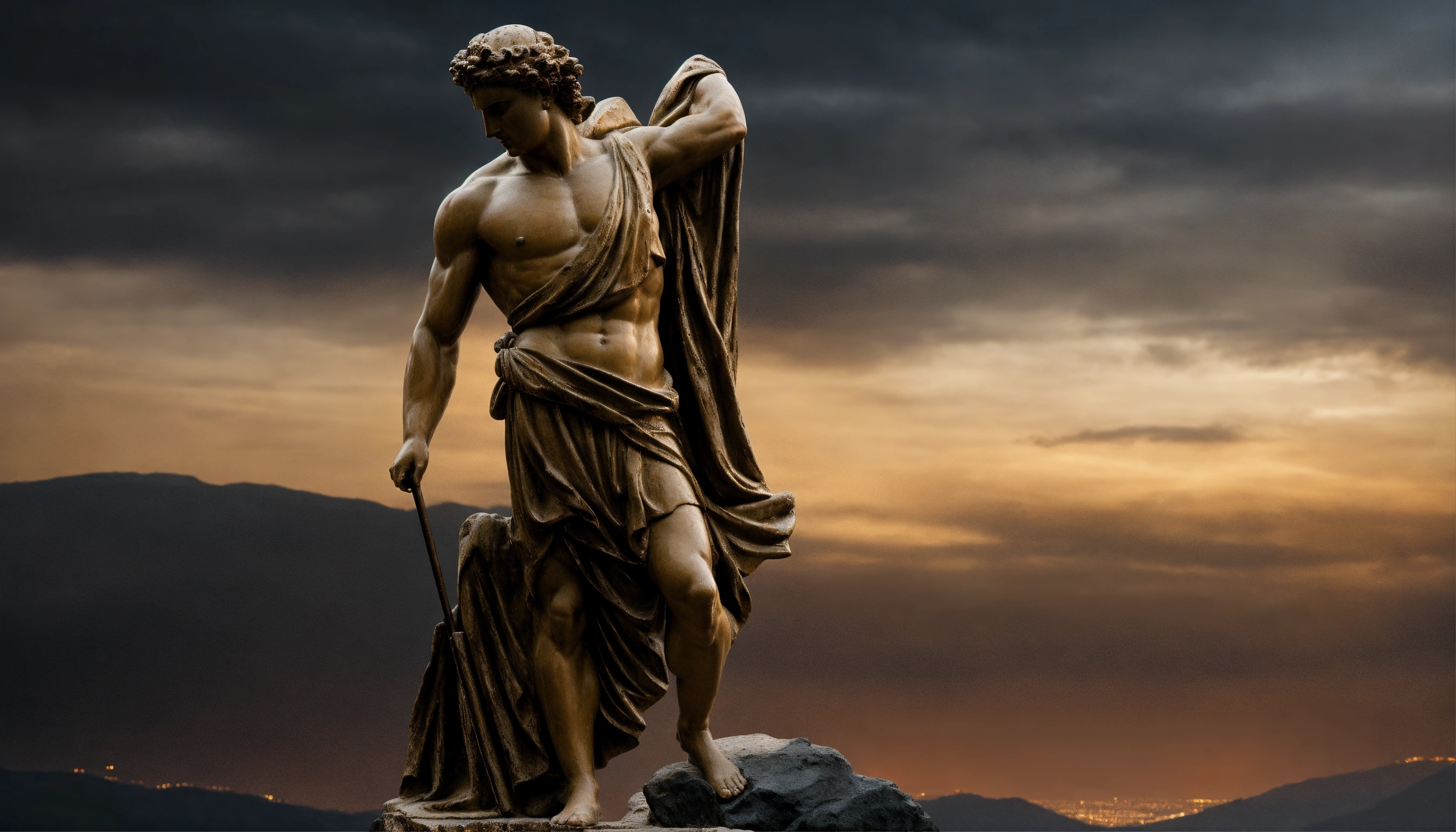 Greek statue, persistent, overcoming fear, ancient greece in the background, dark background, realistic, 169.8k