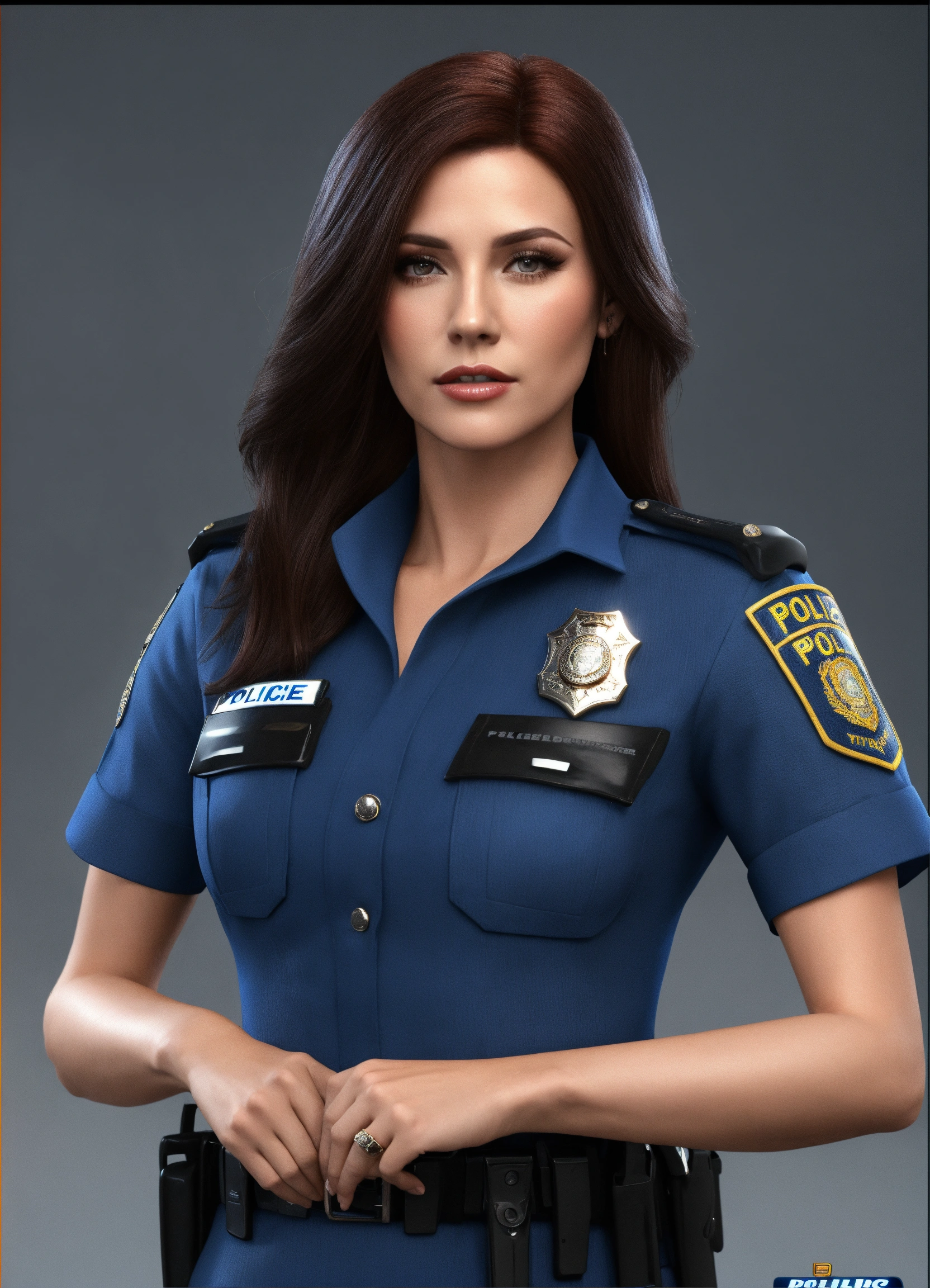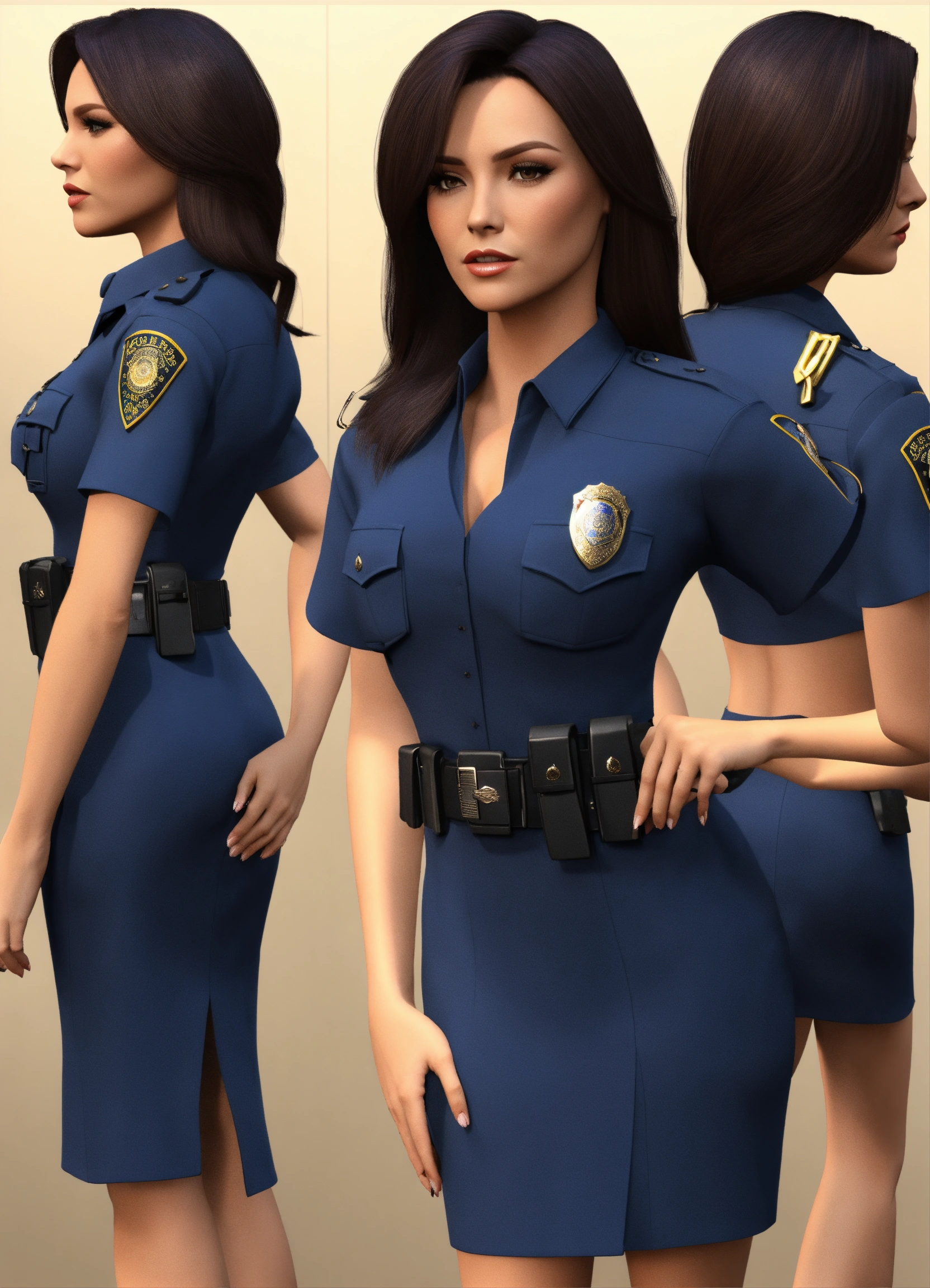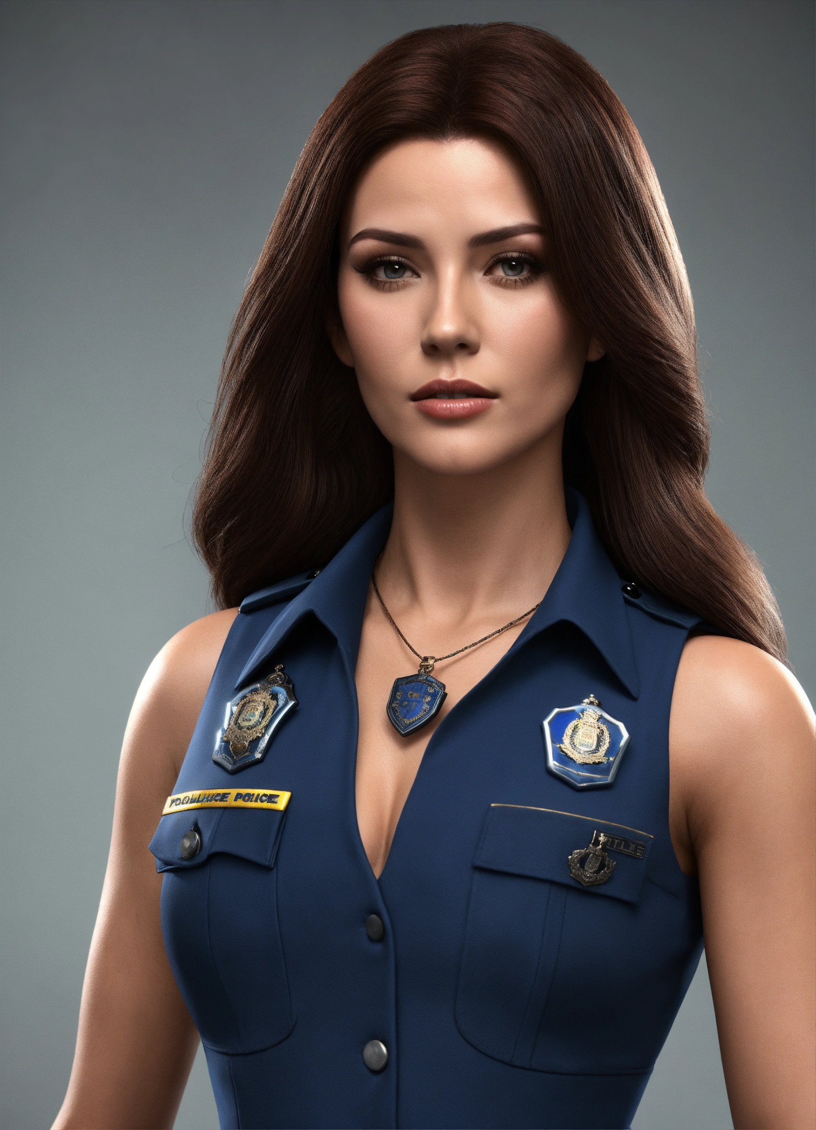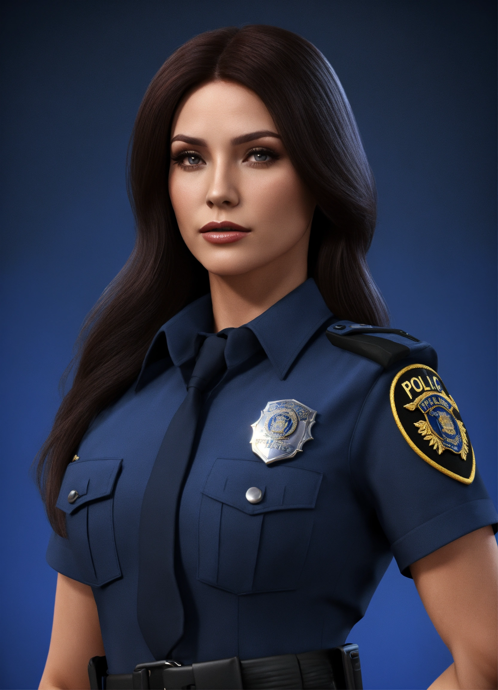 Rosanna fratello long straight dark hair police woman blue dress upper body 3d