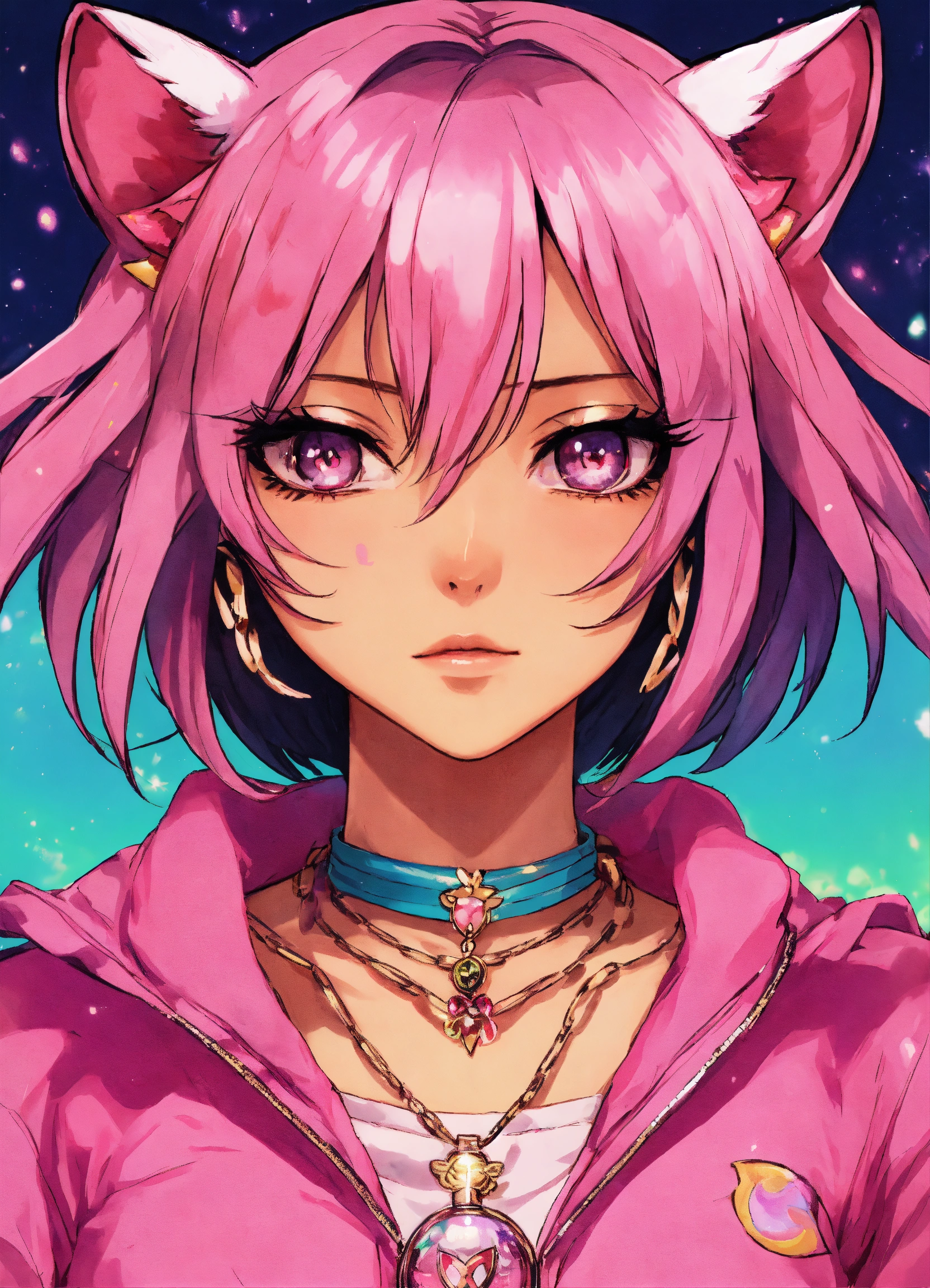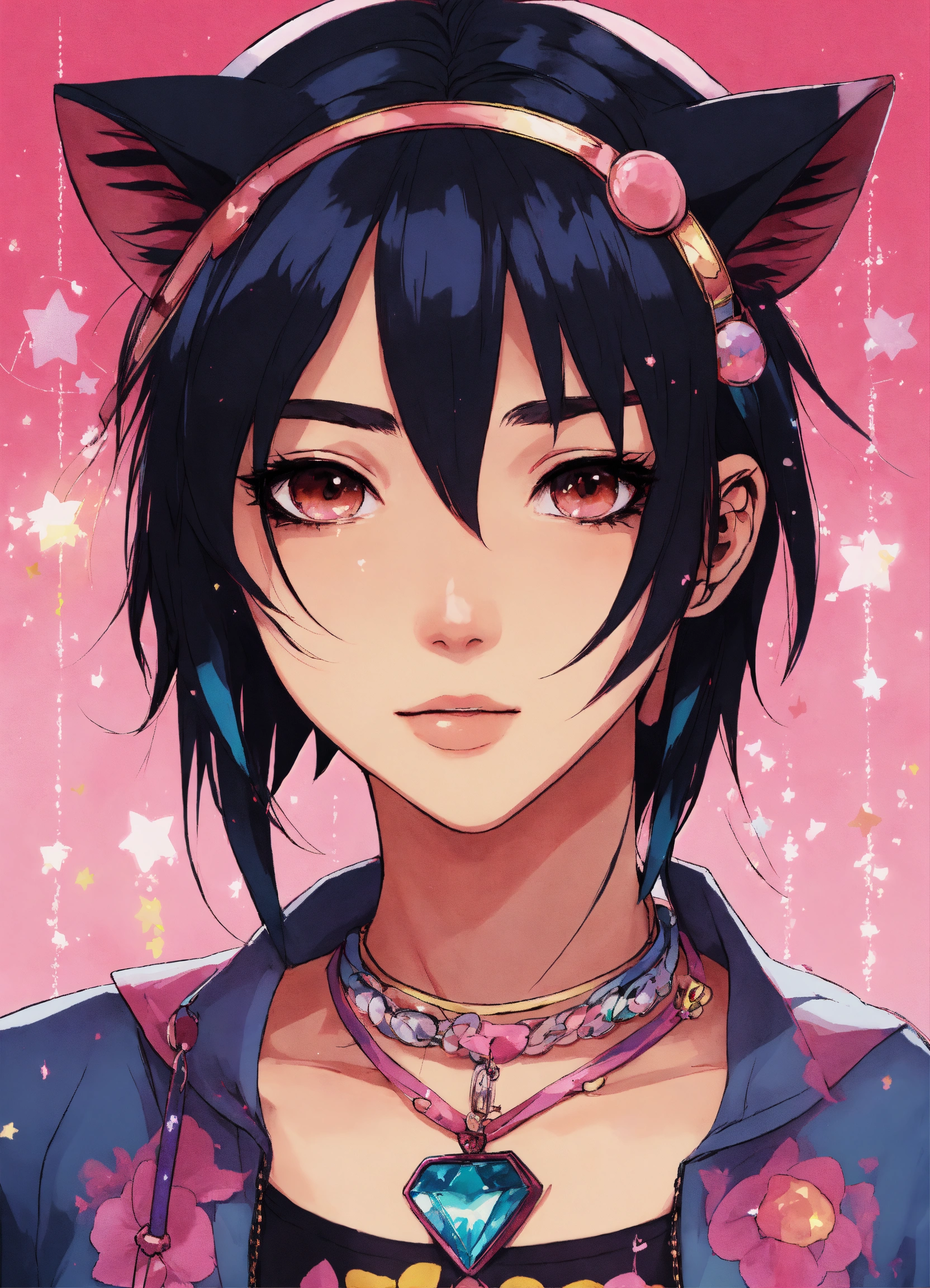 A transgender magical girl with emo cut black hair, streak in front of her eyes, in magical girl tiger mode, with a necklace in the color of the transgender flag on her neck, in the style of the manga "tokyo mew mew"