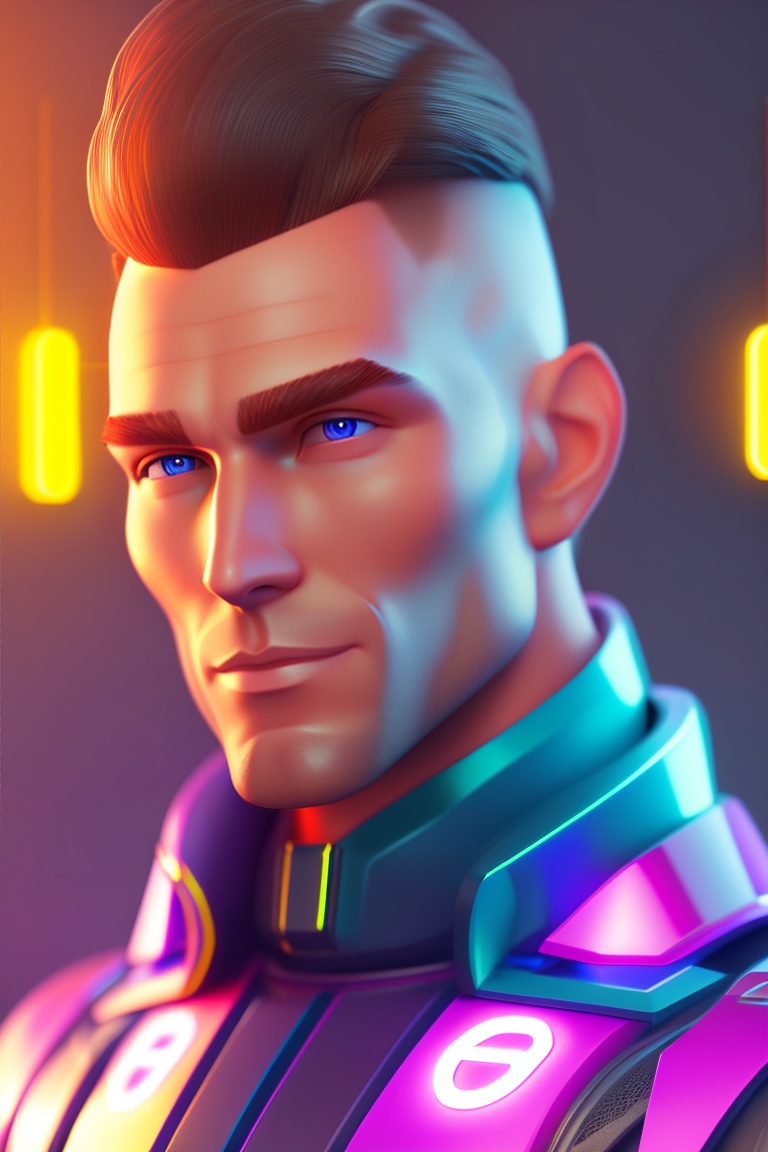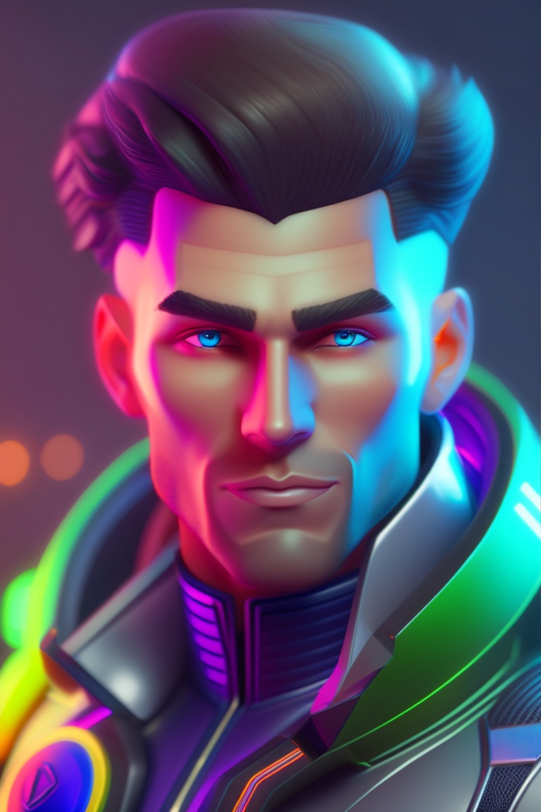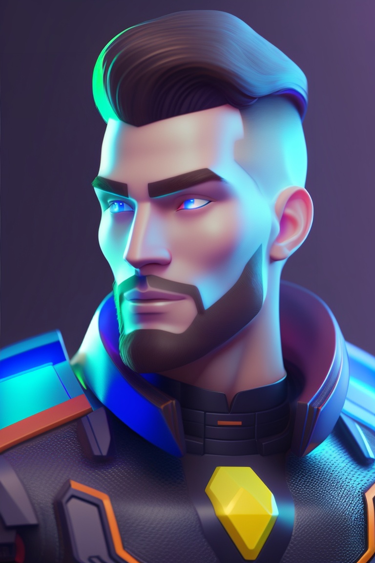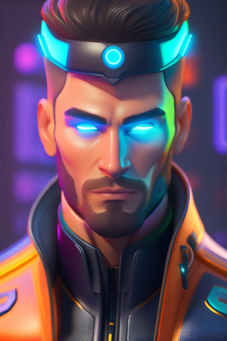 Modern 3d character for a tech company called ‘tech titans’, coding solutions agency, ukrainian cossack, neon-inspired eyes, men