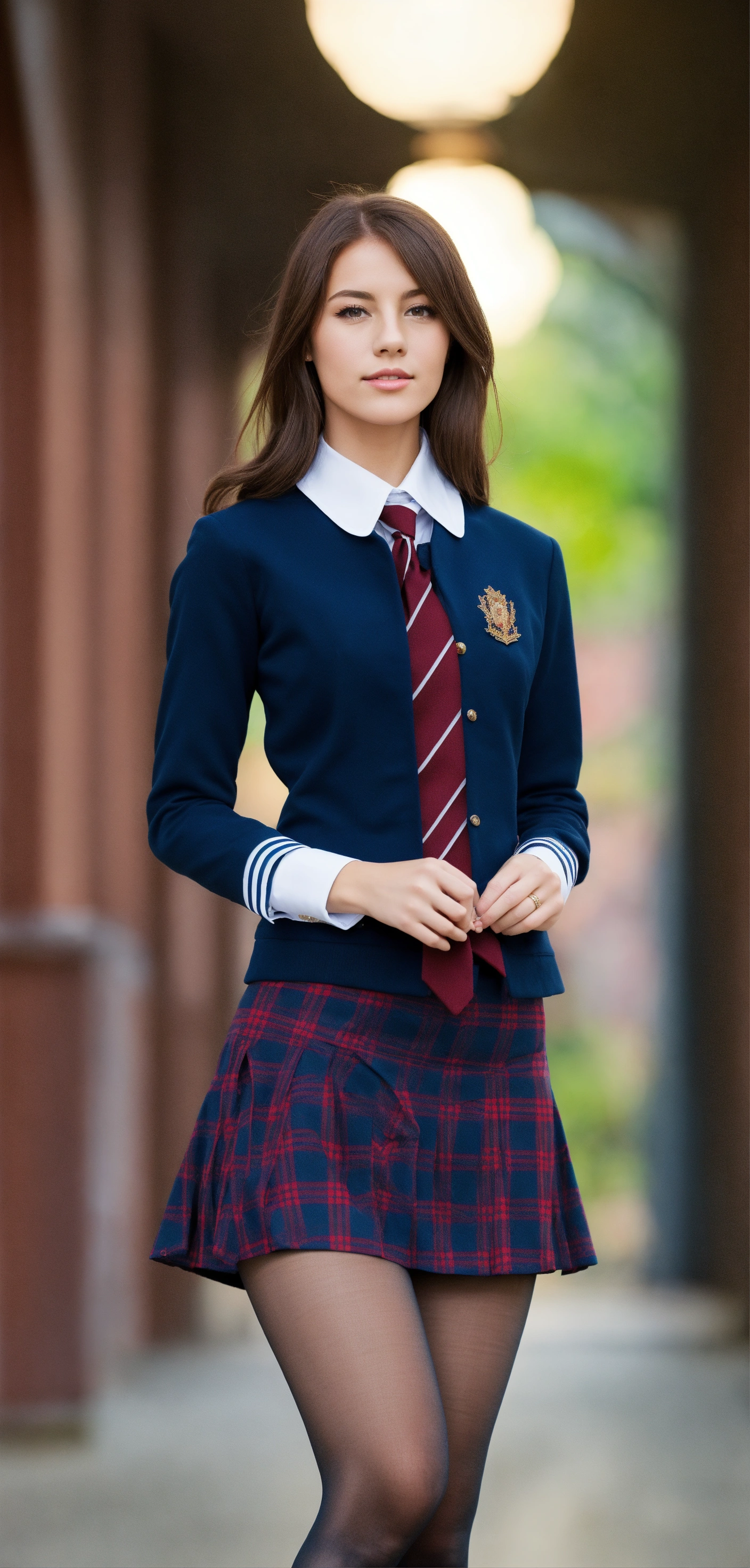 Adult woman, european attractive schoolgirls in uniform, private school uniform, jacket, tight shirt, skirt, tights, feminine, school scenes, aura of beauty, relaxation
