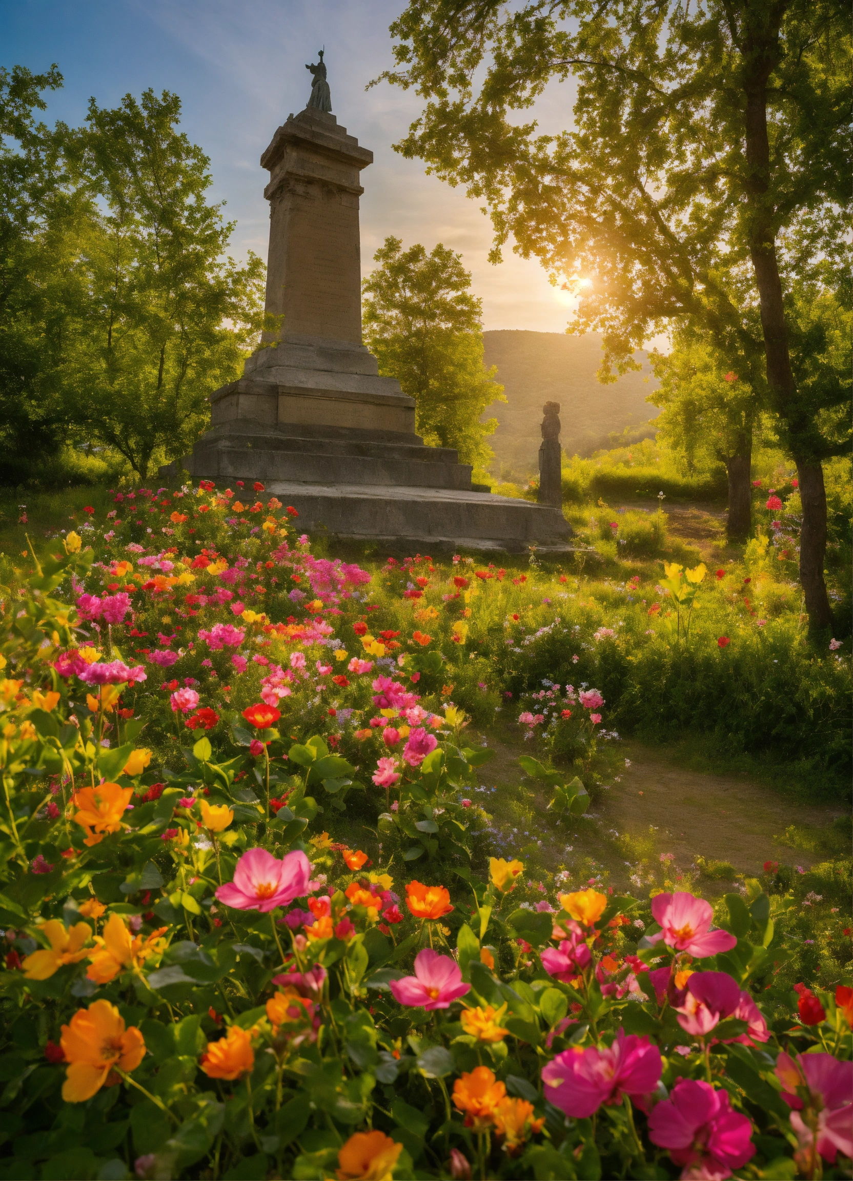 Au cœur d'une vallée ensoleillée, un maçon travaille avec détermination, posant pierre après pierre pour construire un monument. chaque pierre est unique, colorée et gravée d'une émotion ou d'un rêve. autour du monument, des fleurs sauvages fleurissent et des papillons dansent, symbolisant la beauté de la persévérance et de l'auto-expression.