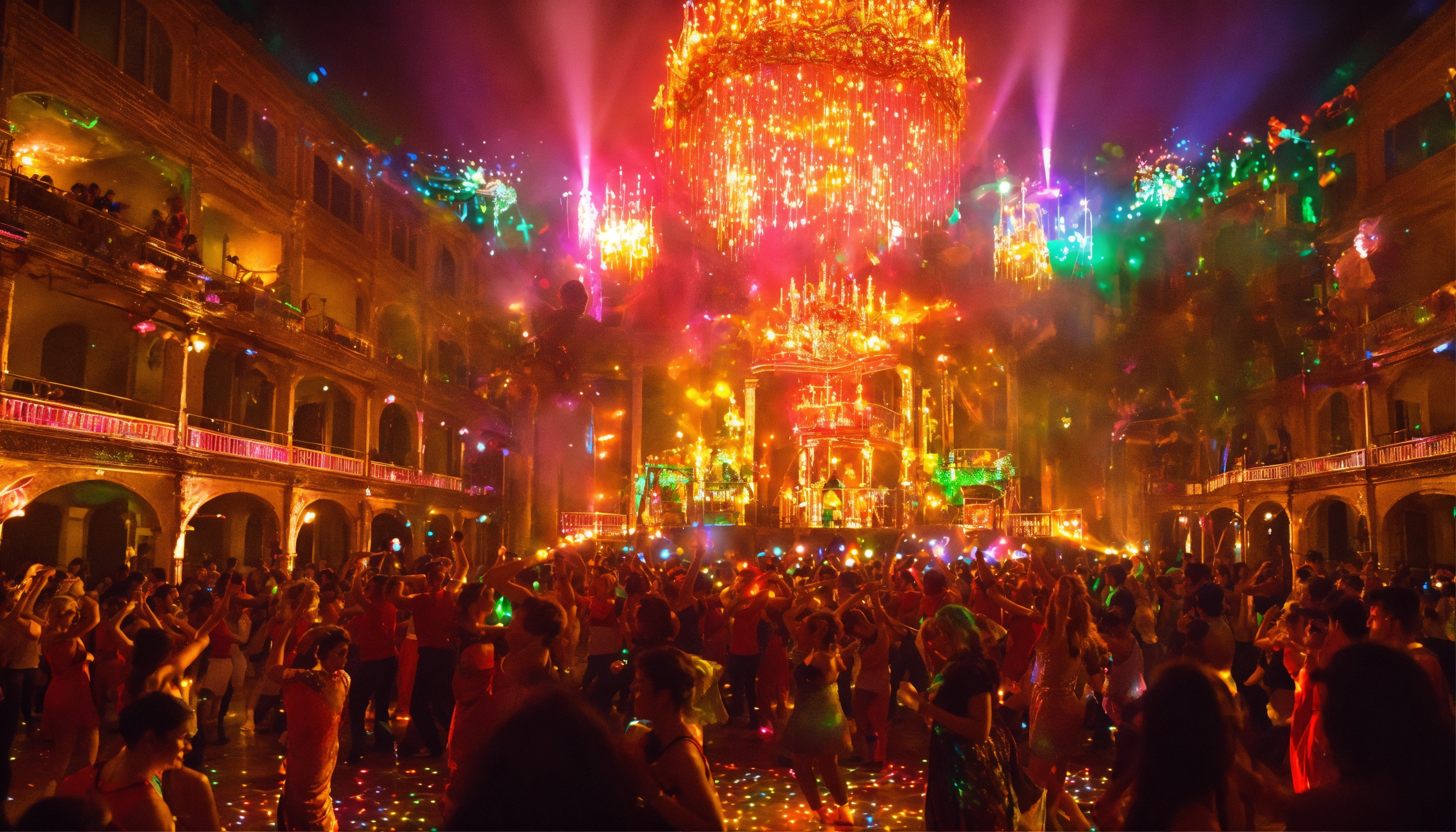 Crea una imagen de rijashago en el epicentro de la fiesta