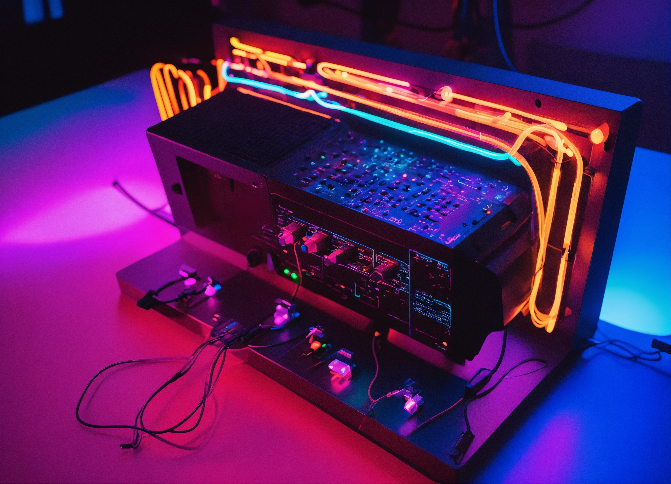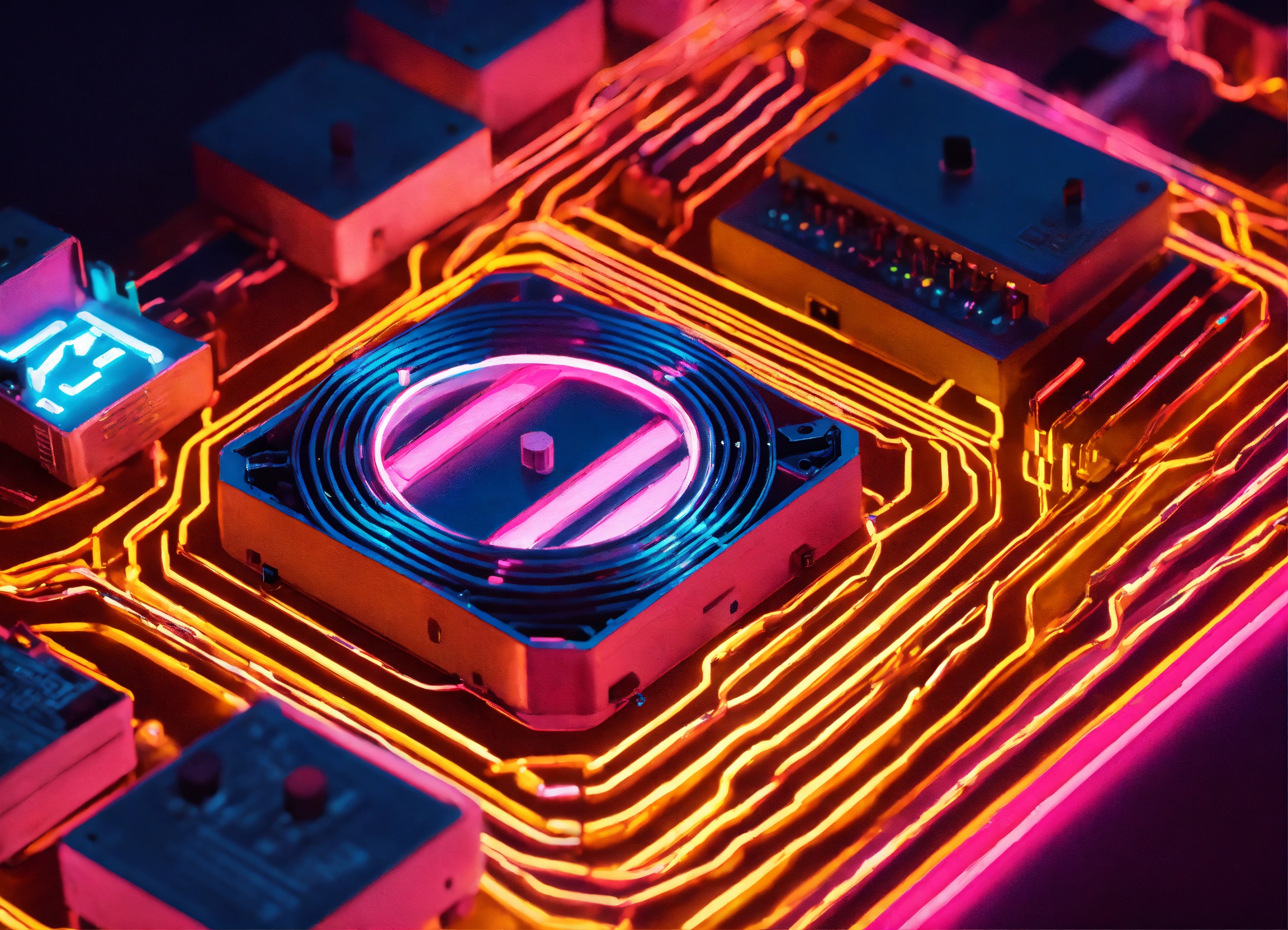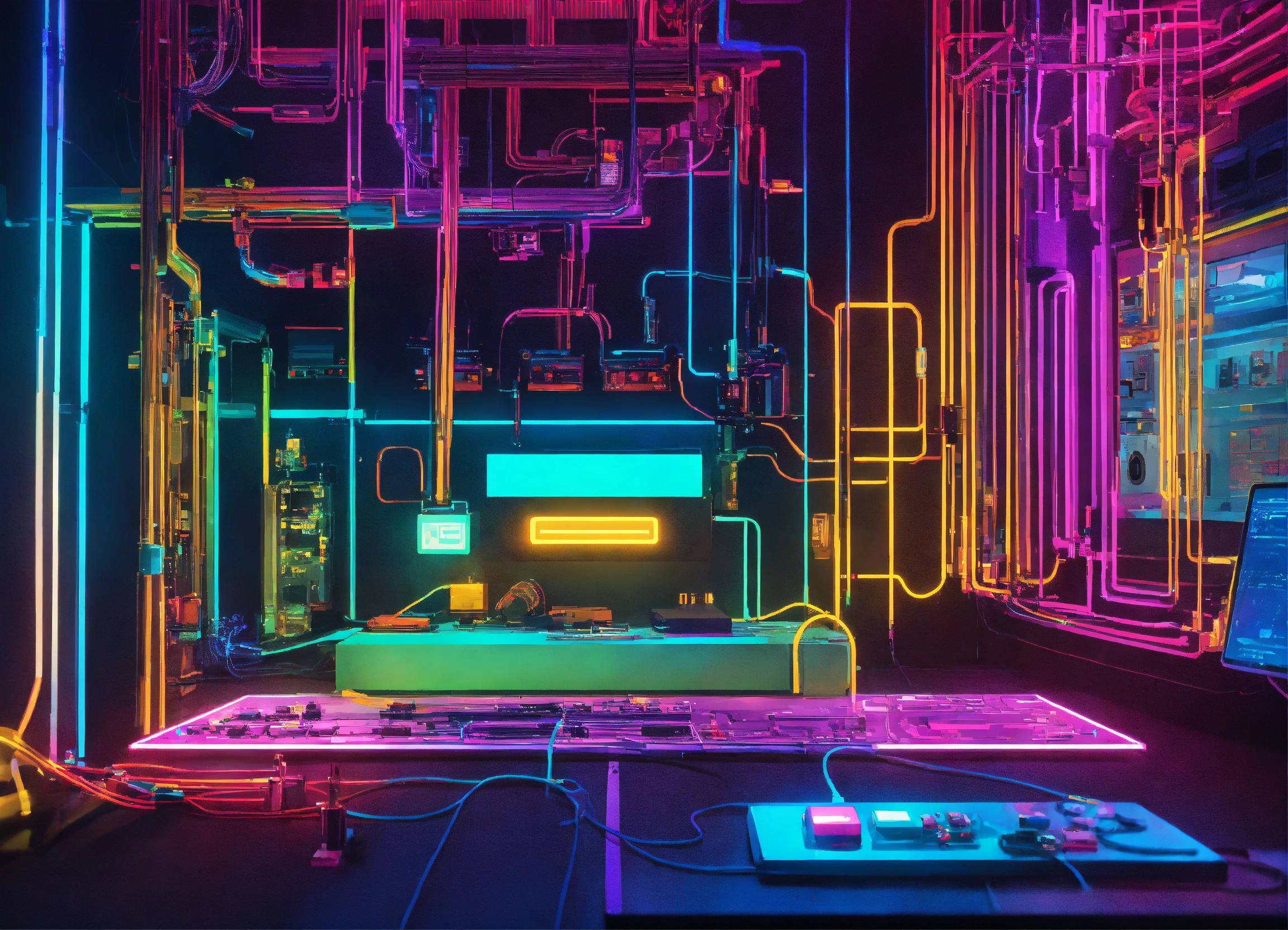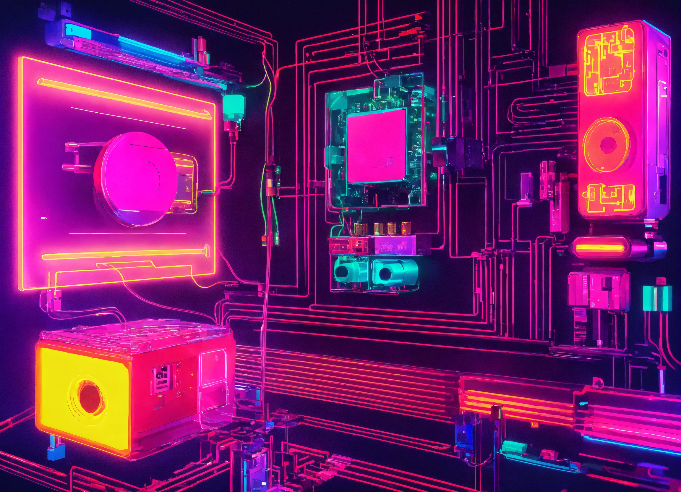 representing the interconnectedness of various systems in a neon vibe