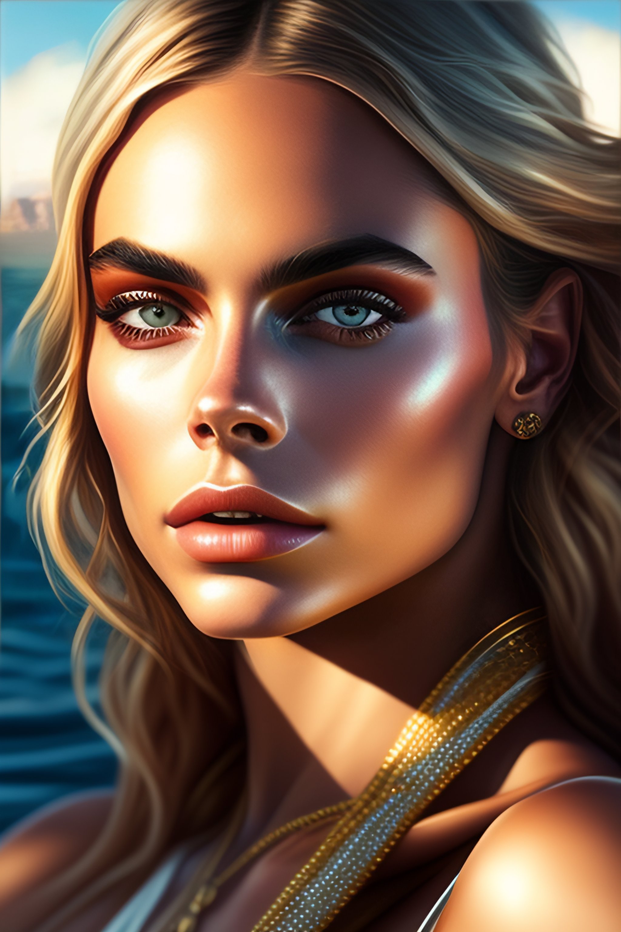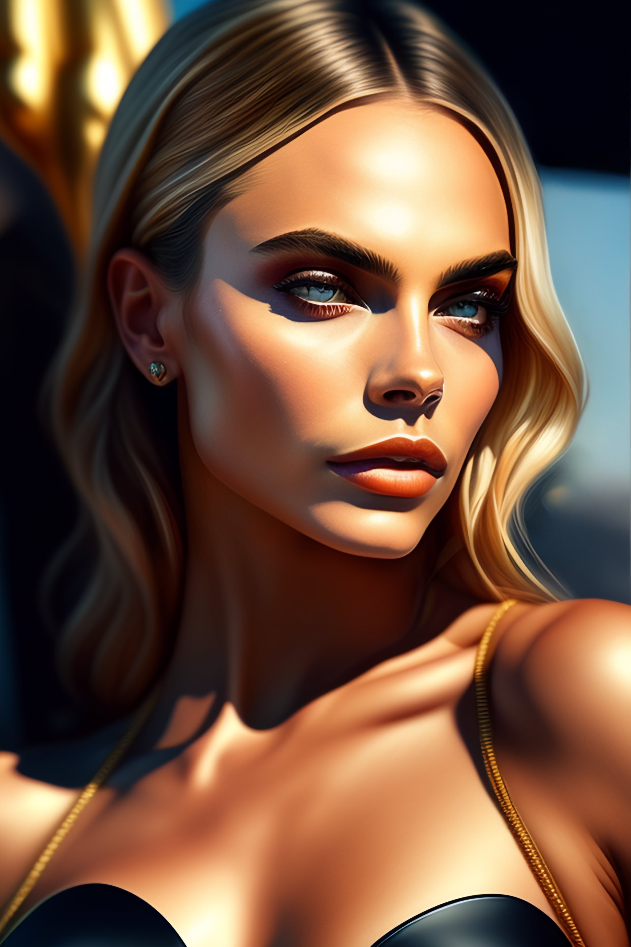 Sexy painting of cara delevigne, bikini, ultra realistic, sharp details, subsurface scattering, intricate details, warm lighting, beautiful features, highly detailed, photorealistic, octane render, 8 k, unreal engine, art by artgerm and greg rutkowski and alphonse mucha