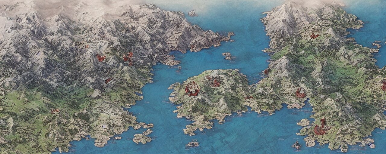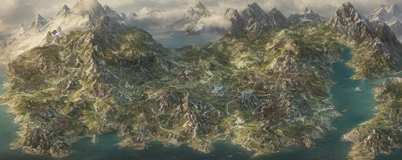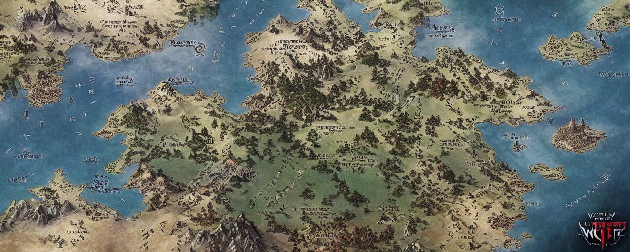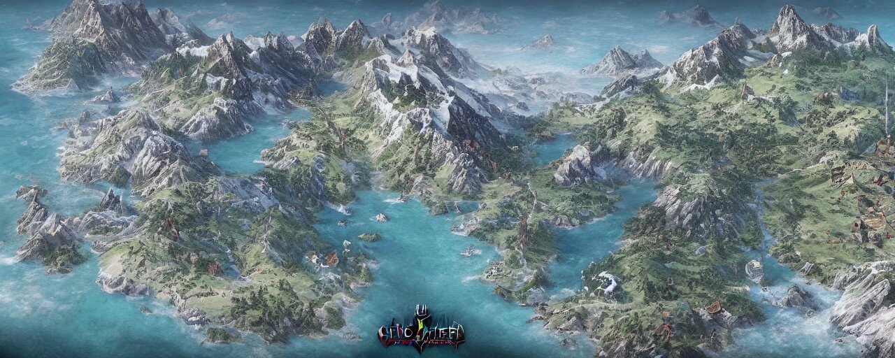Map of middle - earth, witcher 3, velen, novigrad, detailed, art by moebius and thomas kinkade and greg rutkowski