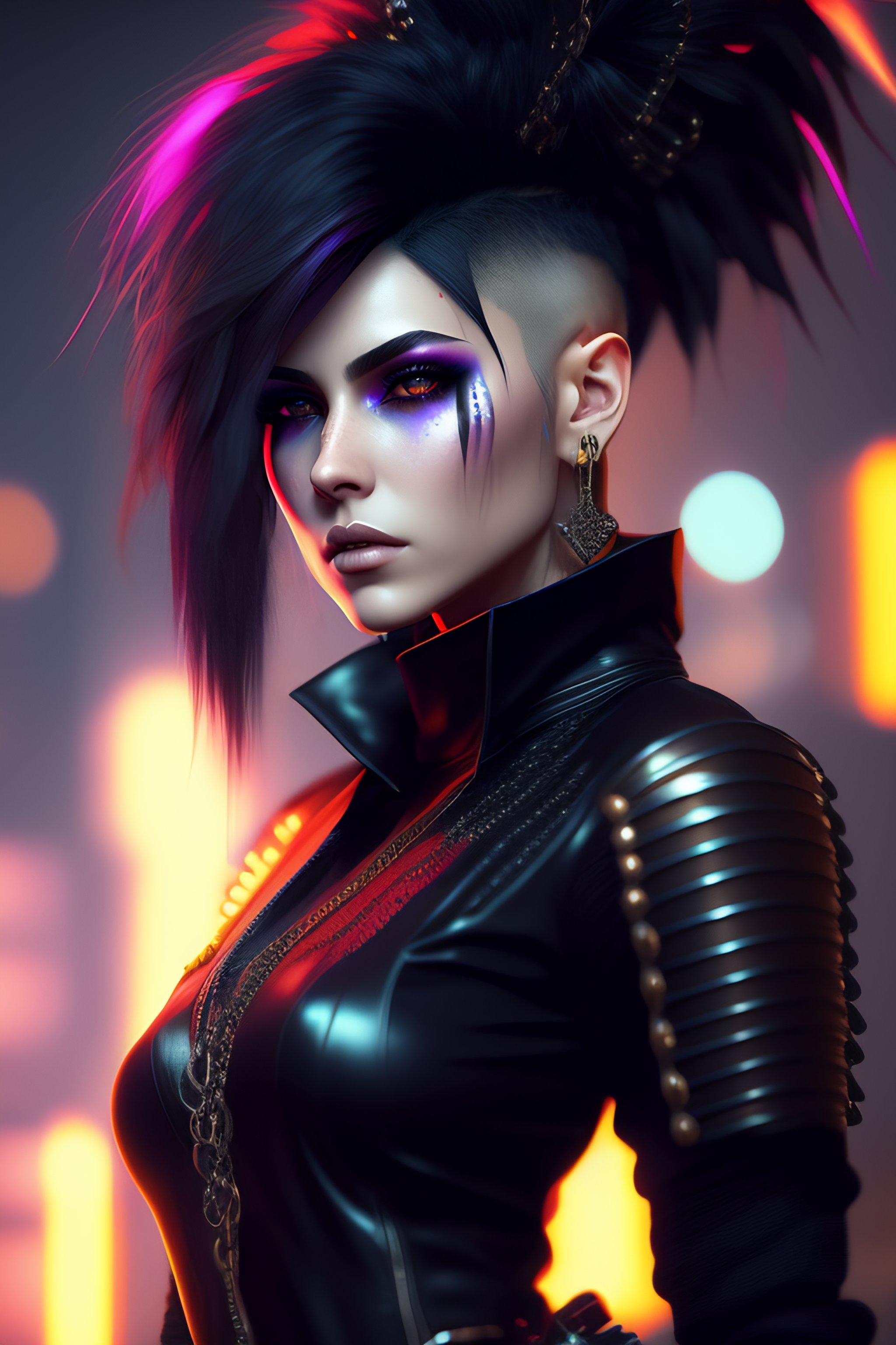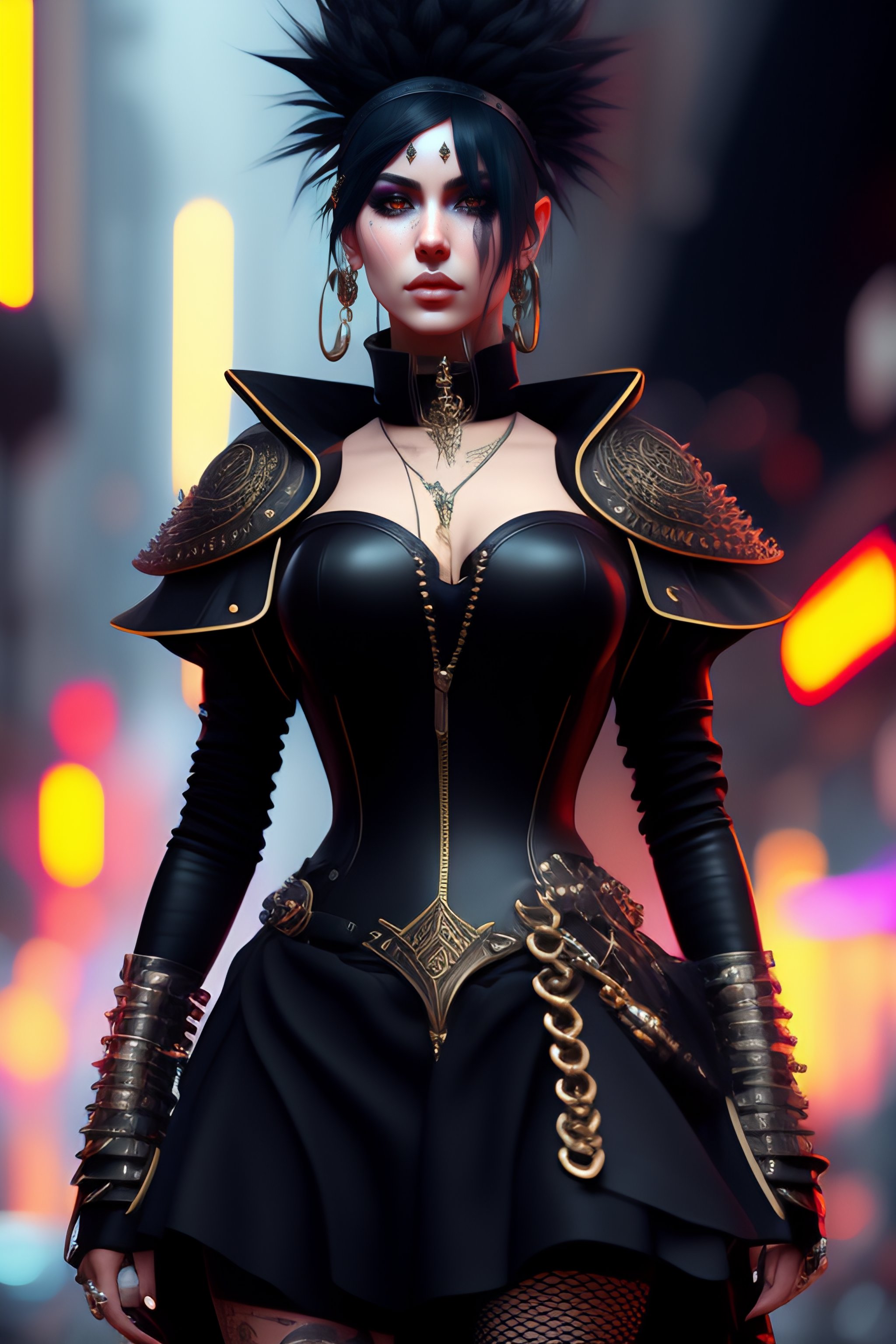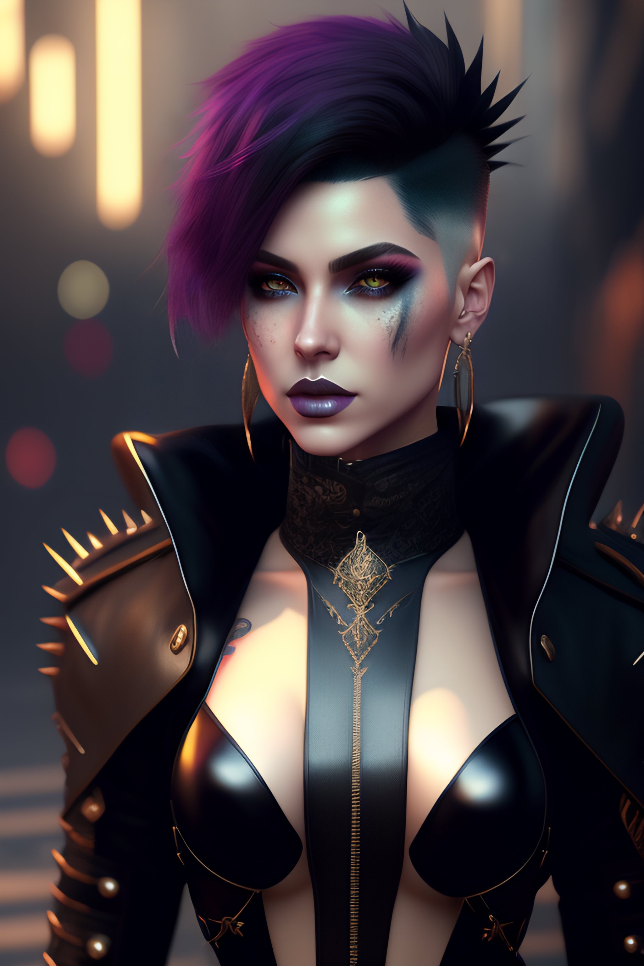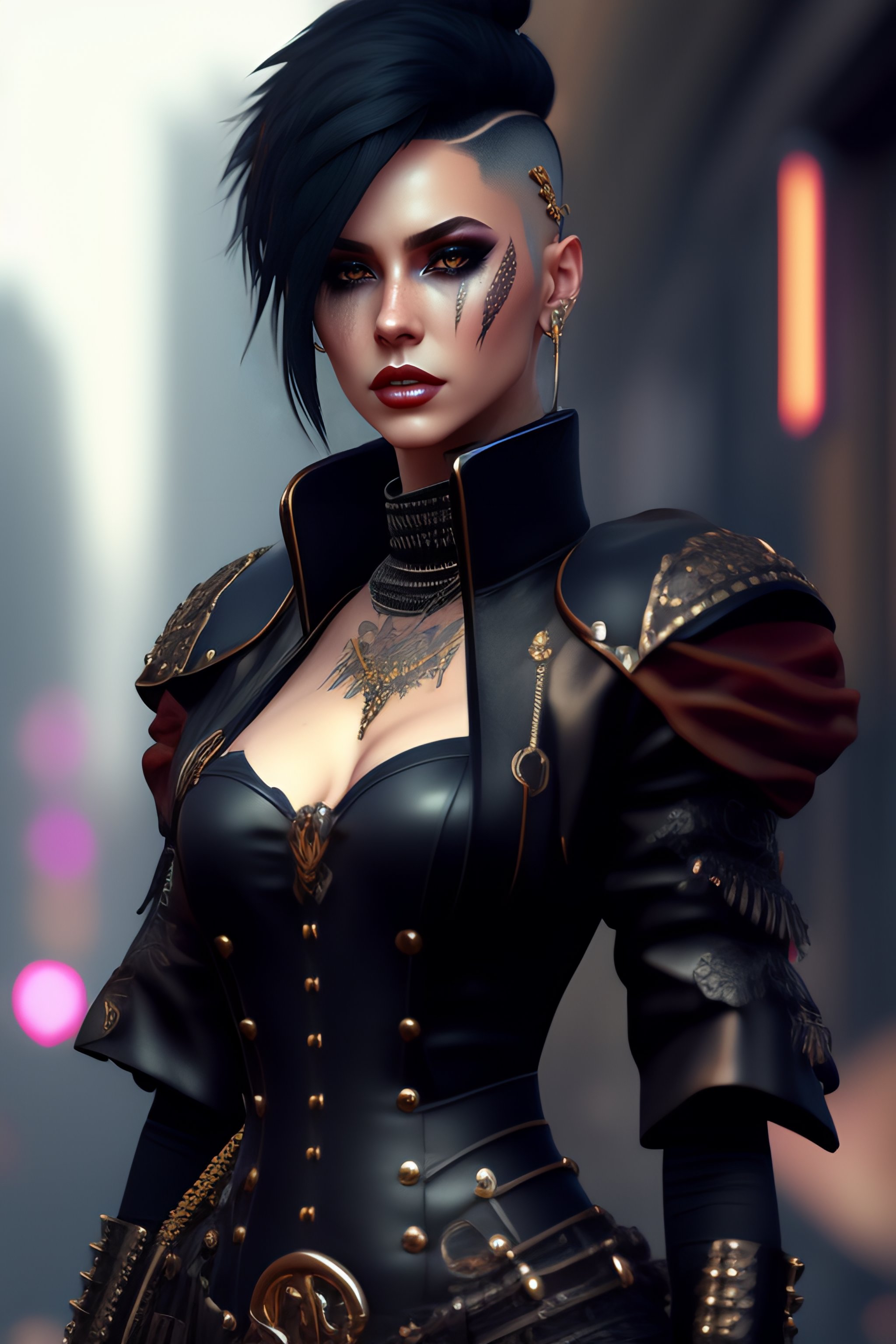 Goth punk clothes with short hair girl, battle status, hyper detailed, digital art, cyberpunk style, cybercinematic lighting, studio quality, smooth render, unreal engine 5 rendered, octane rendered, art style by klimt and nixeu and ian sprigger and wlop and krenz cushart