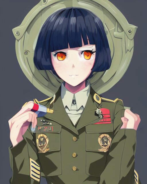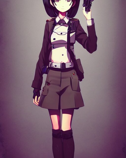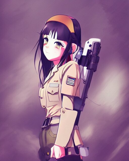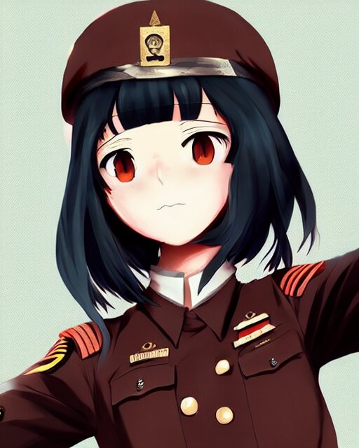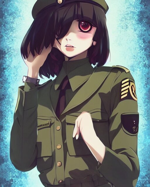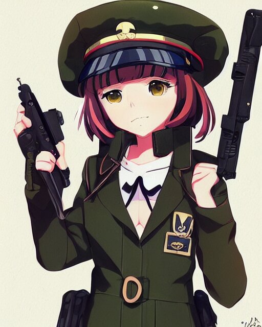 Anime girl is dressed in military uniform. anime. by lois van baarle, ilya kuvshinov, rossdraws, ghibli marker anime art, manga