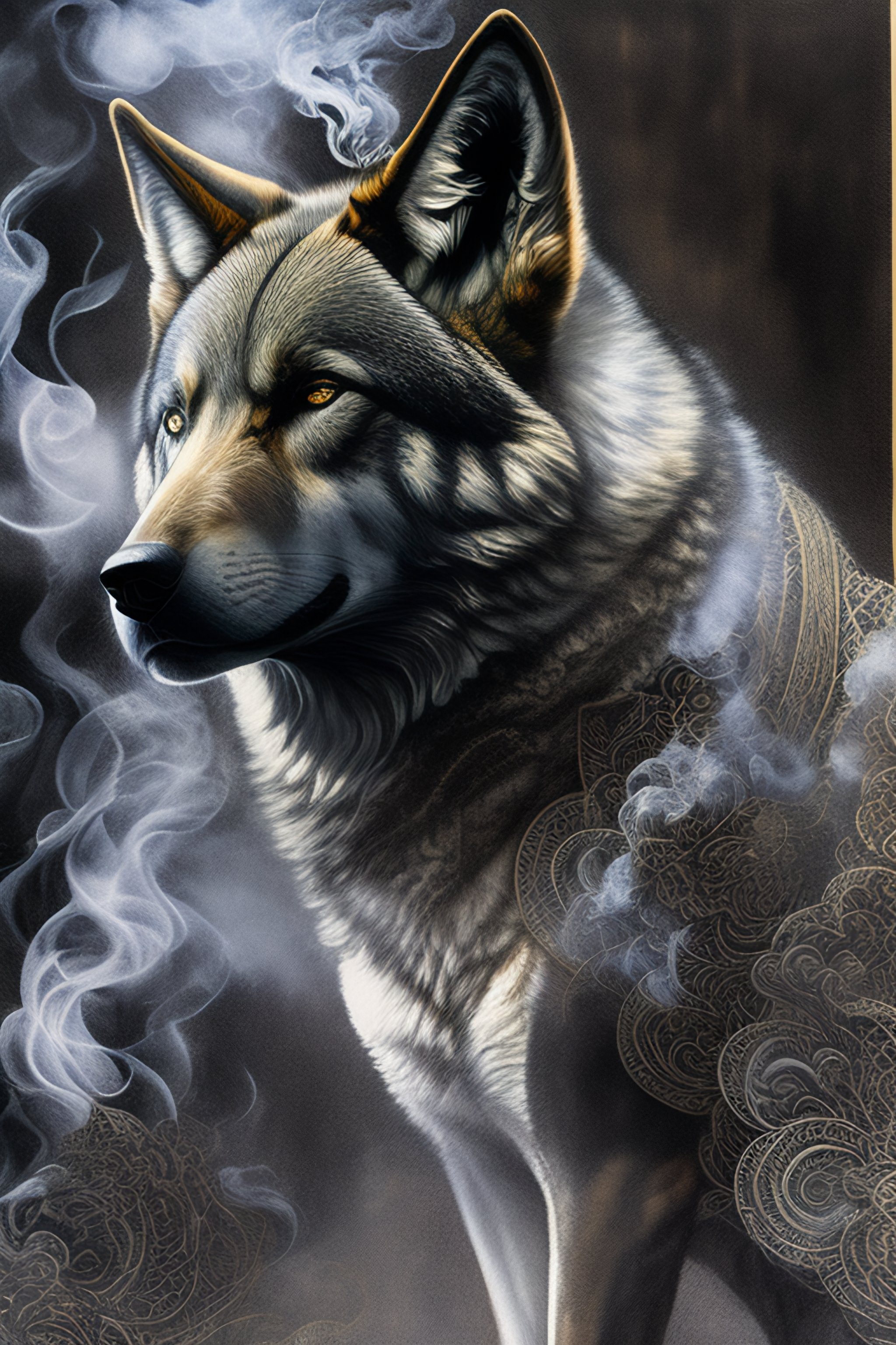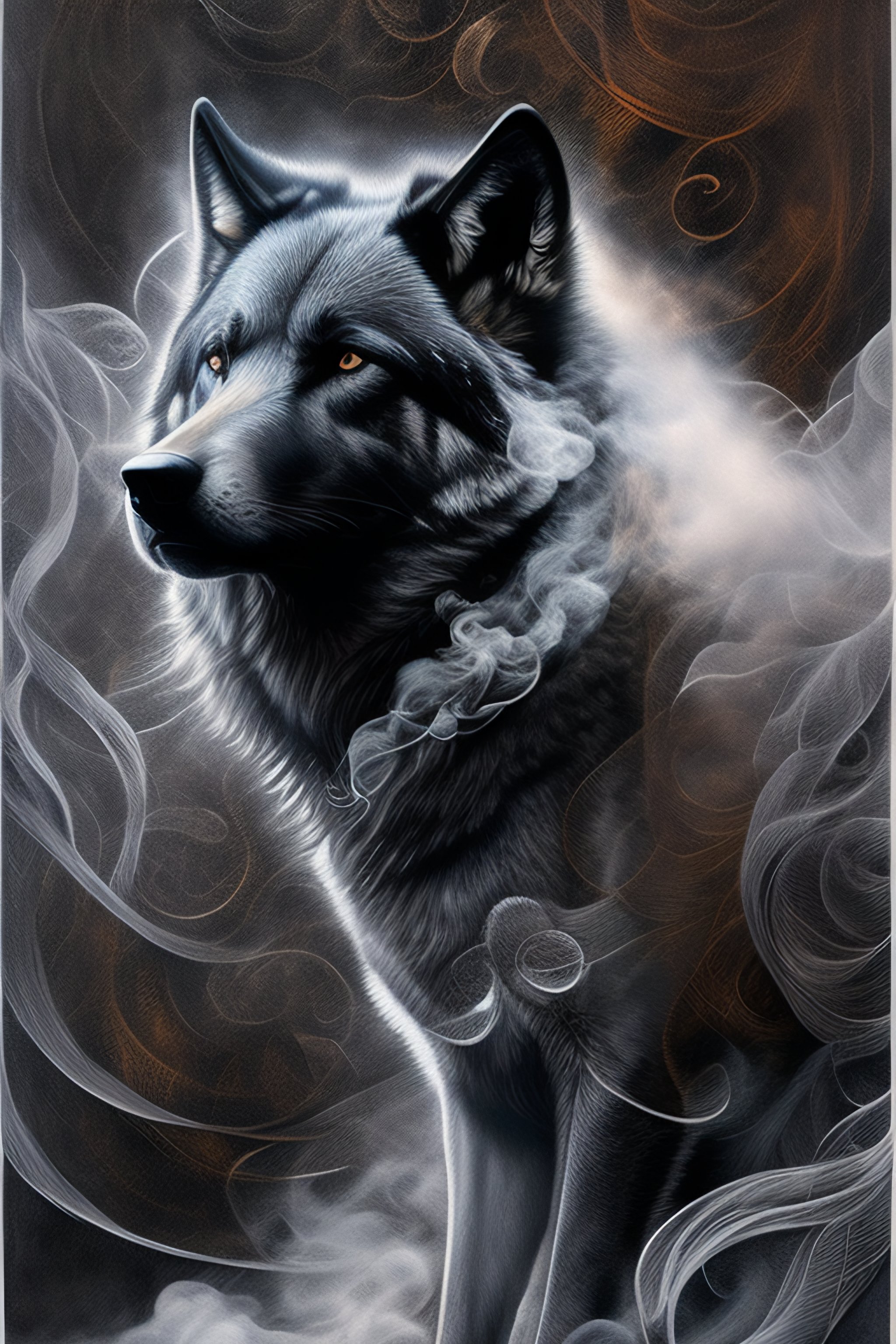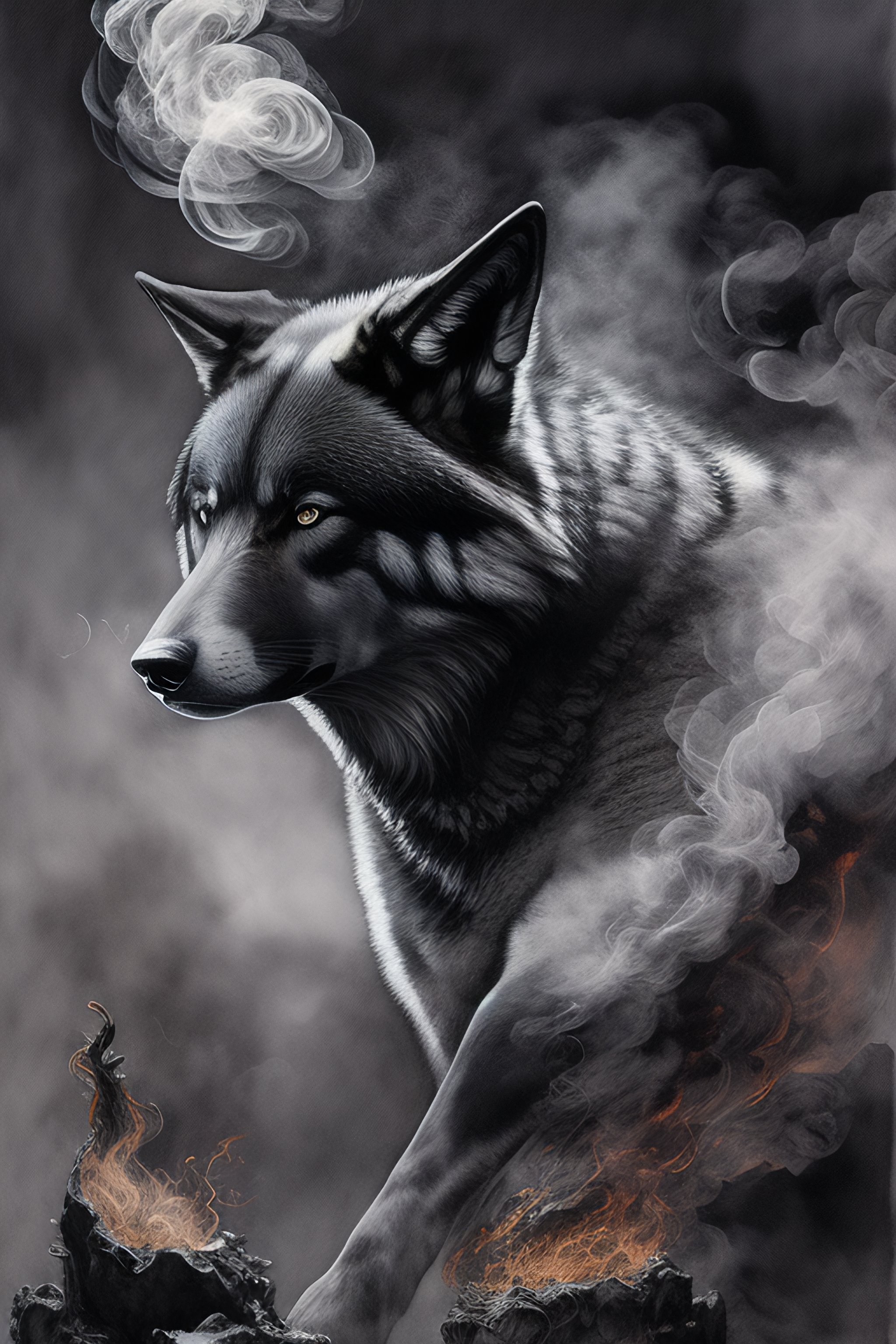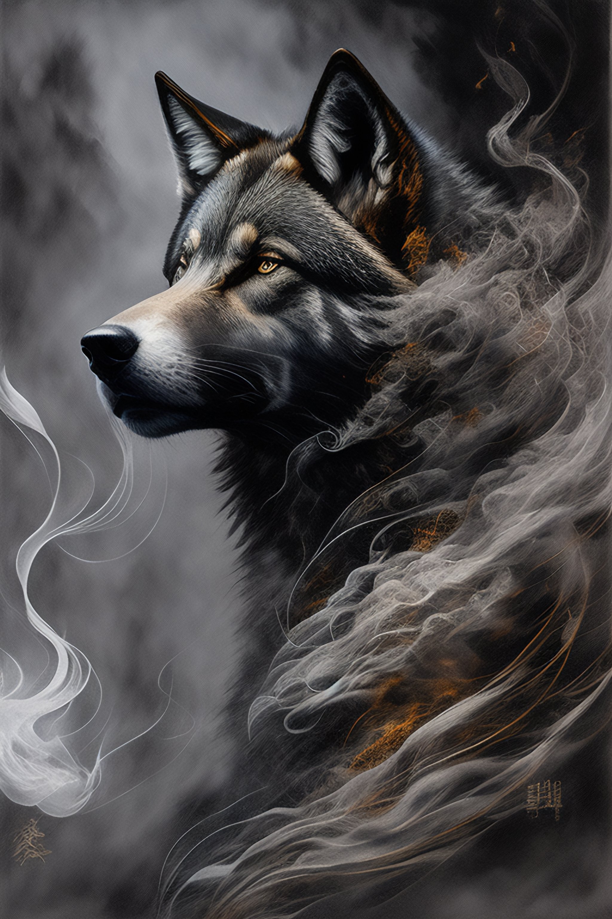 Portrait of a void wolf in black suit surrounded by smoke fumes, pen and ink, intricate line drawings, by craig mullins, ruan jia, kentaro miura, greg rutkowski