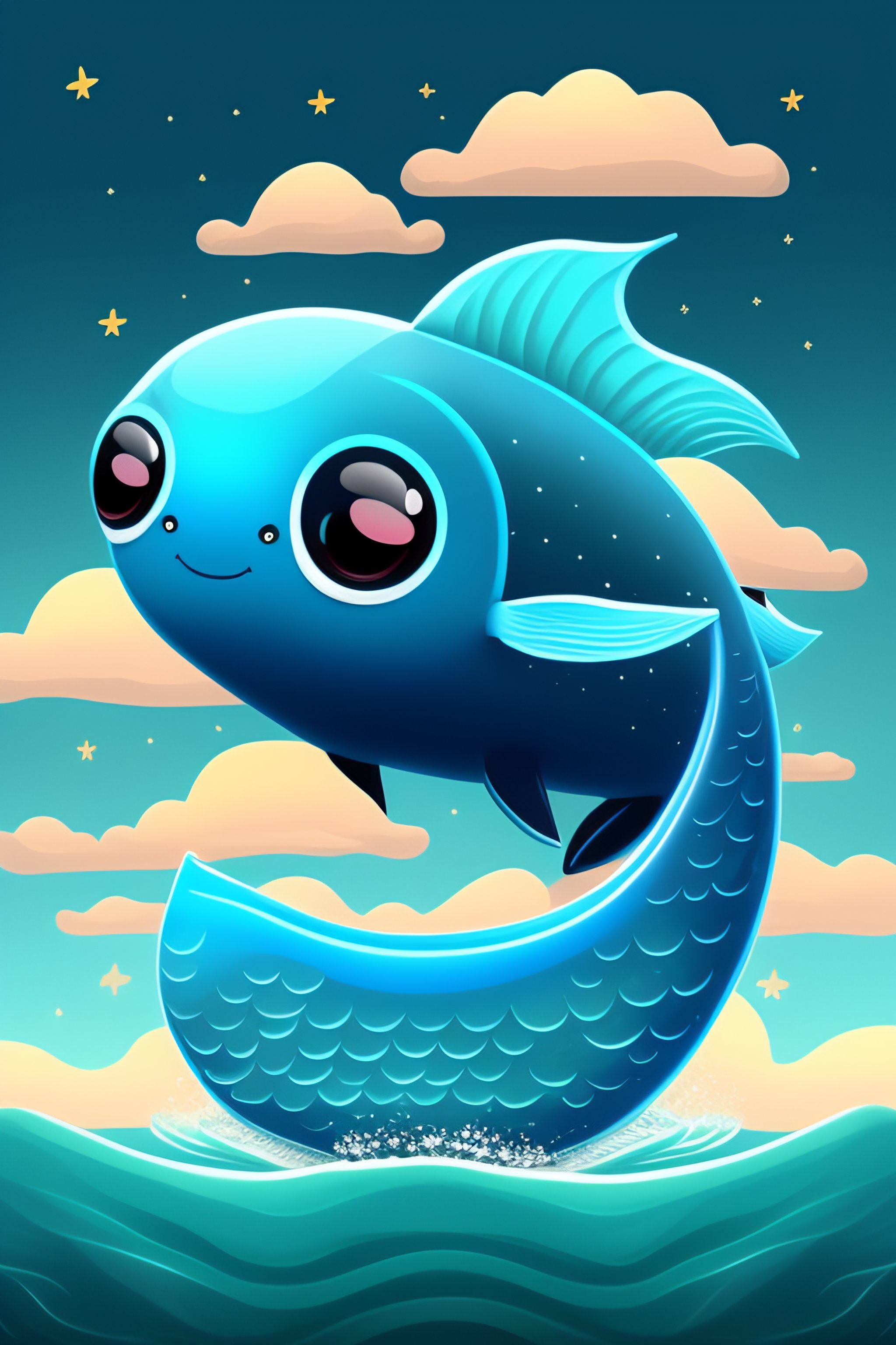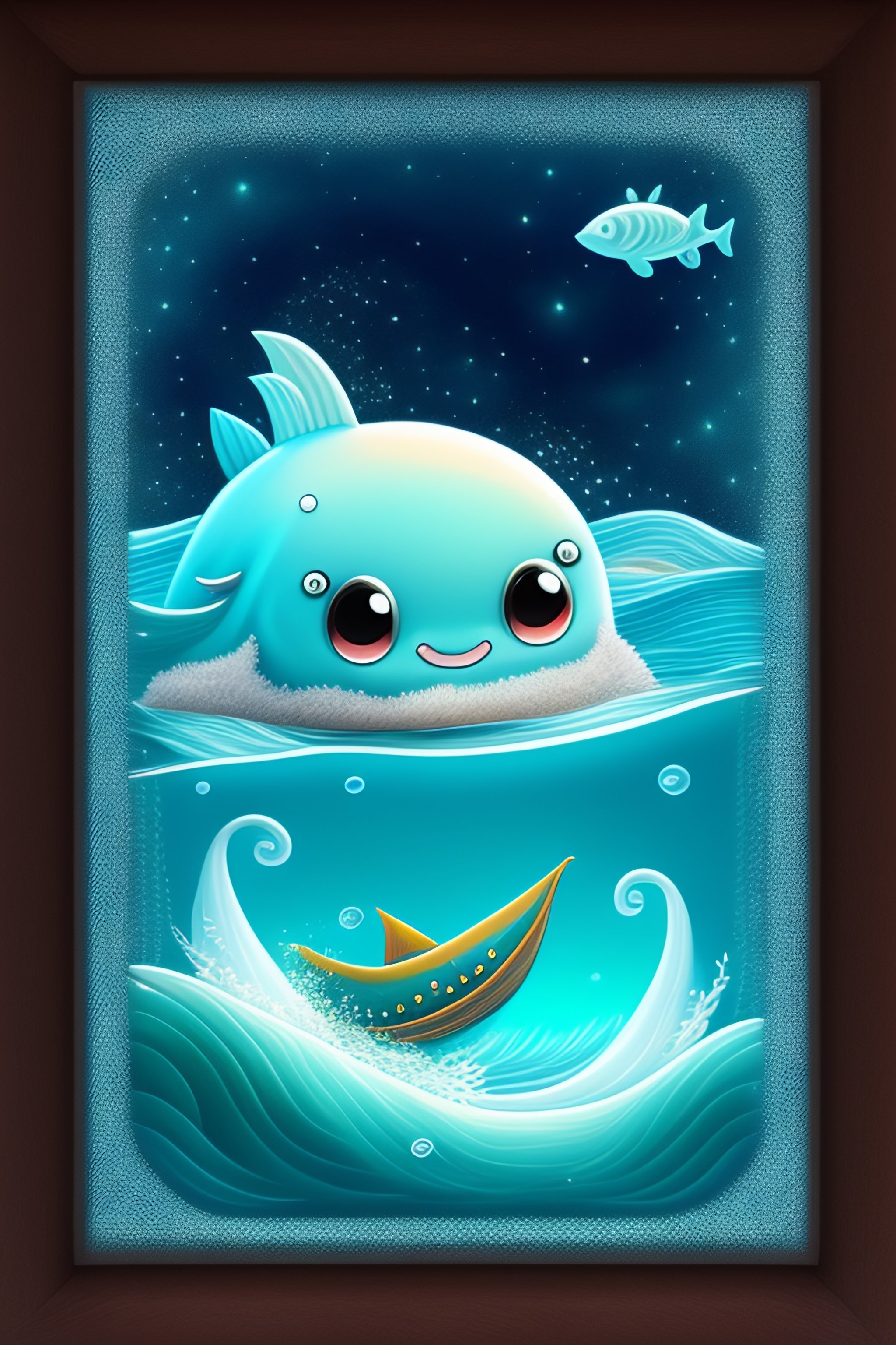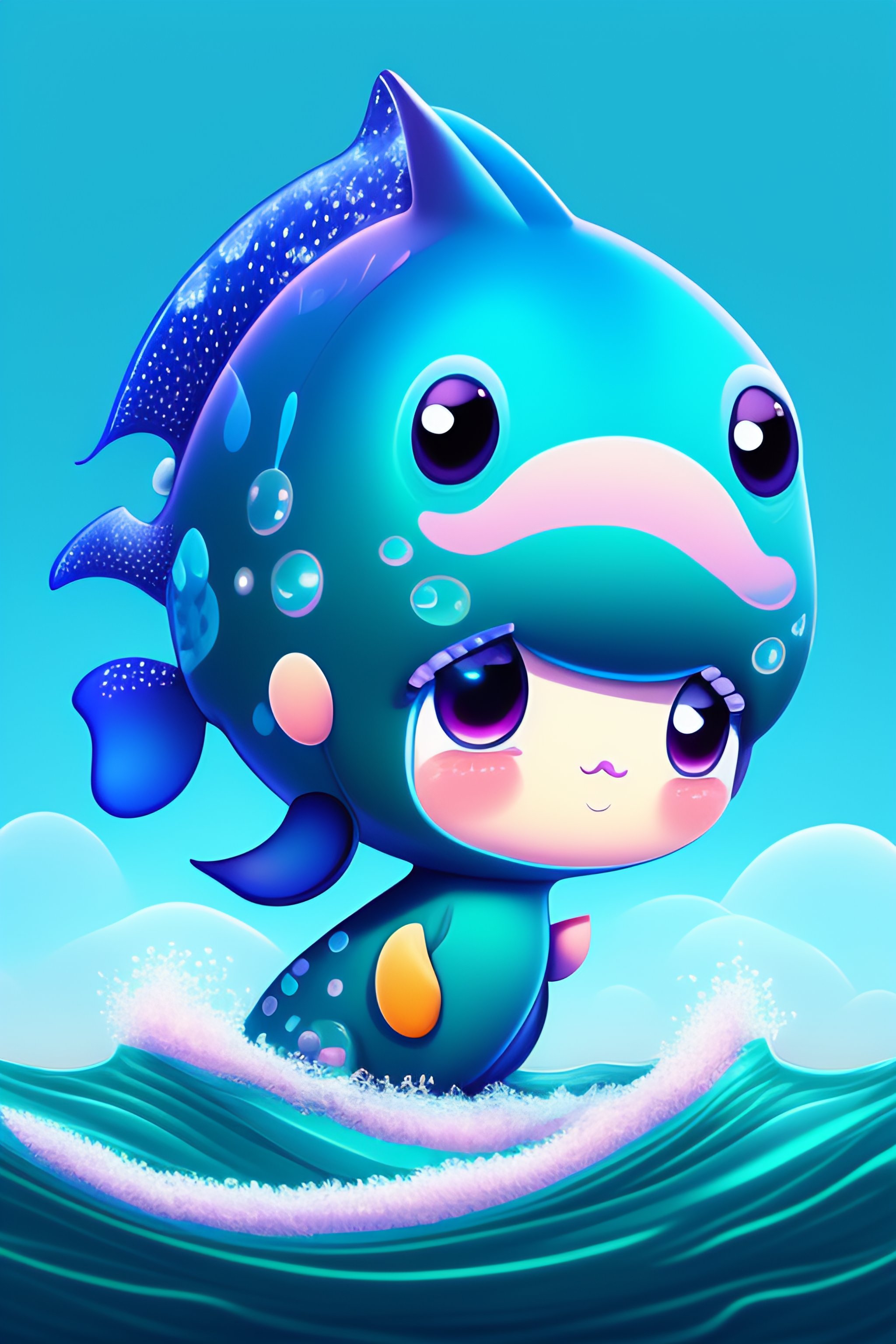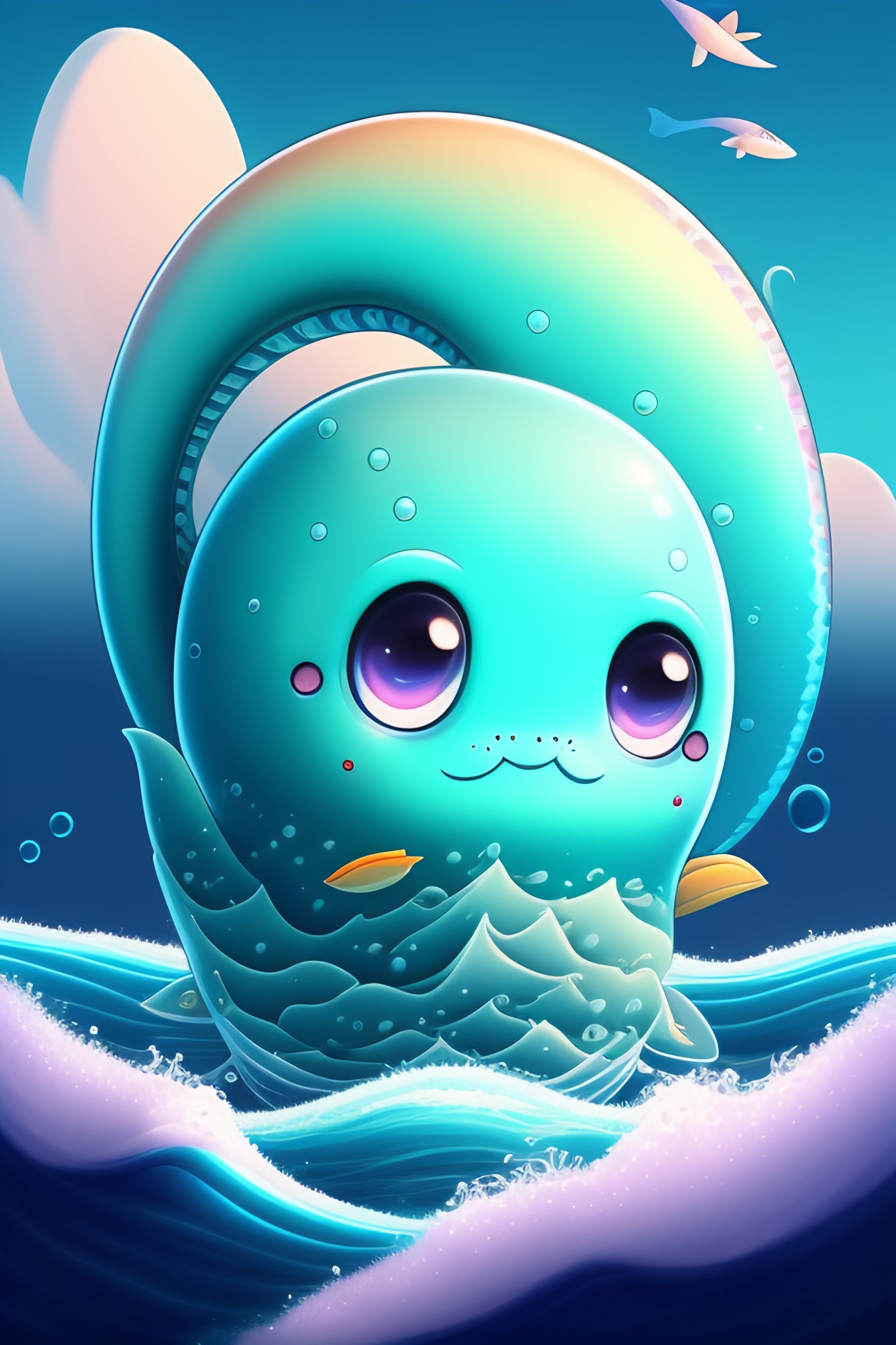 A cute baby leviathan in the art style of chibi with an ocean background