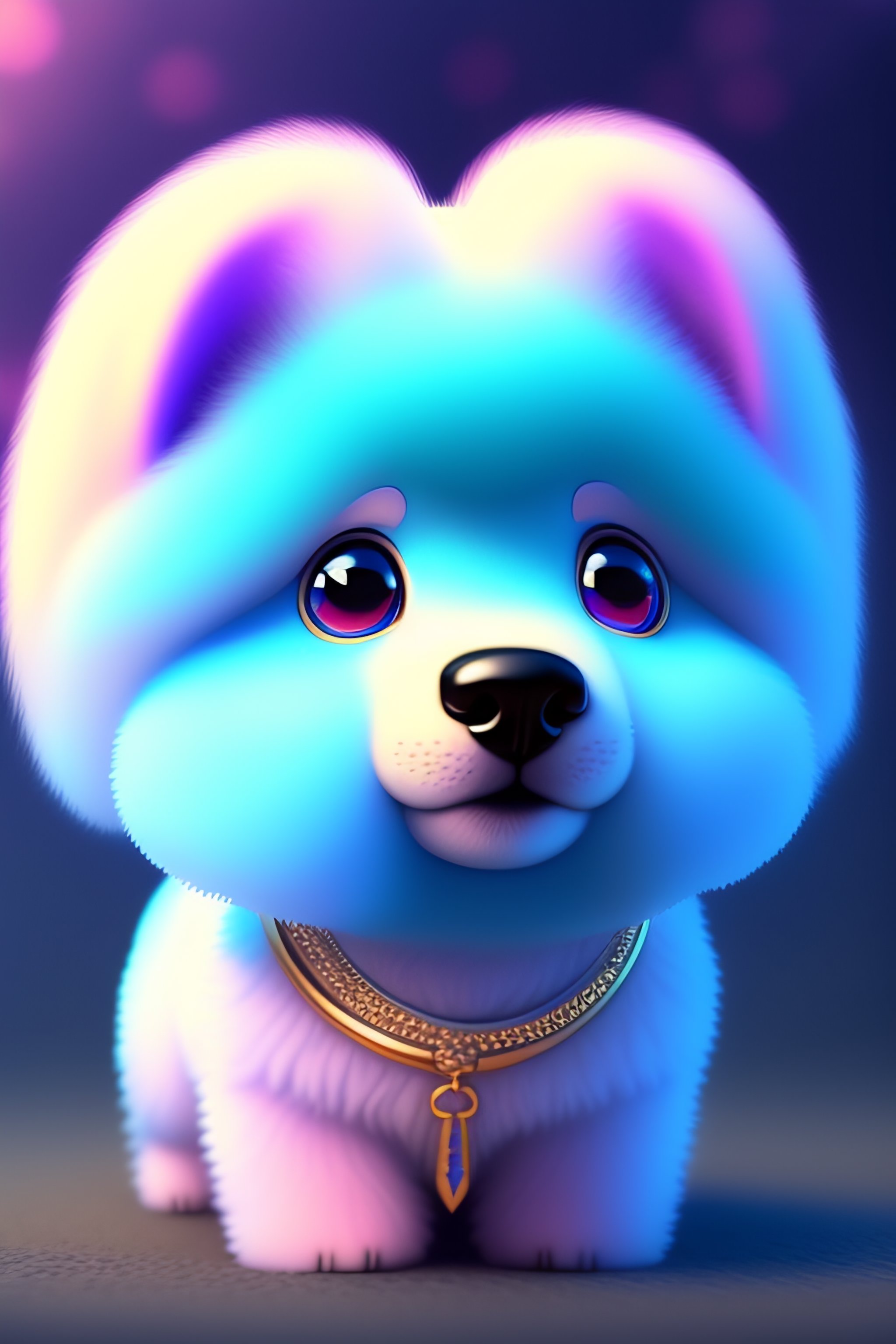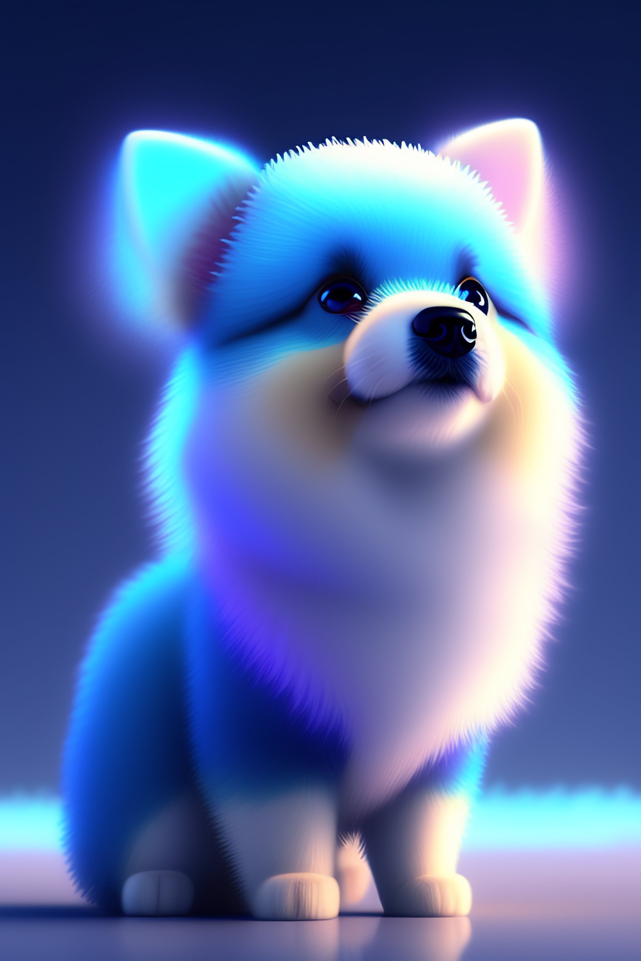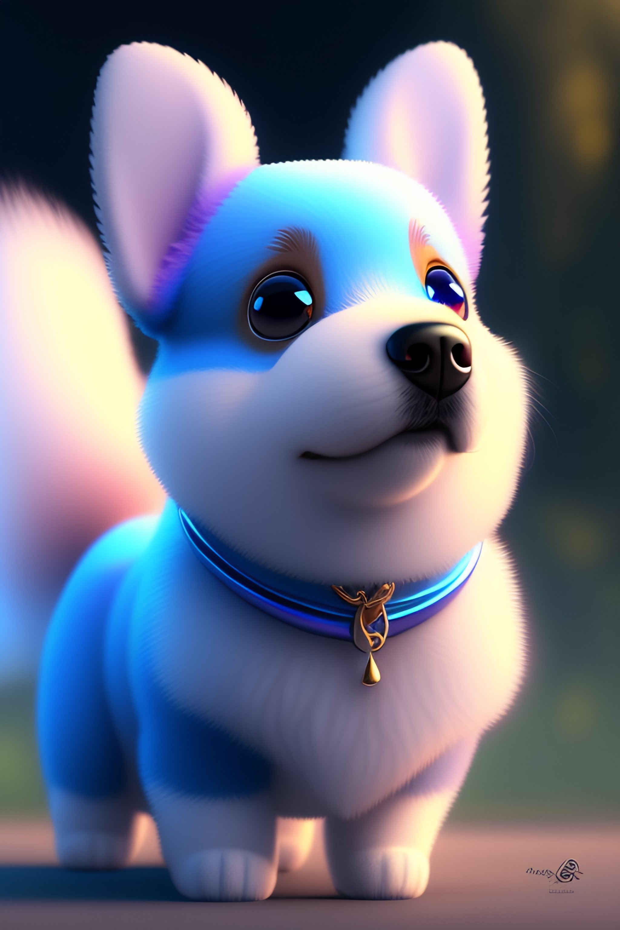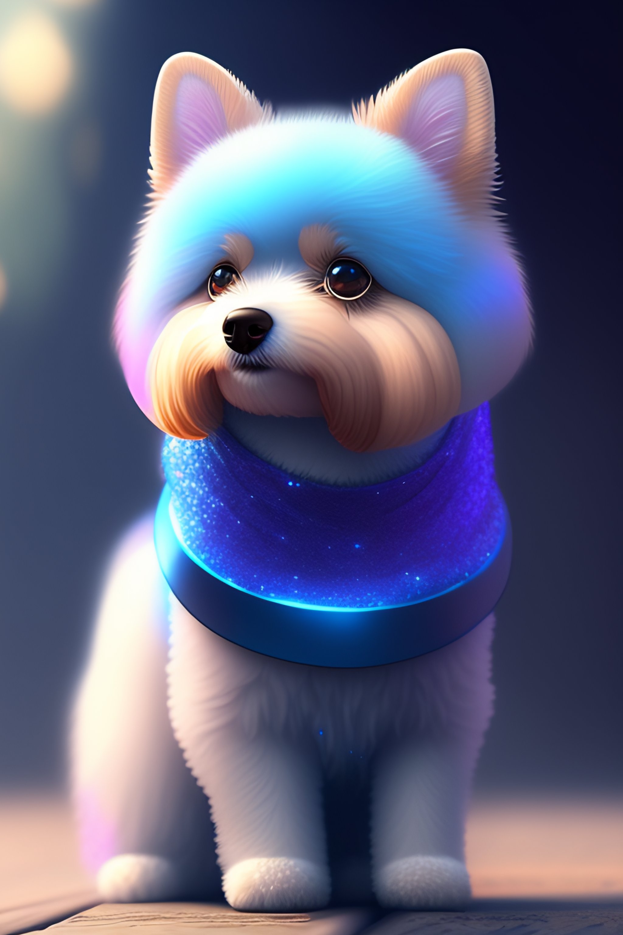 Cute and adorable cartoon fluffy dog, glitter, blue, fantasy, dreamlike, surrealism, super cute, trending on artstation