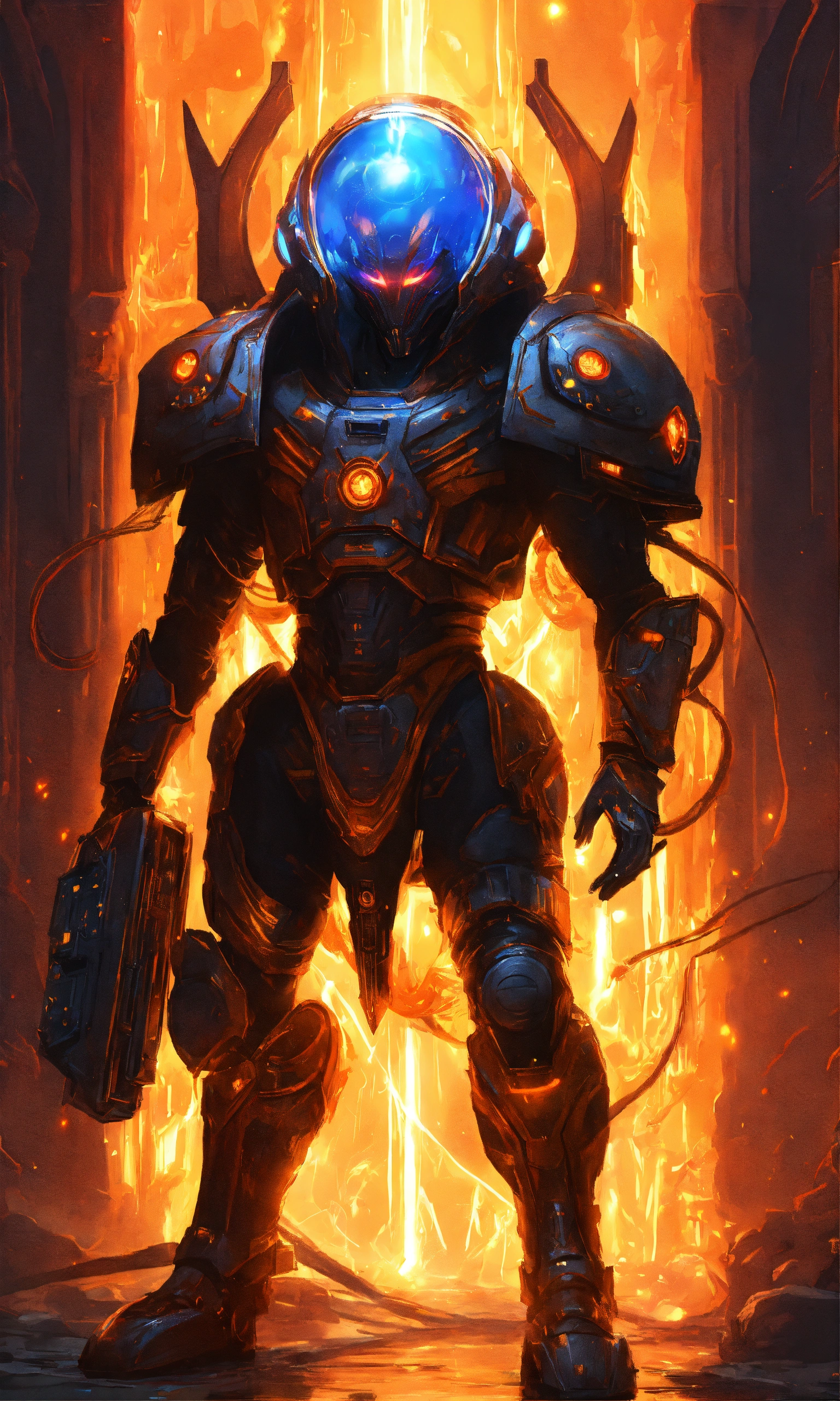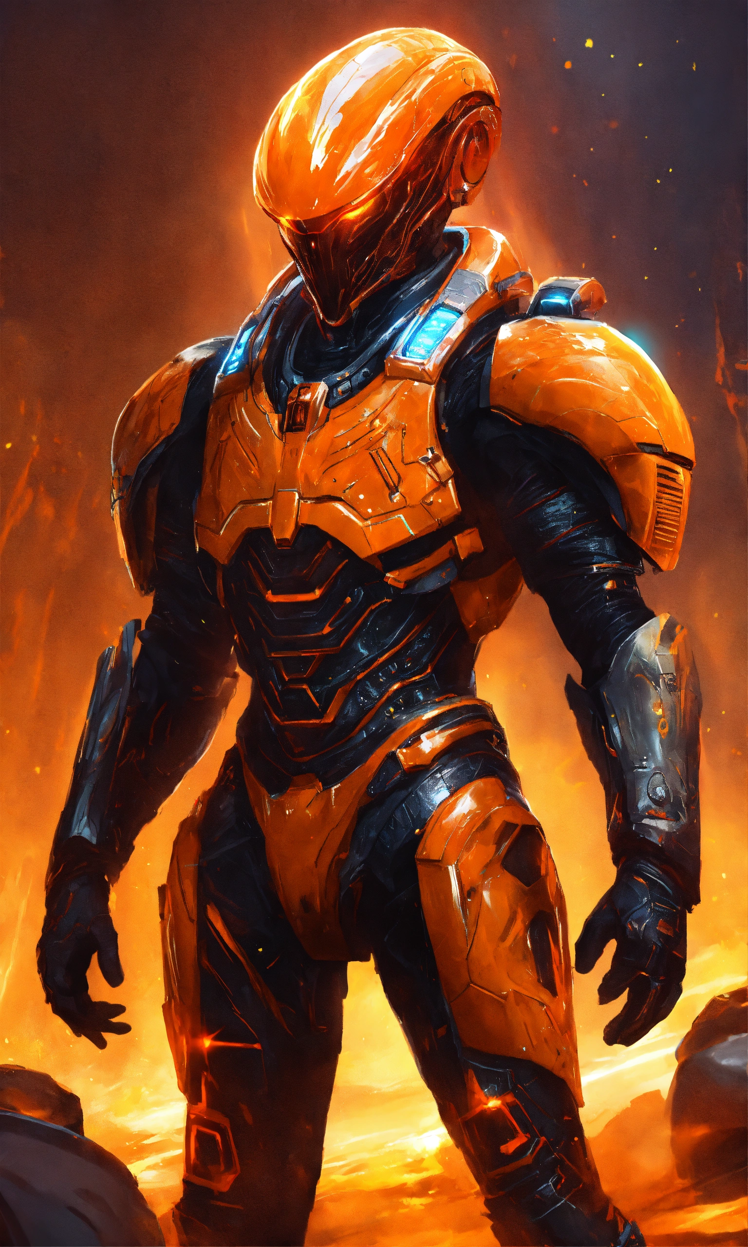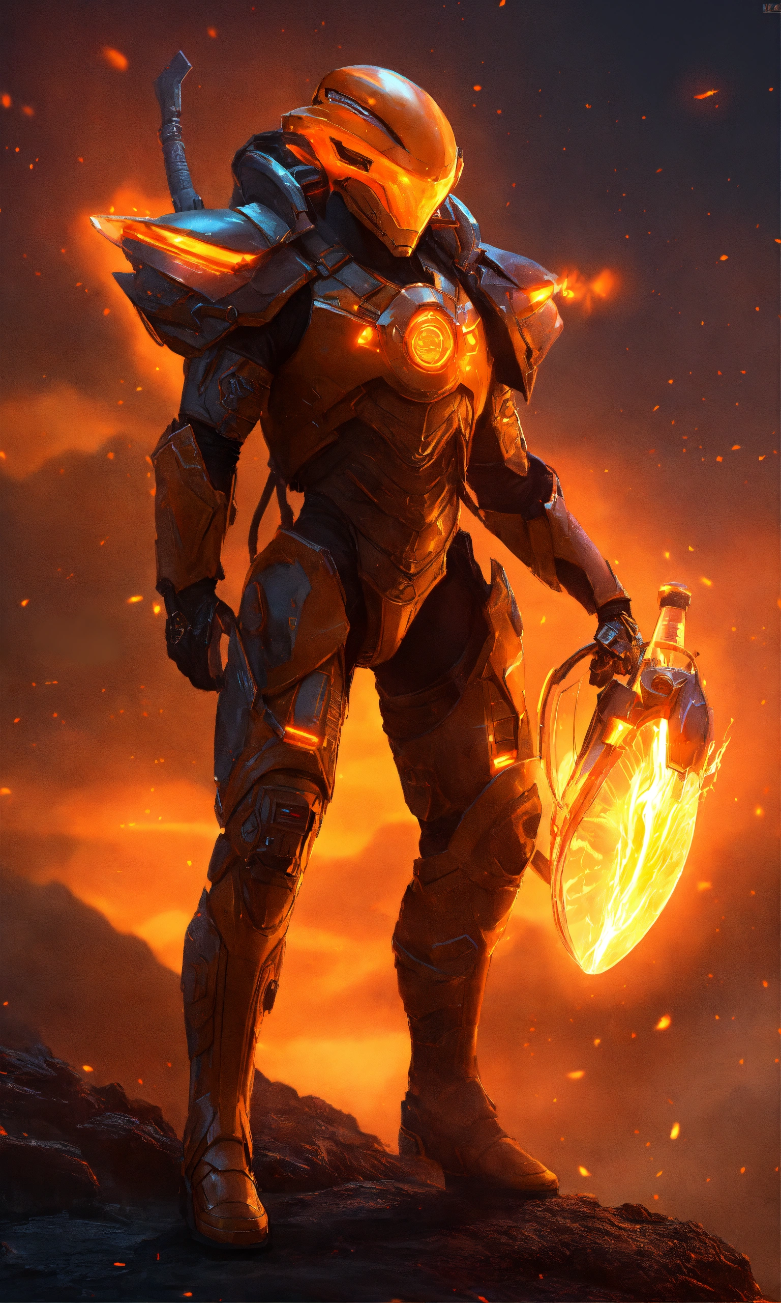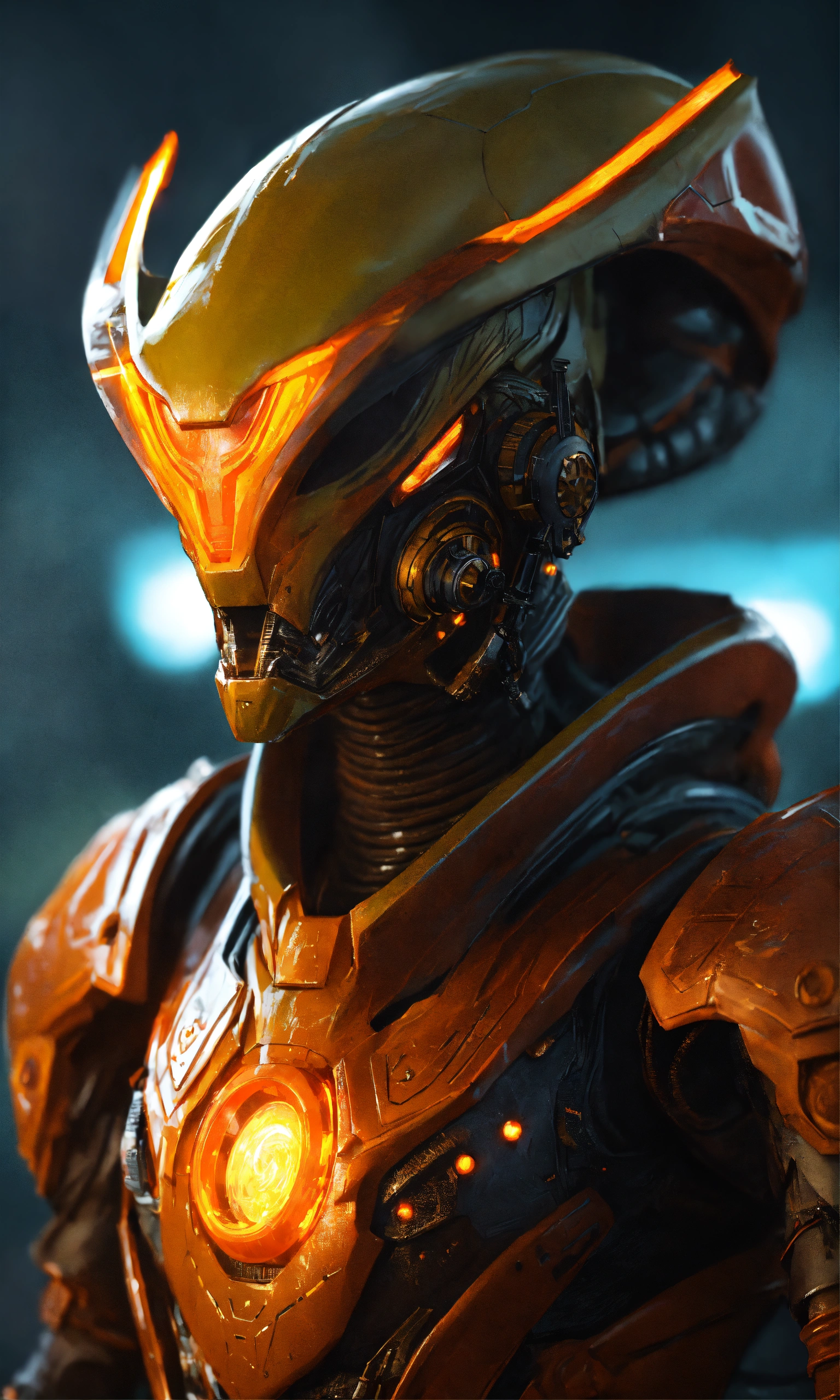 Alien warlord king with a power suit and glowing orange energy