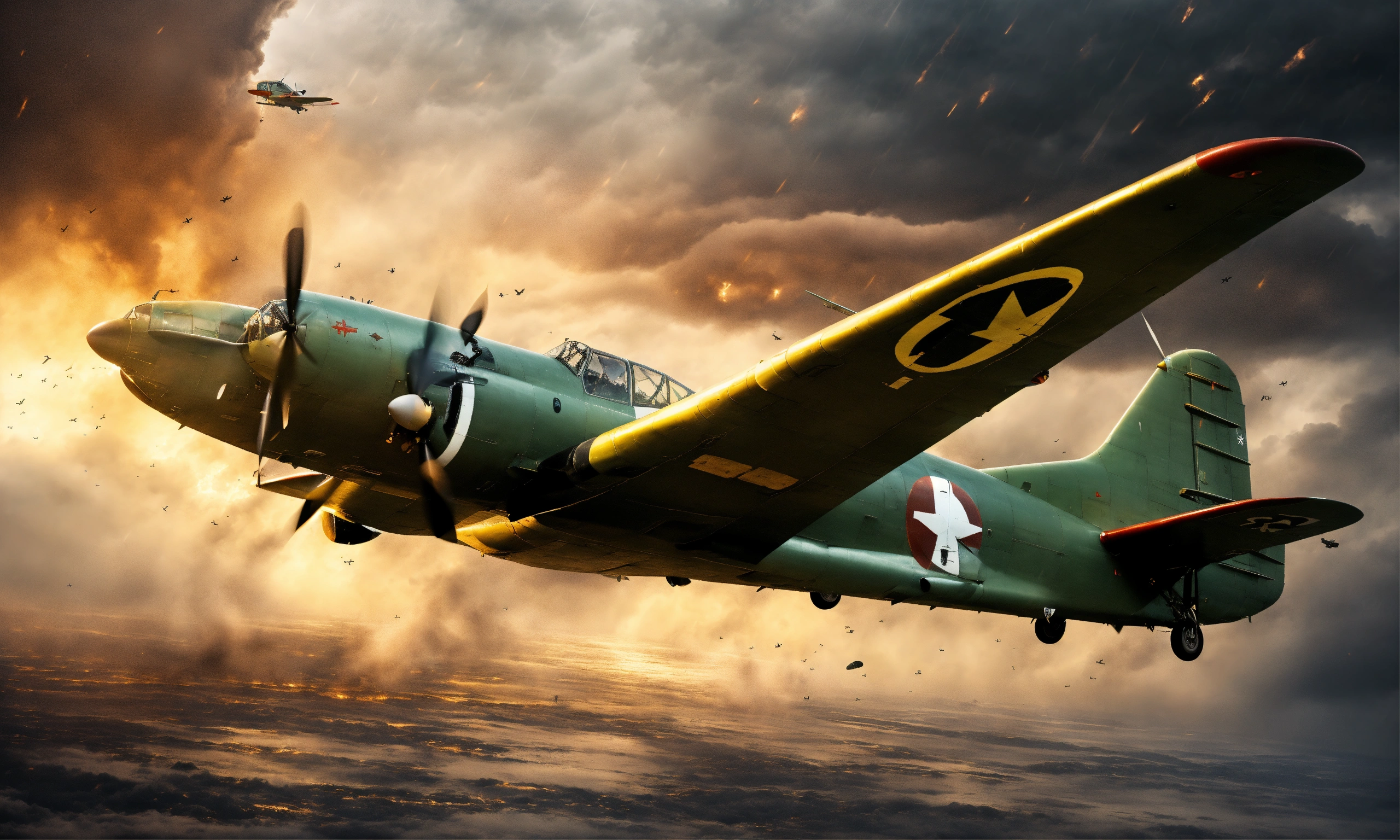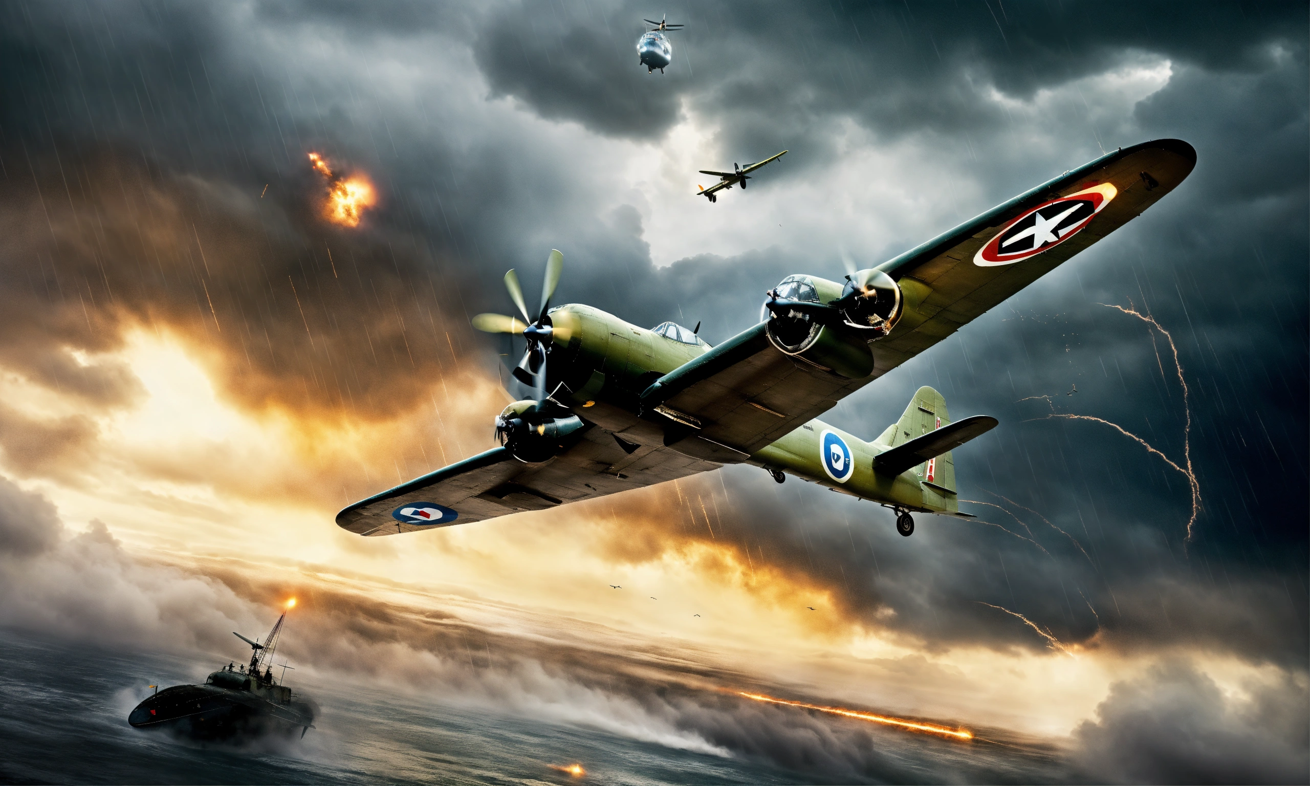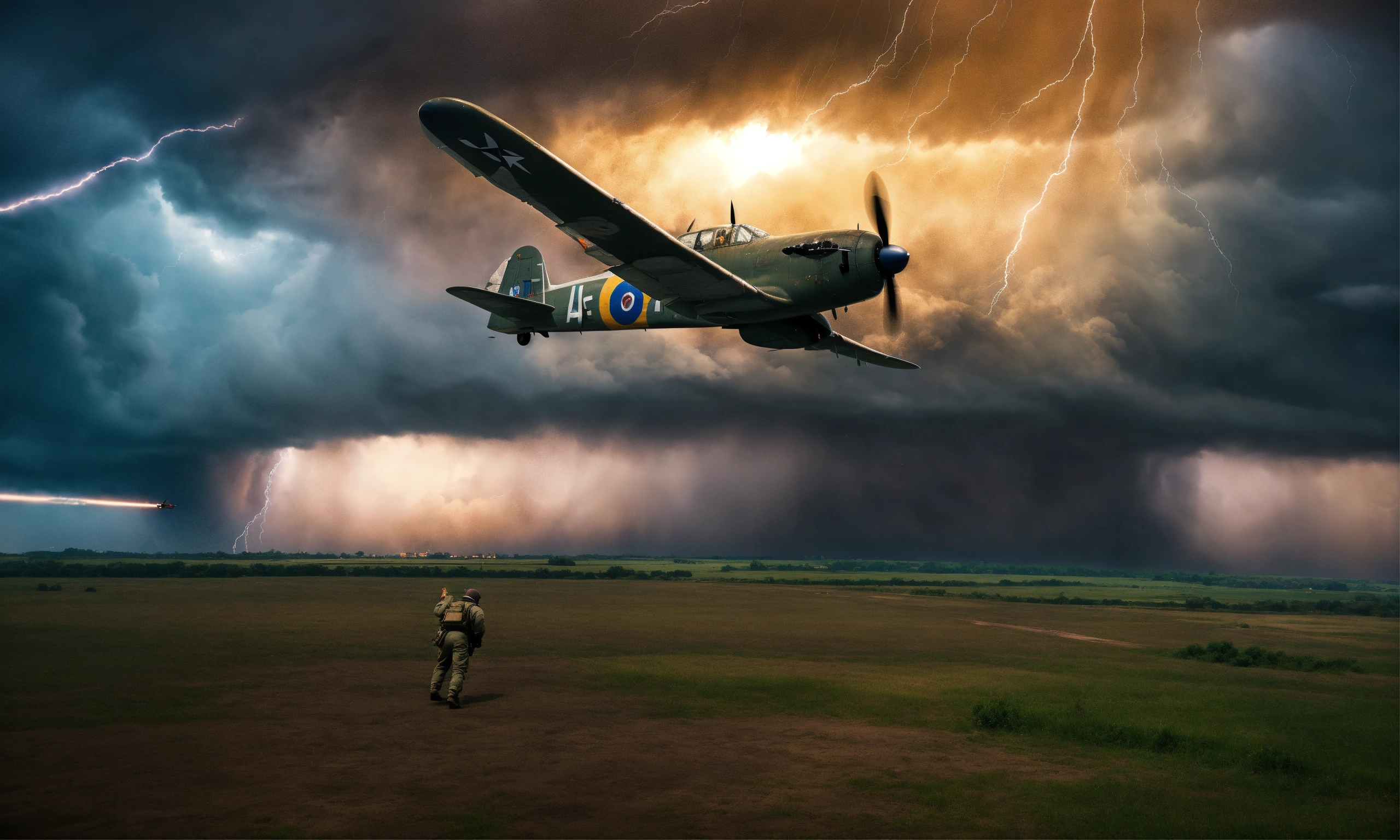 World war 2 plane disappearing into interdimensional portal in the middle of a storm